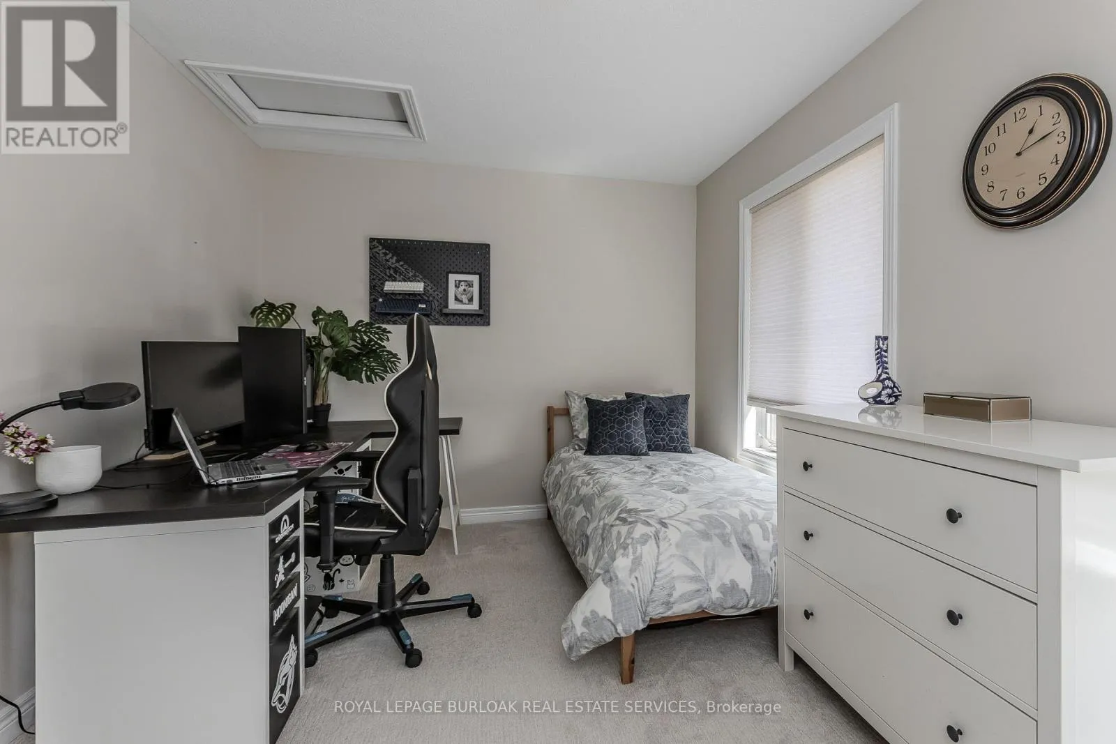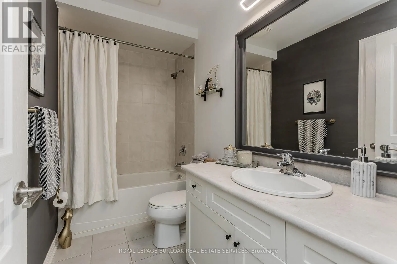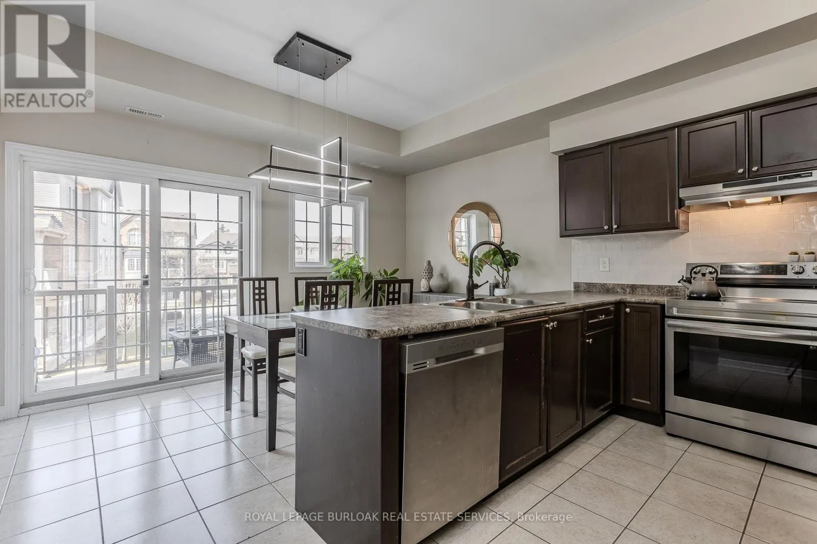 Brant and Plains Welcome to easy, low-maintenance living in a well-maintained stacked townhouse condo, perfectly suited for first-time buyers, downsizers, or small families looking to enjoy a vibrant lifestyle. Ideally located in a prime Burlington neighbourhood, you're just minutes from the lake, downtown core, shopping, dining, parks, and scenic trails, with quick access to major highways and the GO Station, making daily commuting and weekend outings effortless. This thoughtfully updated home has been freshly repainted throughout and features modern light fixtures, creating a bright and inviting atmosphere from the moment you step inside. The main level offers a welcoming foyer, while the second level showcases a spacious, open-concept layout with hardwood flooring throughout-perfect for both everyday living and entertaining. The expansive living room is filled with natural light and offers plenty of space for cozy movie nights or hosting family and friends. The kitchen is both functional and stylish, complete with stainless steel appliances, rich wood cabinetry, tile backsplash, and a peninsula with ample prep space. The adjoining dining area features a walkout to a private balcony-ideal for enjoying your morning coffee or unwinding at the end of the day. Upstairs, you'll find a spacious primary bedroom with dual closets and a 4-piece ensuite, along with a second well-sized bedroom and an additional full bathroom-perfect for growing families or guests. Convenient bedroom-level laundry adds everyday ease. Enjoy added perks, including a dedicated parking space, visitor parking, and a children's playground right on-site. A fantastic opportunity to step into a connected, lifestyle-driven community with everything you need just moments away. (id:27476)