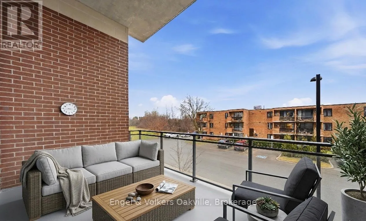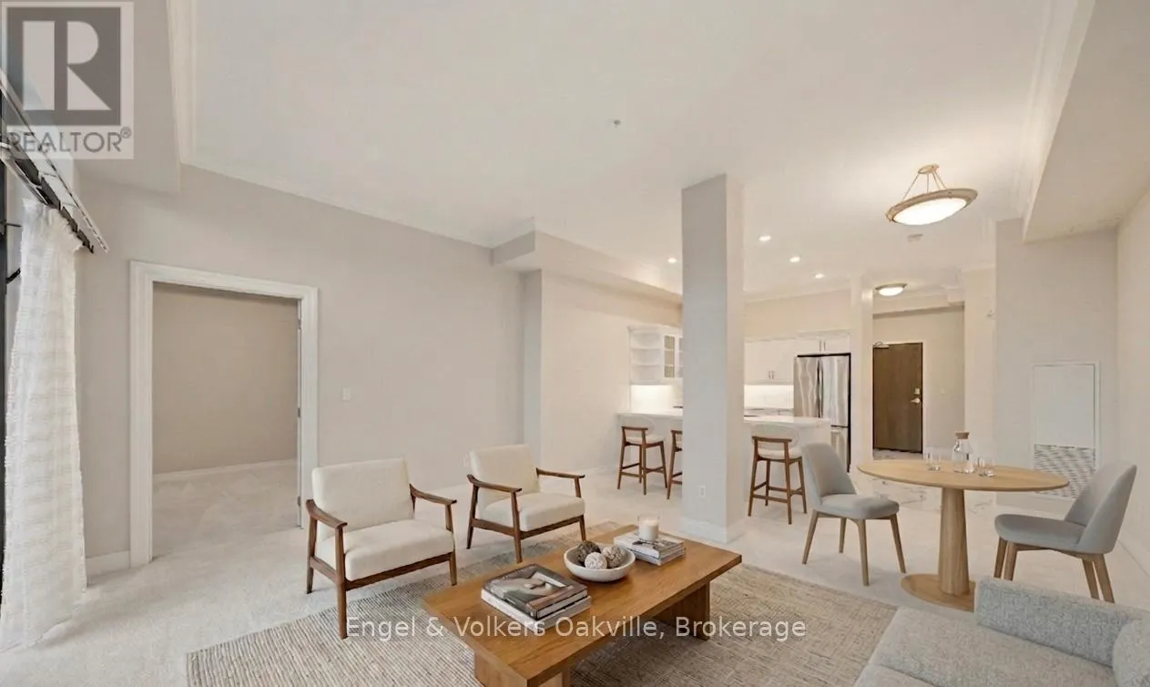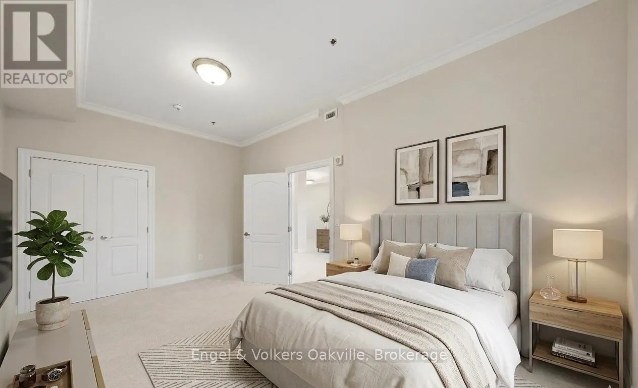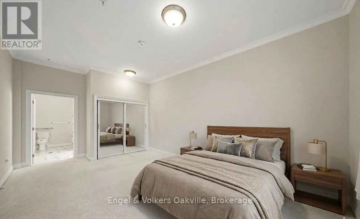 CUMBERLAND AND NEW ST One of a kind retirement living opportunity in sought-after Maranatha Gardens in a desirable 55+ Community near downtown Burlington.This bright 2 bed and 2 bath main floor corner unit showcasing 1296 sq ft has a private oversized balcony featuring side views of the park area bringing in lots of natural light! Spacious open-concept layout, high ceilings, crown moulding w/smooth ceilings, pot-lights, white kitchen w/ stainless steel appliances and dedicated laundry room. Primary ensuite with roll in shower + grab bars, wheelchair friendly. The building is wheelchair accessible and features excellent amenities including workshop, lounge, fitness and party rooms, terrace, underground parking and lockers. Conveniently located close to shopping, dining, and all downtown amenities south Burlington has to offer! **TAXES INCLUDED IN MONTHLY FEES** No condo information due to Life Lease. Follow Your Dream, Home. (id:27476)