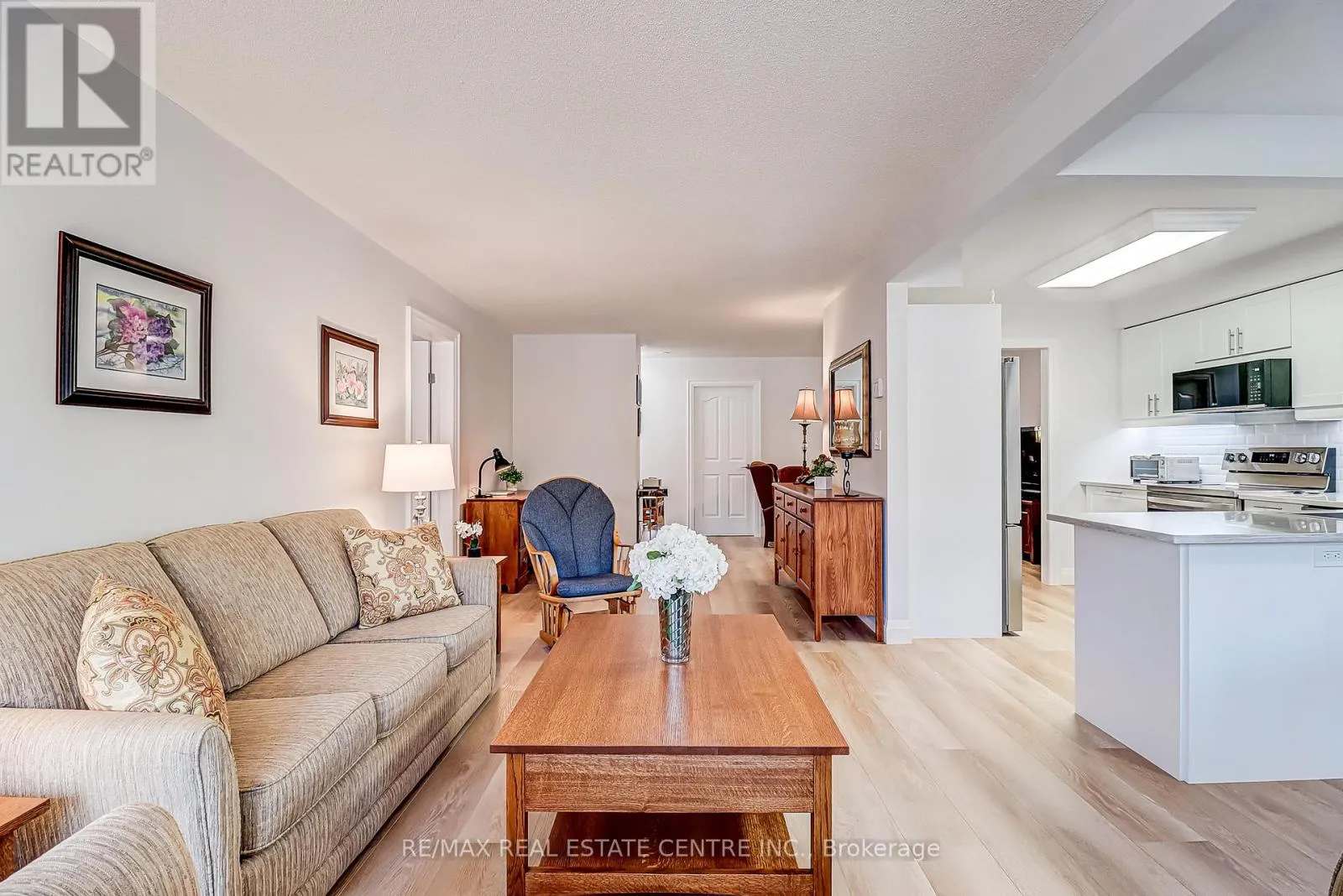 Cross Streets: Guelph line and Pinemeadow Dr. ** Directions: From Upper Middle Road, turn right onto North Gulf Line and then right to Pinemeadow Drive. Welcome to this beautifully renovated open concept 2 bedroom corner unit with lots of natural light flowing through. One of the larger units in the complex. Over $60,000 has been spent on quality upgrades throughout. New in 2024/2025, this stunning suite features a custom designed kitchen with quartz countertops, stylish backsplash, additional wall-to-wall cabinetry, ample storage, valance trim with undermount lighting, double stainless steel deep sink, and pantry. Enjoy upgraded luxury vinyl flooring throughout, upgraded double trim, and custom blinds. The primary bedroom offers an ensuite bath with a soaker tub with jets and heat lamp. Additional highlights include 2 walk-outs to the balcony, new laundry sink and cabinet, darkening blinds in the bedrooms, and fresh paint throughout. The Enclave South is a desirable, quiet building close to everything. Nothing to do but move in and enjoy - a home you'll be proud to call home! (id:27476)