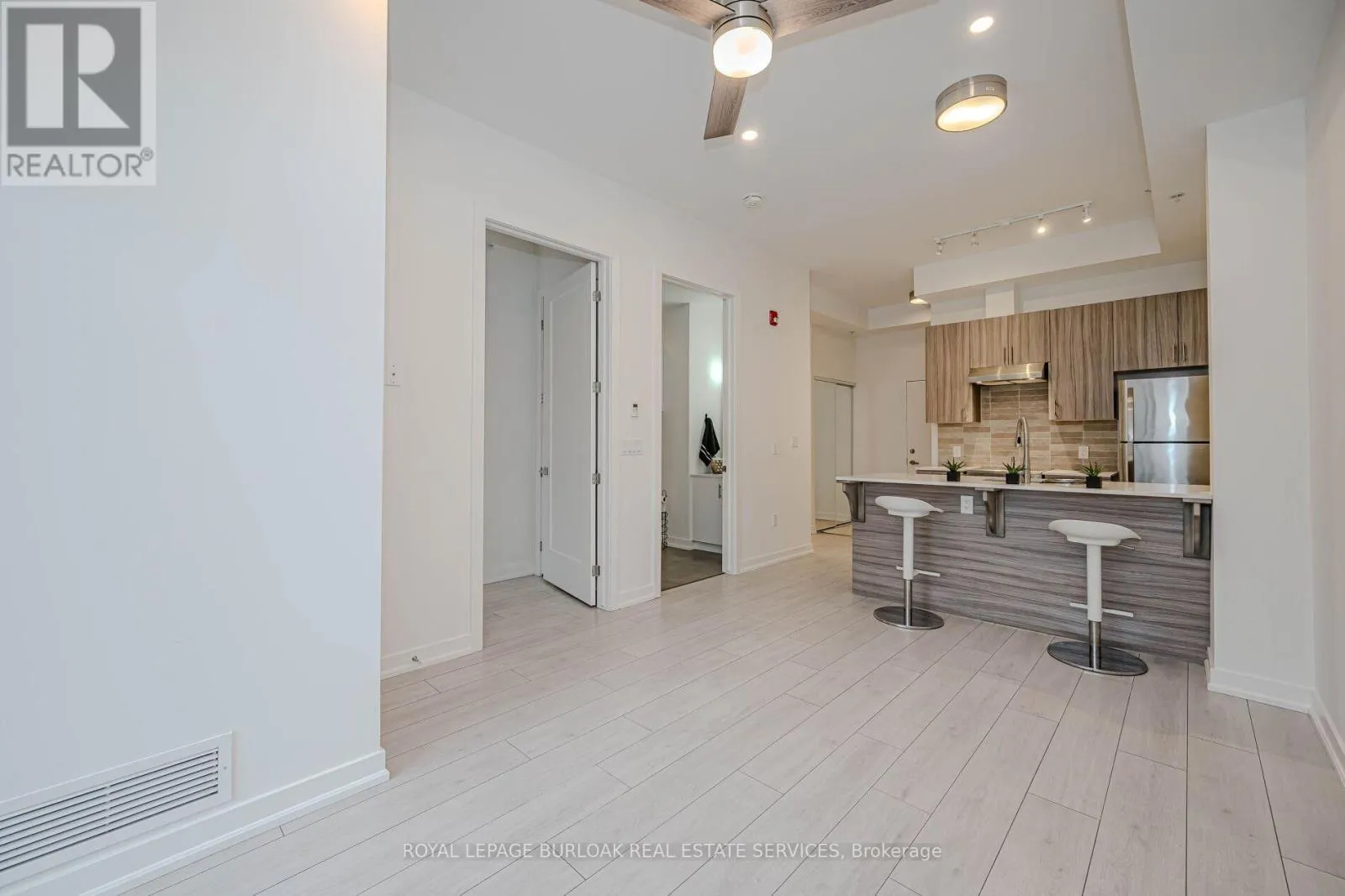 Cross Streets: Tobyn Drive/Kilmer. ** Directions: Tobyn Drive & Kilmer. Recently updated and superbly suited for seniors and entry buyers looking in Burlington! No elevator required-this ground-level, 1-bedroom plus Den (Battersea model) is the epitome of easy condo living and has a rare walkout to an extra-large private outdoor terrace, perfect for pet lovers and sun worshippers alike. Quiet, end-of-cul-de-sac building, located off of Tobyn Drive in desirable Tansley Woods, with walking trails, community centre and parks, only minutes from main travel routes. This unit has been upgraded recently with new luxury vinyl flooring throughout, hardware &designer paint. Bright and airy 10ft ceilings (only on 1st and 4th floors), 2 ceiling fans, extra large windows with coverings, Primary bedroom with ensuite privilege plus flexible separate den space for Office, TV area or extra guests(can accommodate wall bed). All stainless steel appliances, in-suite laundry, 1 underground parking spot and 1 locker included. Condo fee includes heat and water, building maintenance, snow removal, visitor parking, party room and more. Flexible possession available! (id:27476)