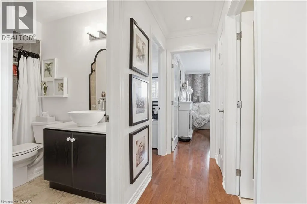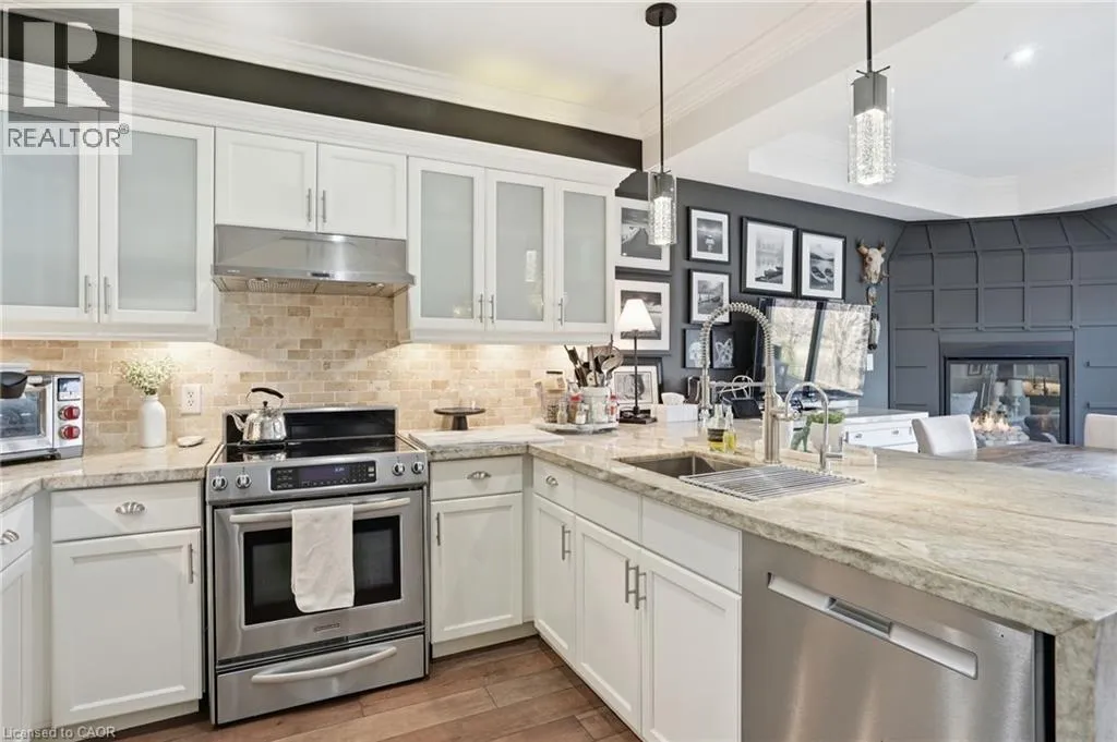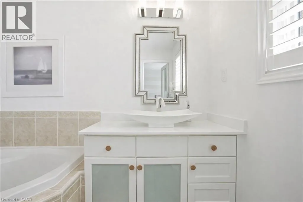 Welcome to 4020 Alexan Crescent, an exceptional freehold luxury townhouse in Burlingtonâs highly sought-after Millcroft community. Extensively renovated with over $250K in premium upgrades, this turnkey residence offers a seamless blend of style and functionality. The main floor showcases a custom-designed kitchen, updated powder room, soaring ceilings, and abundant natural light, with a walkout to a private deck backing onto serene greenspace. The fully finished basement features a walkout to the backyard, 2 storage rooms, and a cold cellar, providing versatile additional living space. Upstairs offers 3 spacious bedrooms, a dedicated laundry room, and 2 full bathrooms, including a primary retreat with walk-in closet and ensuite. The backyard features stamped concrete, ideal for entertaining or relaxing, while the fully renovated front exterior delivers outstanding curb appeal. Low-maintenance living in a prime family-friendly location. (id:27476)