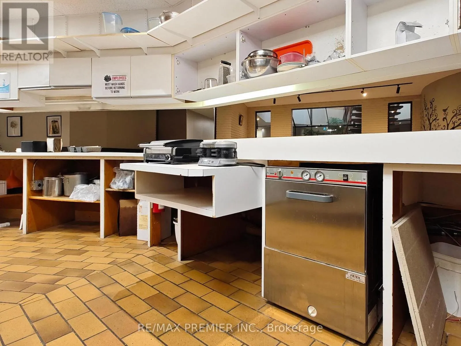 QEW/Walkers Line Affordable & all-inclusive Gross Lease Cafe/Shisha Bar with outdoor Patio. This restaurant space comes fully equipped and ready for your next hospitality venture in an office building and upcoming business centre. With direct QEW exposure, an inviting patio, and ample on-site parking, this location offers exceptional visibility and accessibility for guests in the building and surrounding area. Previously licensed to serve Liquor, the space is ideal for a restaurant, café, pub, or shisha lounge, with flexible design that supports a wide range of concepts including Event Room. Take advantage of existing chattels and commercial kitchen equipment, available as-is, where-is, at no extra cost. Whether you're launching a new brand, rebranding, or expanding, this plug-and-play space gives you everything needed to hit the ground running. Ideal for setting up a shisha lounge, restaurant, bar or cafe. Minutes from QEW, offering direct exposure and signage visibility. 3,152 Sq. Ft. of Open-Concept Space - Flexible layout to fit any restaurant or lounge concept. Outdoor Patio perfect for dining, events, or potential sheesha bar setups. Direct Access from patio. (id:27476)