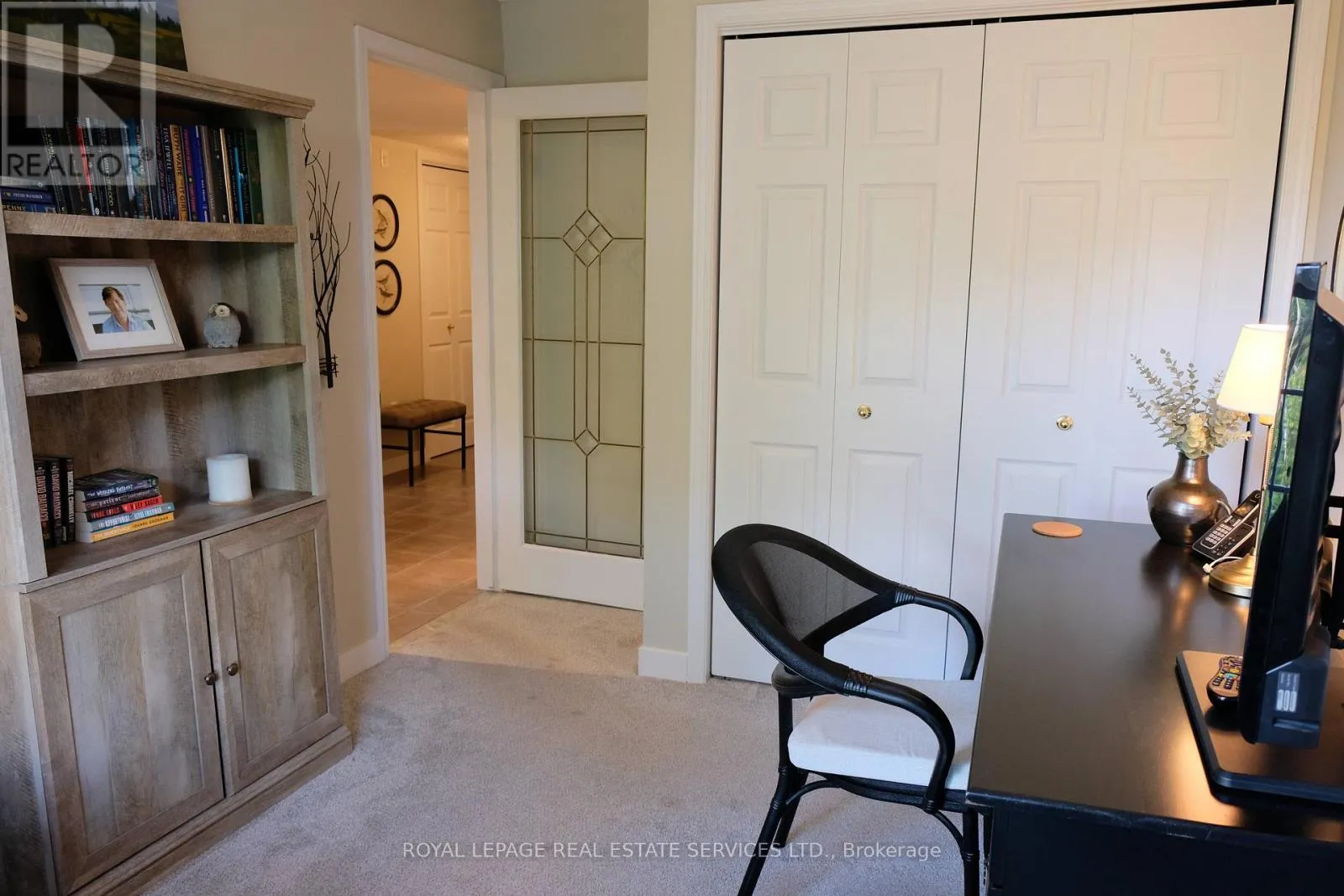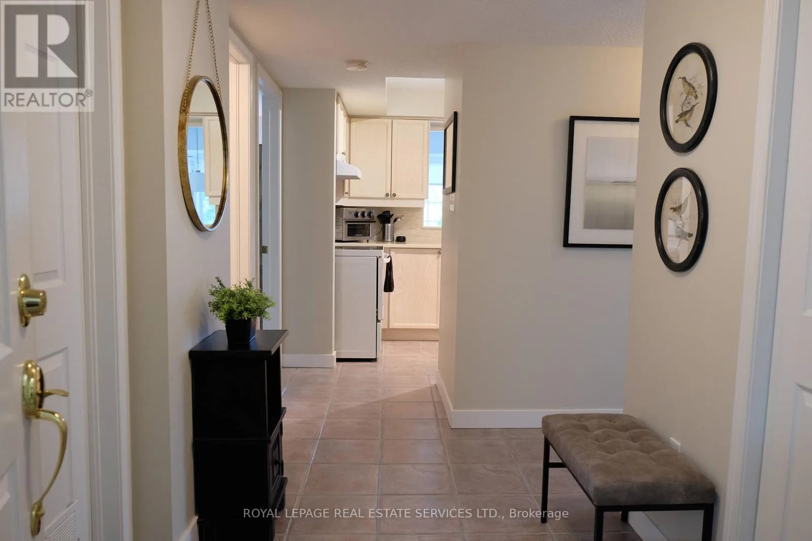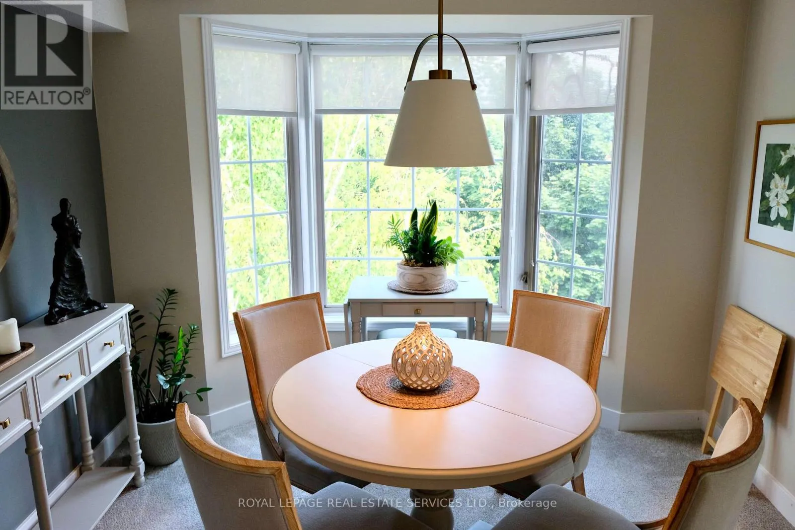 Cross Streets: Daryl Drive. ** Directions: turn south off Plains on Daryl and take 2nd side driveway into complex to Building C. Tucked away quietly at the back of the sought-after south Aldershot Oaklands Green complex, this suite offers something that's hard to find in condo living- space, light, and quiet living with views of nature. Experience a blend of comfort and style in this stunning 2-bedroom, 2-bathroom condo, offering 1,313 sq. ft. of spacious elegance. Situated on the top floor, this corner unit is flooded with natural light from large windows, creating a warm and inviting atmosphere throughout. The expansive living area is perfect for entertaining or enjoying a cozy evening at home. It seamlessly connects to a separate dining room, which features a convenient pass-through to the bright, modern kitchen. The kitchen offers granite countertops and ample cabinet space, making it a delight for any home chef. The luxurious master suite offers a tranquil retreat, complete with a walk-in closet and a private en-suite bathroom. The second bedroom and full bathroom provide versatile space, ideal for guests, family, or a home office. Step out onto the private spacious balcony to enjoy your morning coffee or relax in the evening while taking in beautiful southwest views. Additional conveniences include in-suite laundry, two parking spots (one outdoor near the entrance and one secured underground), plenty of visitor parking, and access to a lovely community room. With new carpet and fresh paint throughout, this condo is move-in ready. Don't miss your chance to live in this peaceful, well-maintained building in Aldershot. Located close to shopping, highway access, public transit including the GO train, plenty of trails, parks, RBG and waterfront. Comfortable and carefree living. (id:27476)