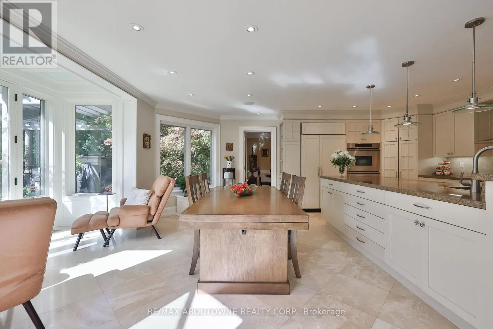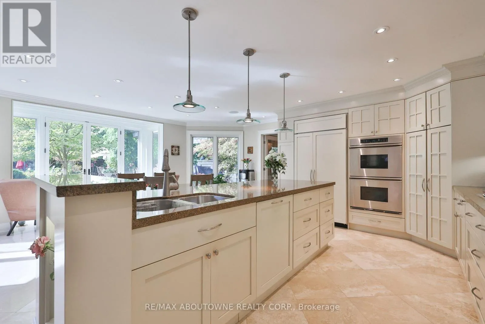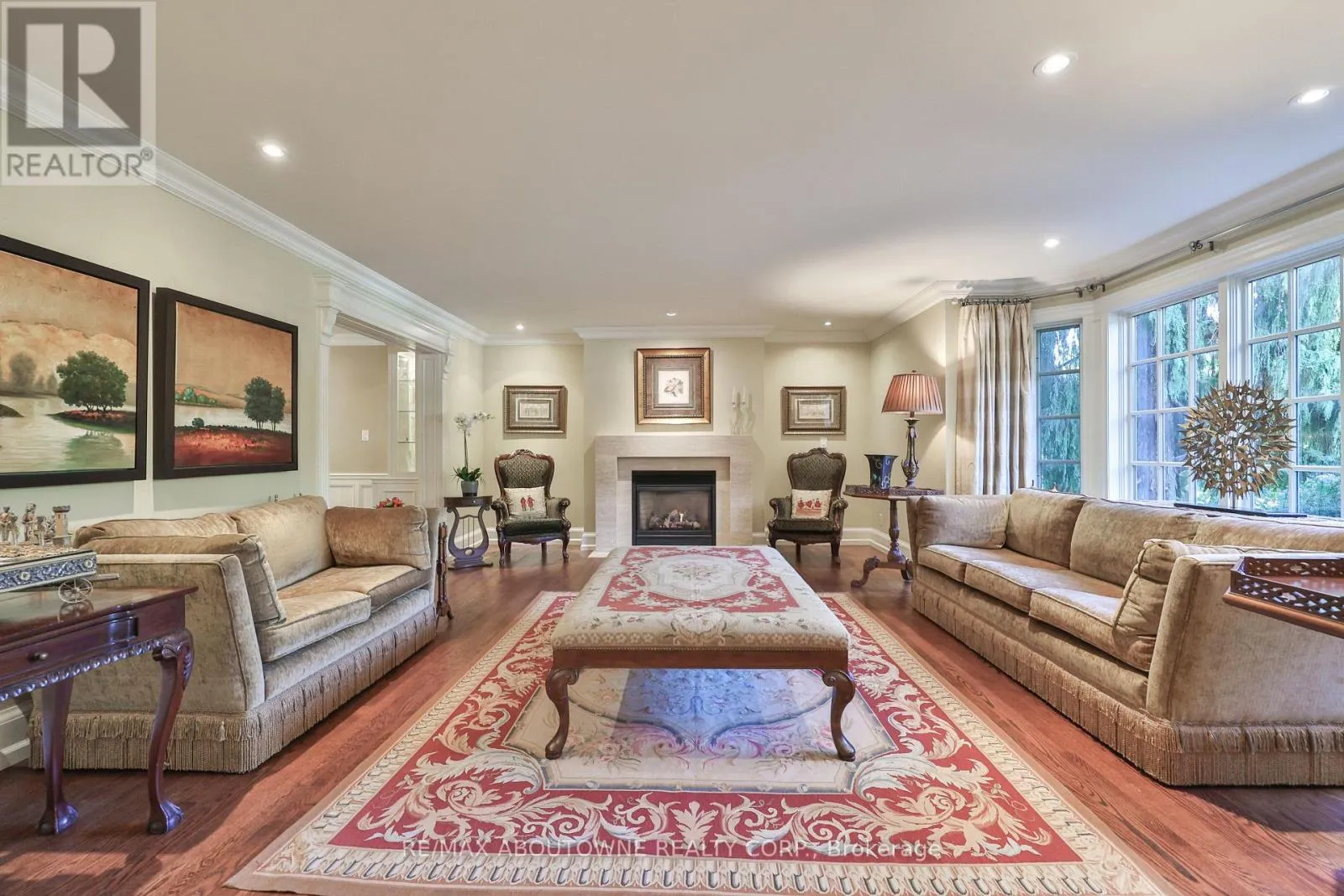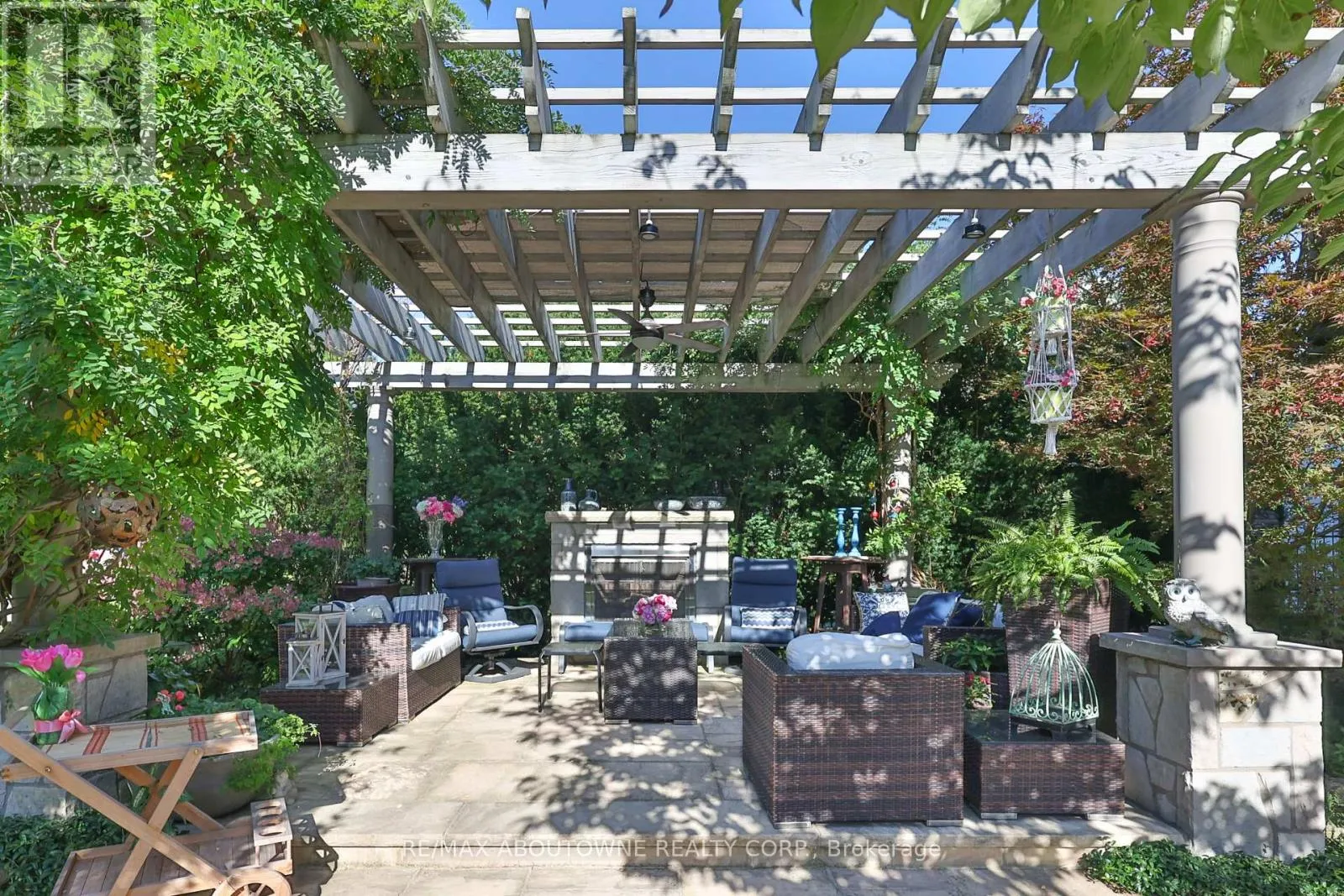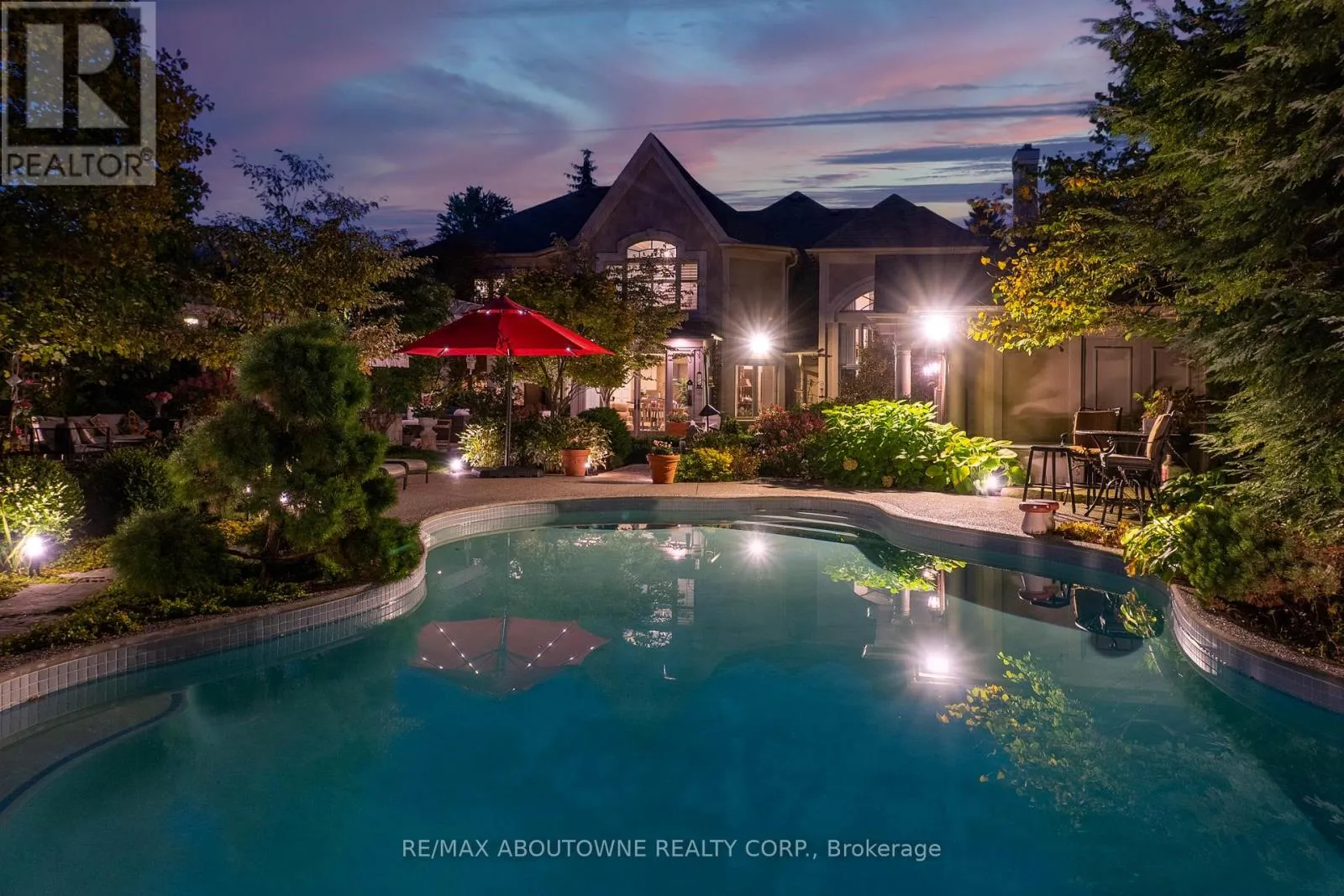 Pomona Ave/Spruce Ave Set on a breathtaking 70'x209' private lot in Burlington's prestigious Roseland community, this stately stone and stucco home offers over 5,850 sq ft of finely curated living space across three levels. Showcasing timeless elegance and old-world craftsmanship, this home impresses with custom millwork, plaster crown mouldings, custom built-ins and rich hardwood, limestone and porcelain floors. Step into a grand foyer that leads to elegant formal dining and living rooms with a gas fireplace then discover the heart of the home: a chef's dream kitchen featuring a sprawling island, top-of-the-line appliances, walk-in pantry, sunlit breakfast area with a walk out to the stunning gardens. Adjoining the kitchen is the great room with a two-storey ceiling, gas fireplace and a wall of windows framing your own backyard paradise. The main level also features a home office, stylish powder room and custom mudroom with access to an oversized double garage with epoxy floors. Upstairs, unwind in your primary retreat with vaulted ceilings, sunlit walk-in closet and luxurious 4-piece spa-inspired ensuite with steam shower. A loft-style library with built-in bookcases overlooks the great room and three more spacious bedrooms include a private guest suite, a shared 4-piece bath and convenient upper-level laundry. The lower level features a home theatre room, hobby room, second laundry, fitness studio with beverage centre and 3-piece bath and storage. Outside, the resort-style backyard is an entertainer's dream featuring a 20'x40' saltwater gunite pool ('19), stucco pool house ('15) with kitchenette, change room and garden storage, a pergola-covered stone patio ('19) with gas fireplace, dramatic landscape lighting and tranquil stone water feature, surrounded by stunning, lush, mature gardens. Just steps to top schools, parks, downtown and the lake, this distinguished home with its meticulous attention to detail exudes warmth and comfort and will appeal to the most discerning buyer. (id:27476)