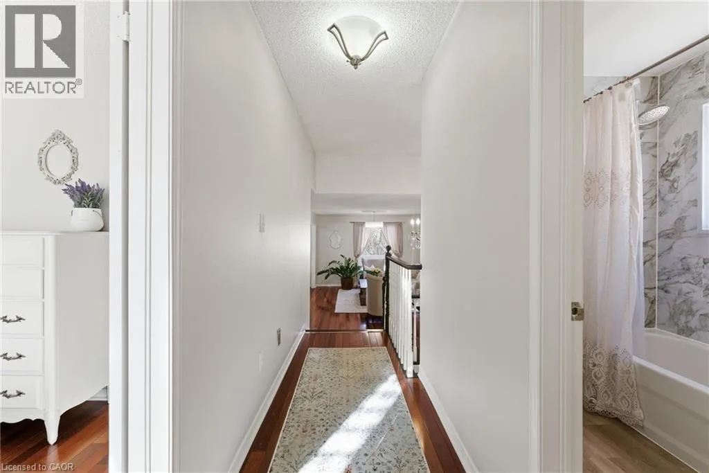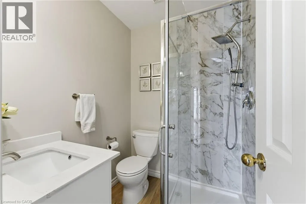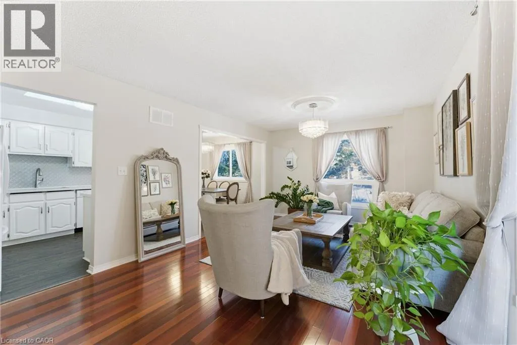Much sought-after South Burlington location! This immaculate end-unit townhome backing onto a ravine is tucked into a private, mature, tree-lined enclave in the highly desirable Maple neighbourhood, steps to Mapleview Mall, parks, downtown, the lake, GO Transit, and highways. Offering approximately 2,400 sq ft of total living space, this well-maintained home features 3 bedrooms and 3 full bathrooms across a thoughtful multi-level layout. The main floor includes a spacious family room with gas fireplace, walkout to a private ravine-facing deck, a bedroom, and a 3-piece bathroom, perfect for guests or a private retreat. Upstairs, the bright kitchen and dining area with granite countertops, abundant cabinetry, and hardwood flooring are ideal for entertaining. A second family/living room provides flexible living space. The primary suite boasts an oversized walk-in closet, 3-piece ensuite, and balcony with serene views. Low condo fees cover exterior maintenance, lawn care, and snow removal. A rare opportunity to enjoy privacy, scenic ravine views, and low-maintenance living in one of Burlingtonâs most desirable locations. (id:27476)