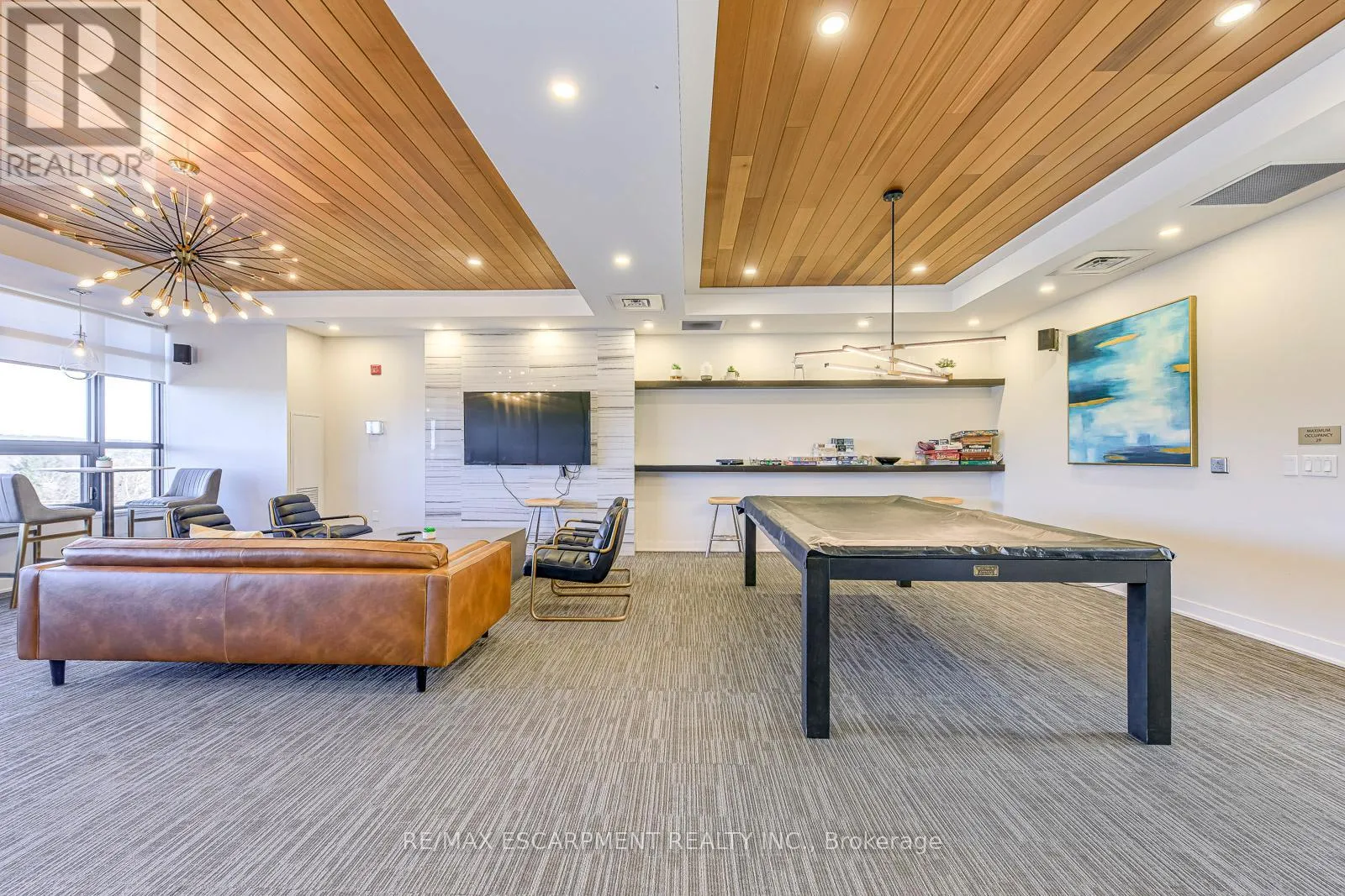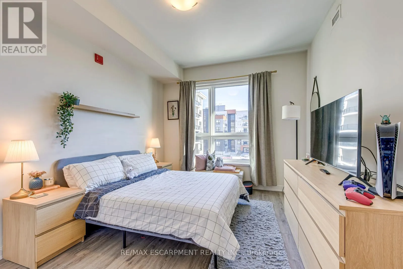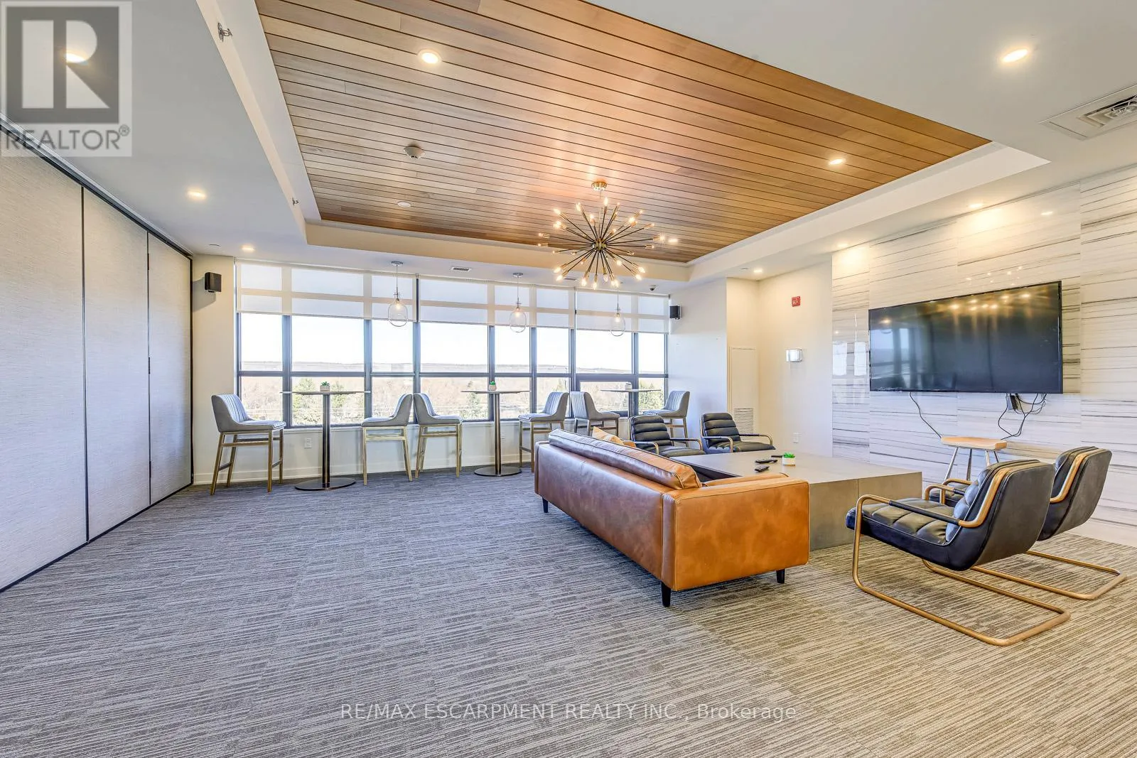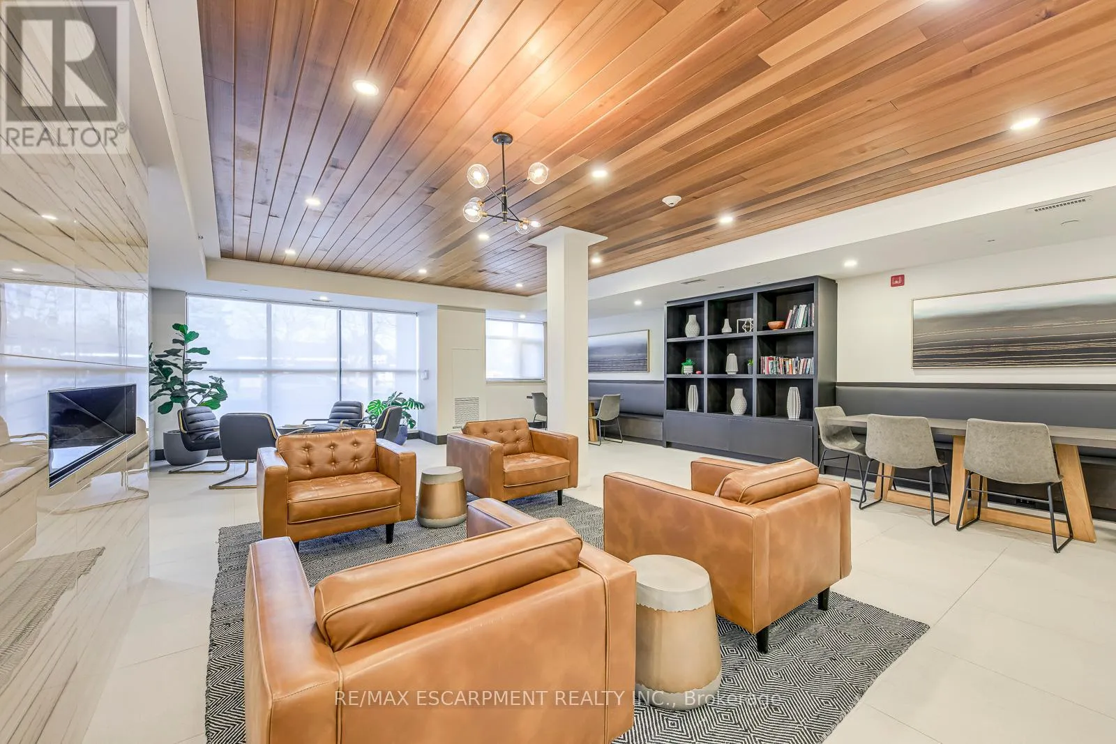 Plains Rd & Filmandale Rd Luxury living with breathtaking views at the Rosehaven built "Affinity" Condos! Experience modern elegance in this sun filled, bright and spacious 1 Bedroom + Den suite, beautifully appointed with premium laminate flooring and designer lighting throughout. The open-concept layout features a chef inspired kitchen with quartz counters, contemporary backsplash, large sink, and gorgeous island - truly an Entertainers delight. Enjoy morning coffee from your private balcony overlooking peaceful greenery, a true extension of living space. The primary bedroom includes a double door closet and boasts large windows, filling the space with natural light. The spa-inspired bathroom offers a built in vanity with plenty of storage and a beautifully tiled tub/shower combination for your relaxation. The versatile den provides ample space for a home office, hobby area, or reading nook-ideal for today's lifestyle. Residents enjoy award-winning amenities including a rooftop terrace with breathtaking views, fitness centre, party room, and much more. **EXTRAS** Premium Parking and Premium Locker included. Pride of ownership - this unit truly impresses! Prime Location with steps to shopping, schools, restaurants, transit, and minutes to highways and Aldershot GO. Location Location Location! (id:27476)