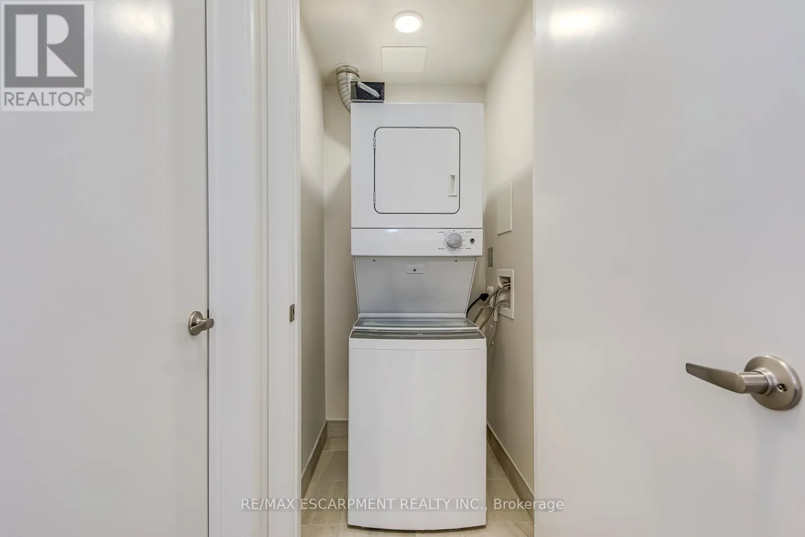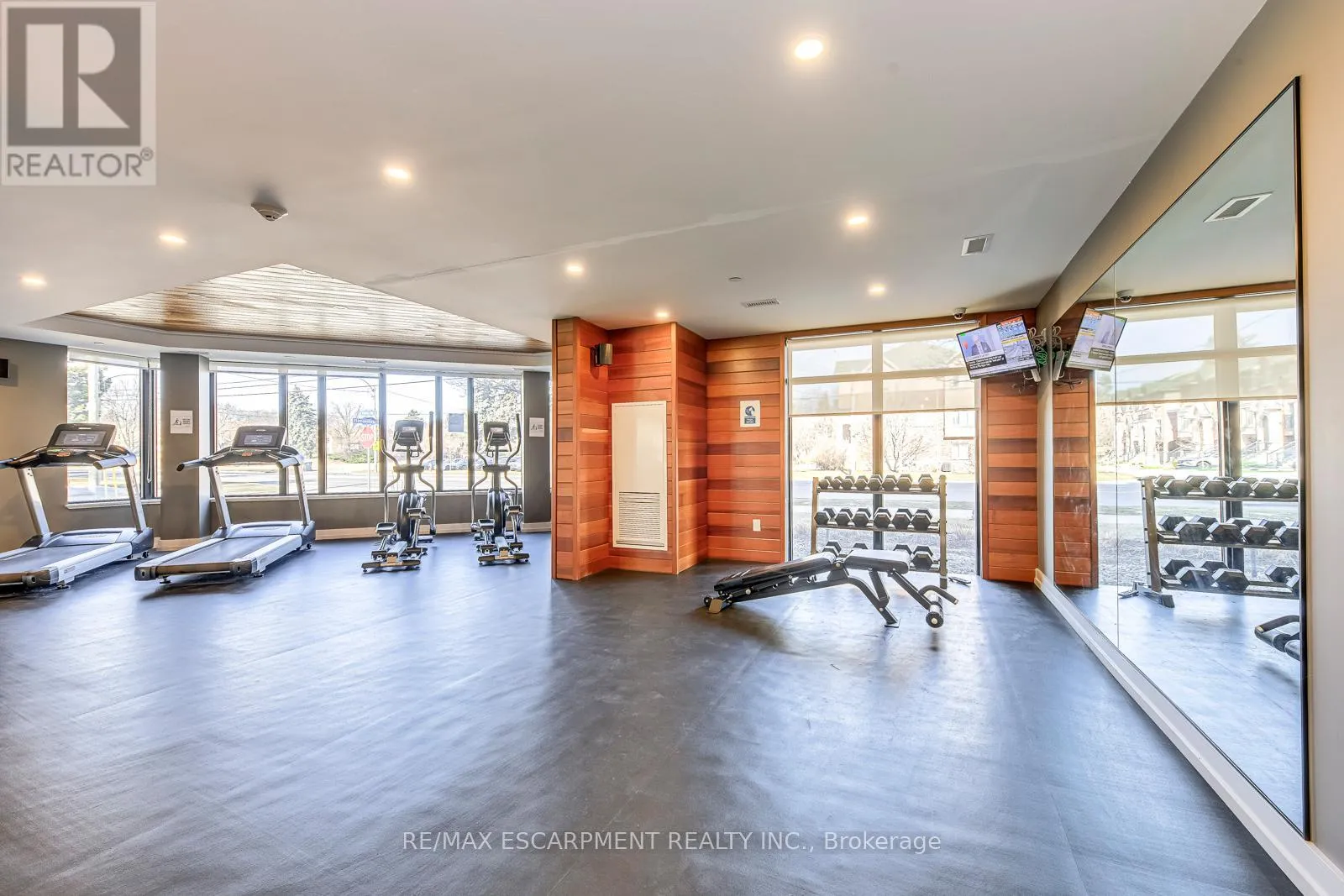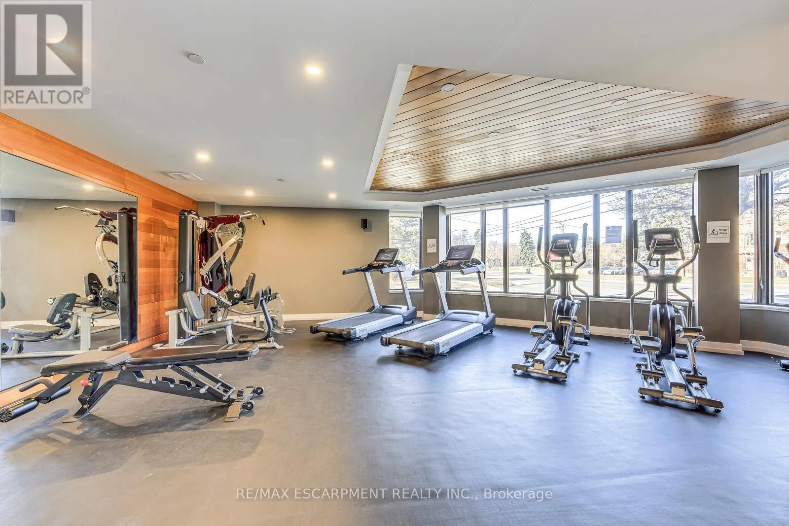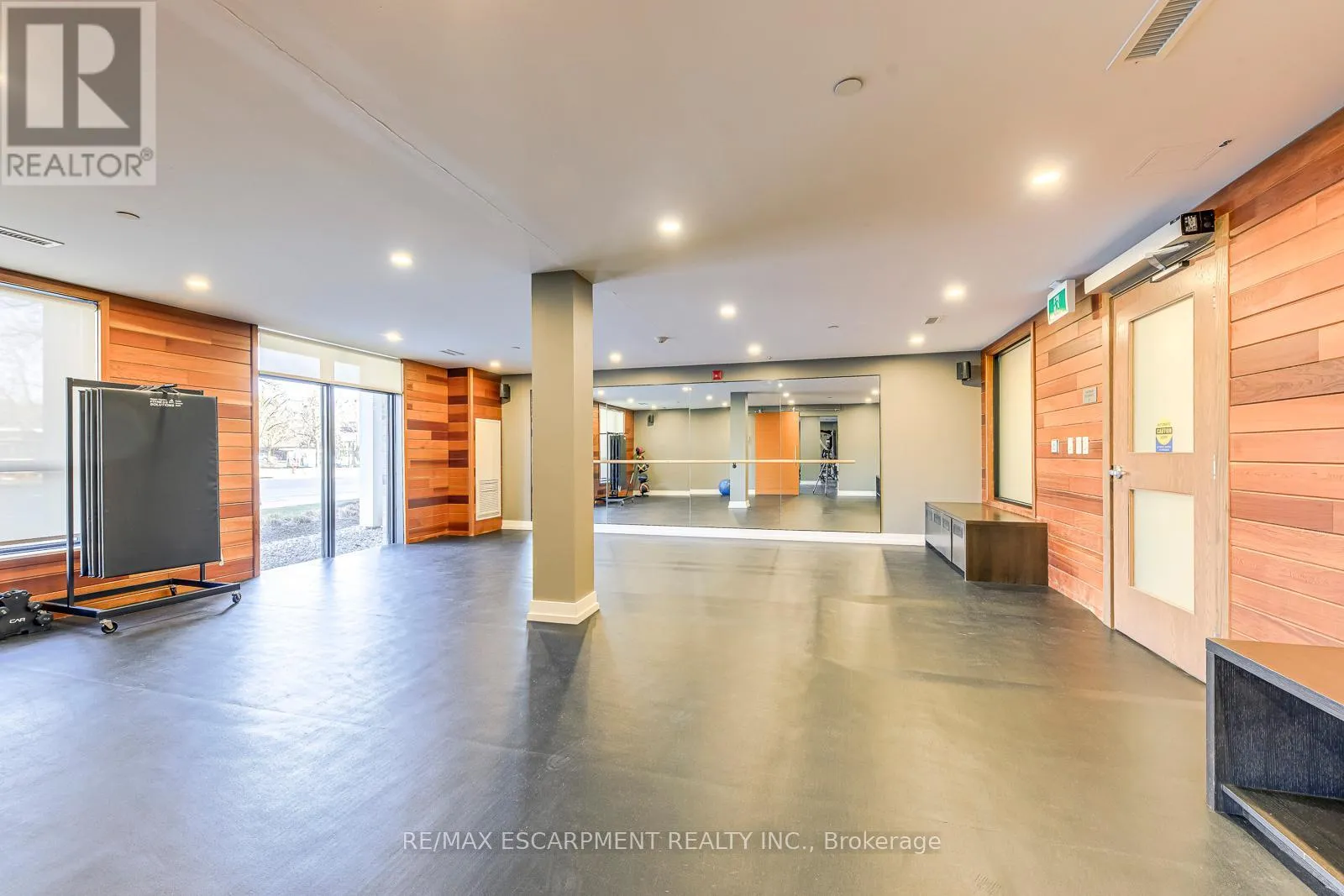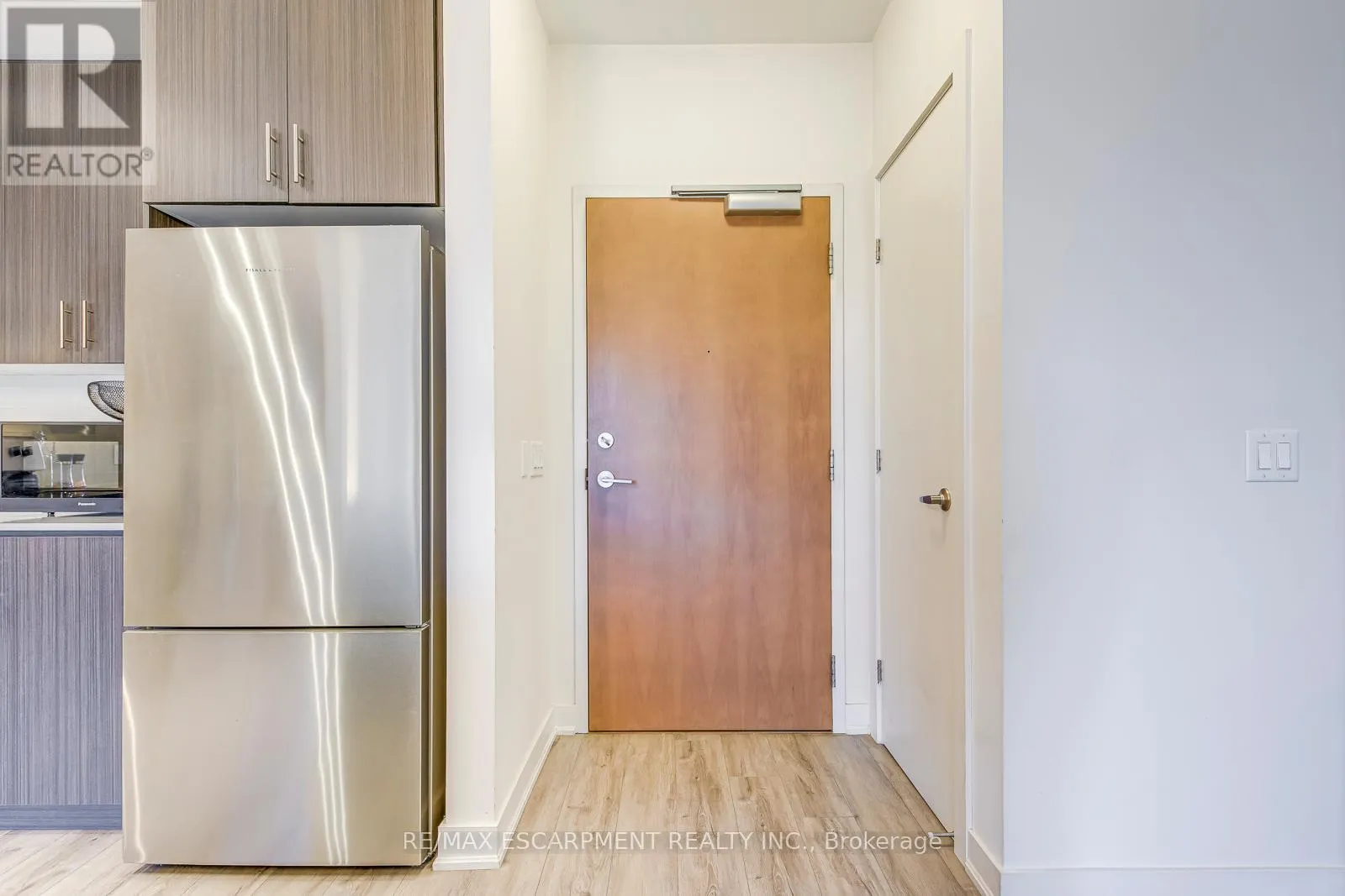 Plains Rd & Filmandale Rd Luxury living with breathtaking views at the Rosehaven built "Affinity" Condos! Experience modern elegance in this sun filled, bright and spacious 1 Bedroom + Den suite, beautifully appointed with premium laminate flooring and designer lighting throughout. The open-concept layout features a chef inspired kitchen with quartz counters, contemporary backsplash, large sink, and gorgeous island - truly an Entertainers delight. Enjoy morning coffee from your private balcony overlooking peaceful greenery, a true extension of living space. The primary bedroom includes a double door closet and boasts large windows, filling the space with natural light. The spa-inspired bathroom offers a built in vanity with plenty of storage and a beautifully tiled tub/shower combination for your relaxation. The versatile den provides ample space for a home office, hobby area, or reading nook-ideal for today's lifestyle. Residents enjoy award-winning amenities including a rooftop terrace with breathtaking views, fitness centre, party room, and much more. **EXTRAS** Premium Parking and Premium Locker included. Pride of ownership - this unit truly impresses! Prime Location with steps to shopping, schools, restaurants, transit, and minutes to highways and Aldershot GO. Location Location Location! (id:27476)