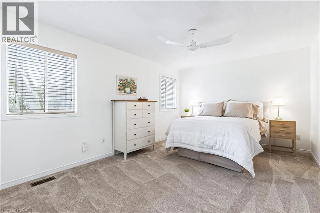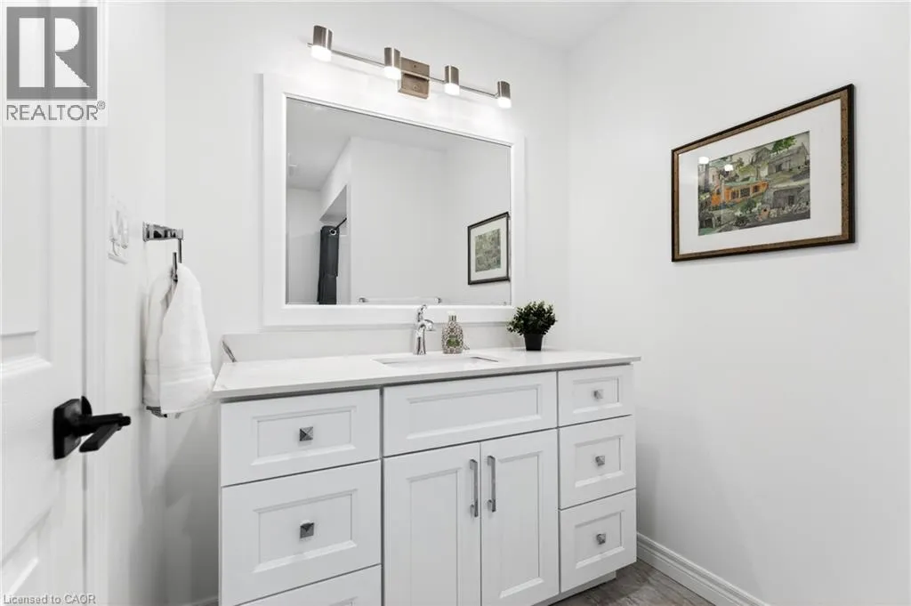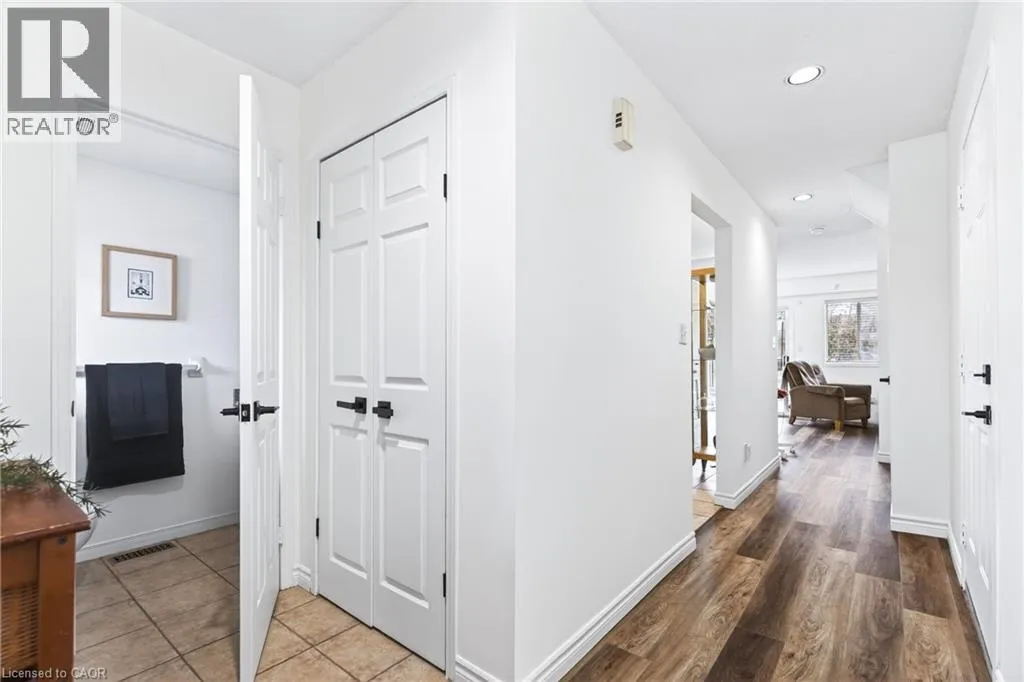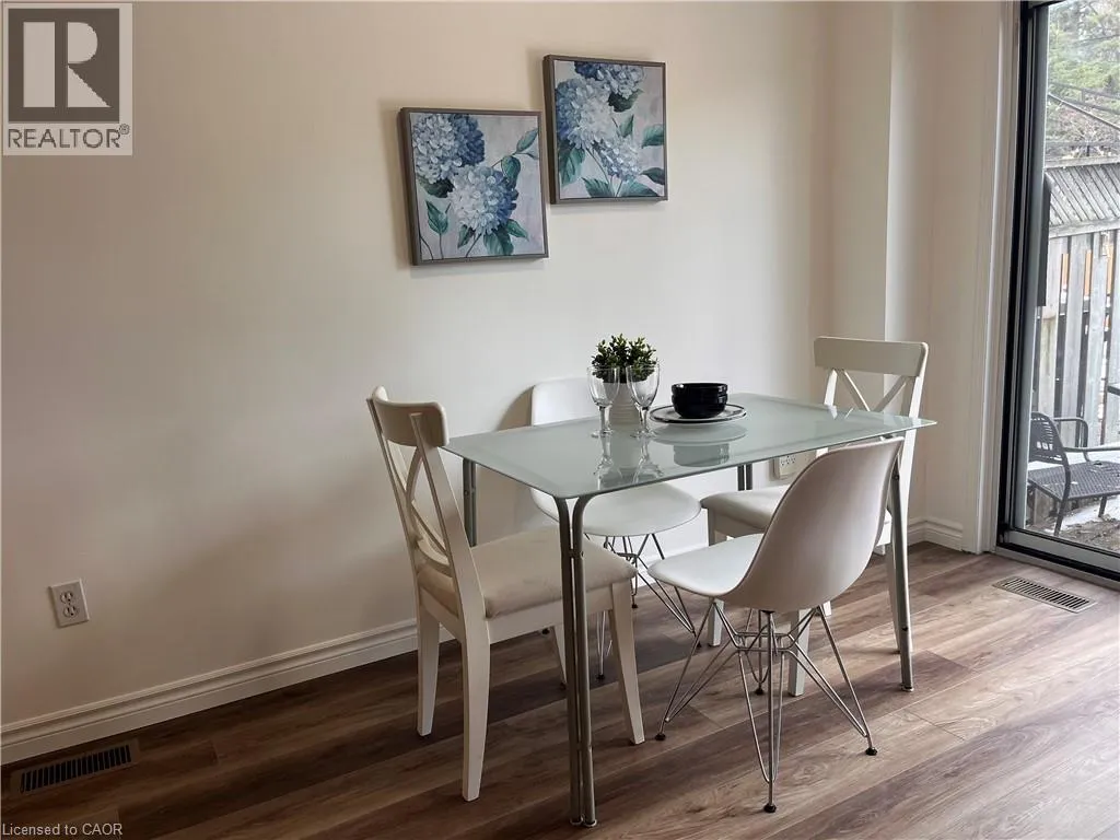 Guelph Line to Mountainside to Nottingham Welcome home. This beautifully maintained freehold townhouse in a family-friendly area invites you to experience a sense of flow. Notice the fresh paint and new luxury vinyl plank flooring as you move from the spacious foyer into the light-filled living and dining areasâperfect for entertaining. Discover the ease of the extended kitchen, offering ample prep and cupboard space for your daily life. Upstairs, feel the comfort of plush new carpeting and spacious landing. The primary bedroom features double closets and natural light, while the fully renovated washroom showcases premium finishes and a large vanity. With two more spacious bedrooms, thereâs room to grow. The basement offers extra living space with a 3-piece rough-in, ready for your finishing touches. Step outside to a lovely deck overlooking a deep, 150-ft treed lot. The fenced backyard provides exceptional privacy for children and pets. Complete with direct access to the garden through the attached garage and providing a total of 3 parking spaces. Youâre ideally located near schools, parks, shopping, and QEW. With too many updates to list here (Updates list provided upon request) this is a rare opportunity to secure a move-in ready home in a location that feels exactly right. (id:27476)