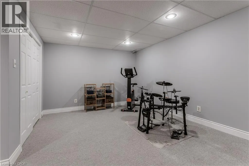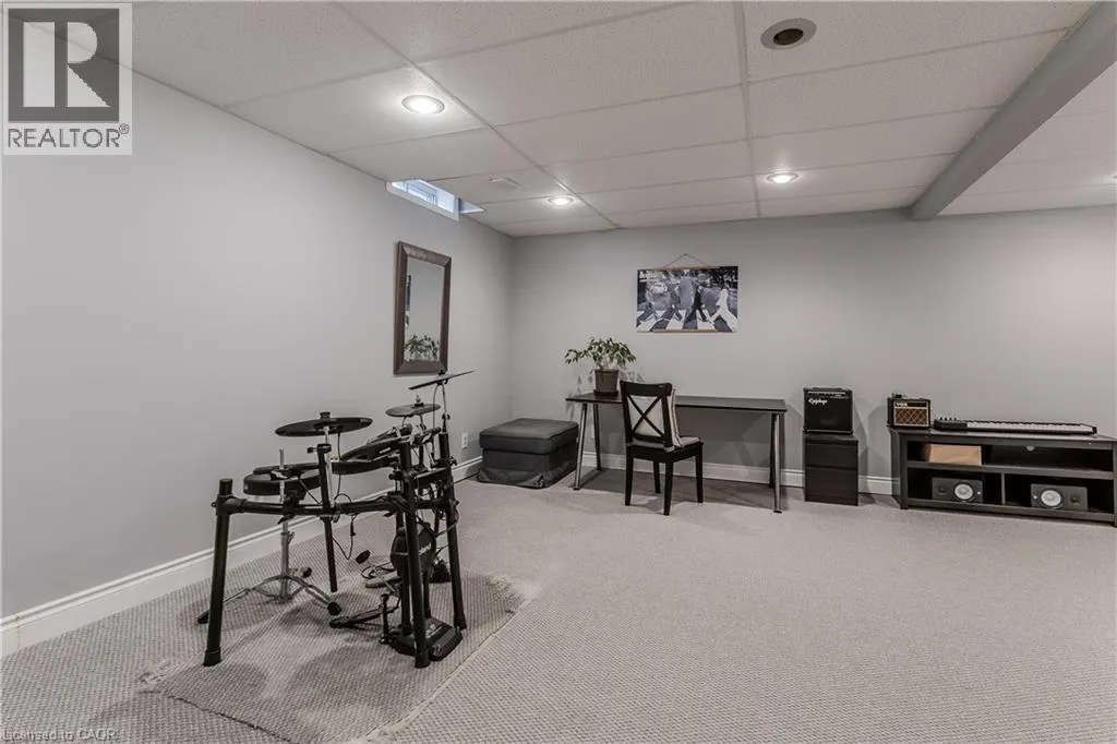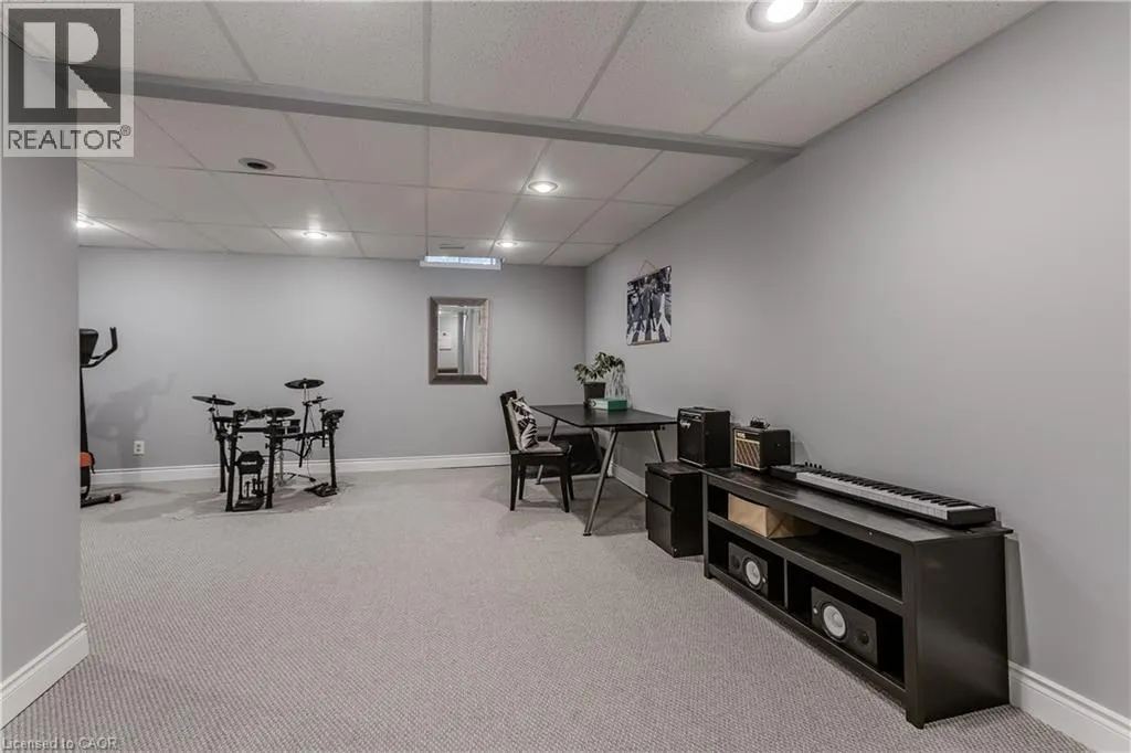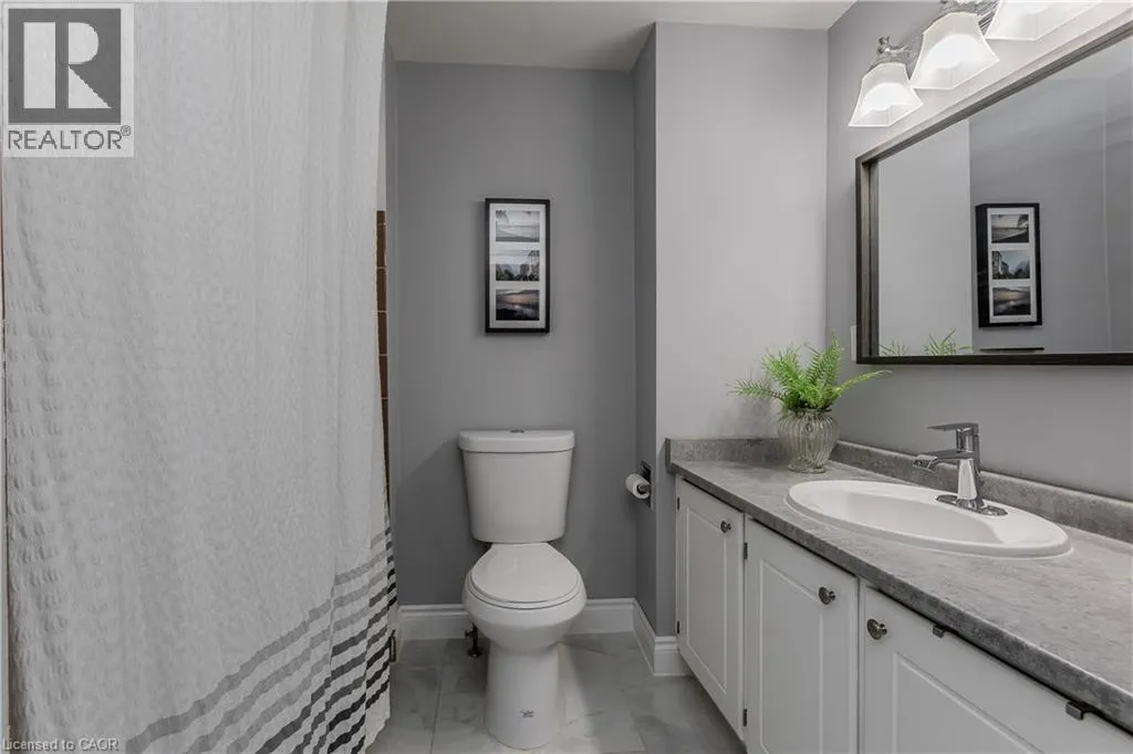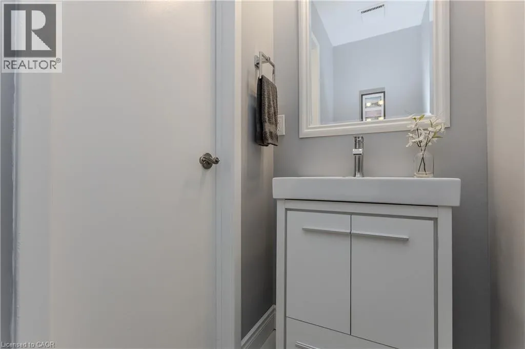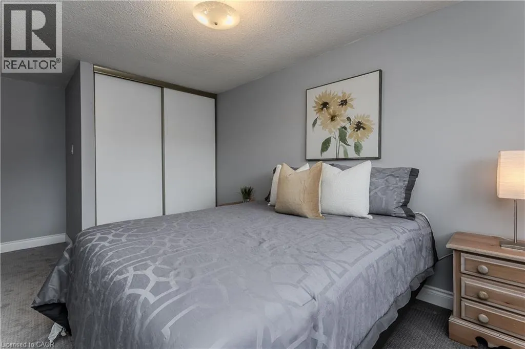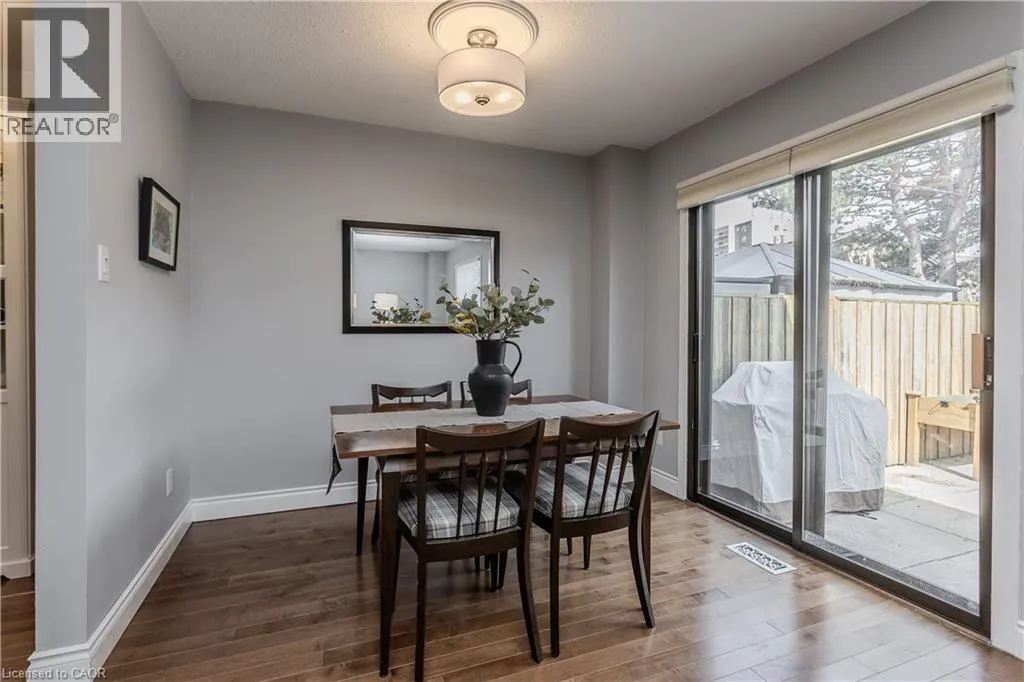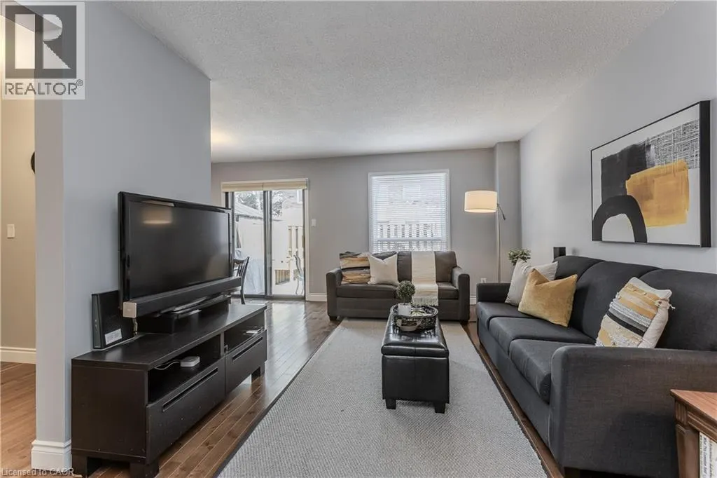 Guelph Line and Oxford Road Welcome to this beautifully maintained condo townhome nestled in the heart of South Burlingtonâan ideal opportunity for new families seeking comfort, convenience, and a true lifestyle location. Offering 1704 sq ft of total living space, this home is perfectly positioned just minutes from the lake, vibrant downtown, parks, schools, and all day-to-day amenities, making everyday living effortless. From the moment you arrive, youâll appreciate the homeâs charming curb appeal and inviting presence. Step inside to a bright and freshly painted main floor, where rich hardwood flooring flows throughout and large windows fill the space with natural light. The open-concept living and dining area creates a warm and welcoming atmosphere, perfect for family time or entertaining guests, with a seamless walkout to the backyard for easy indoor-outdoor living. The kitchen has been thoughtfully updated with newer lower cabinetry, a new countertop, and stainless steel appliancesâoffering both functionality and style. A convenient 2-piece powder room with updated flooring and vanity completes this level. Upstairs, youâll find newer carpeting (2020) and three well-sized bedrooms, including a spacious primary retreat. The 4-piece main bathroom features a large vanity, perfect for busy family mornings. The fully finished lower level extends your living space even further, complete with newer carpeting (2020) and a large, versatile rec roomâideal for a kidsâ play area, media room, home gym, or additional family lounge. Step outside to your private, fully fenced backyard featuring a concrete patio and gate access to a common areaâperfect for kids and pets to enjoy. A fantastic opportunity to own a move-in ready home in a sought-after, family-friendly community with unbeatable lifestyle convenience! (id:27476)