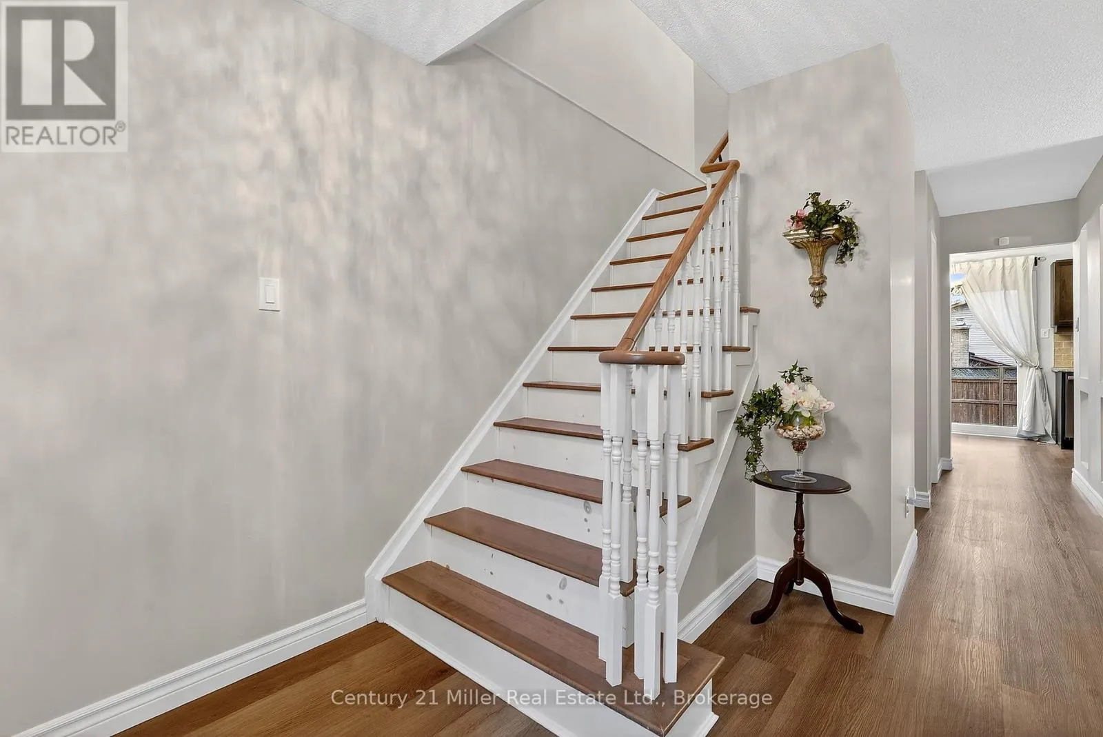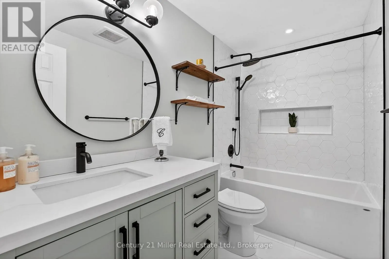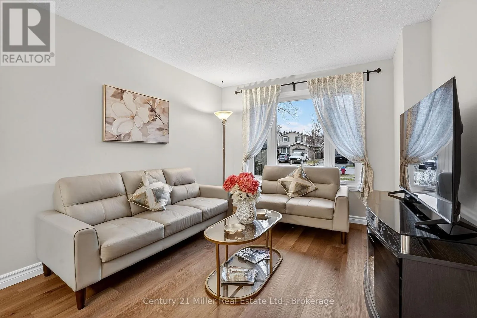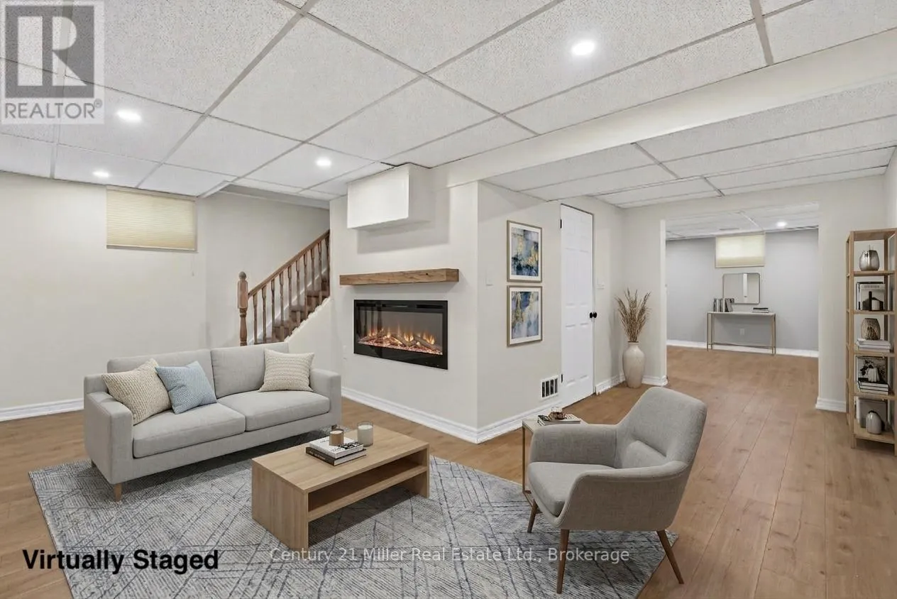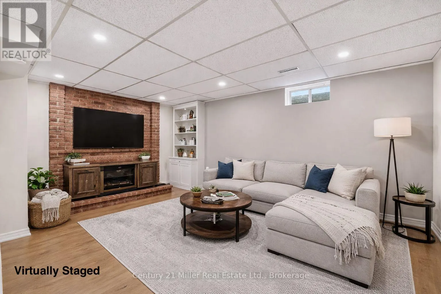 Cross Streets: Guelph and Dundas. ** Directions: From the QEW head north on Guelph Line and then make a left on Coventry followed by a right on Malcolm Crescent. This beautifully updated home offers over 1,750 sq. ft. of finished living space in the sought-after Brant Hills neighbourhood, which is perfect for families, those who are downsizing, or first-time buyers. This thoughtfully renovated and freshly painted home offers major updates, including windows, roof, beautifully updated bathrooms, stainless steel kitchen appliances, and professional landscaping. This home blends modern style with everyday functionality. The open-concept main floor features durable luxury vinyl plank flooring and a renovated powder room. The functional kitchen offers a breakfast area with patio door access to the fully fenced backyard, creating a seamless space for indoor-outdoor living. Step outside to a backyard retreat complete with a beautiful large patio area perfect for relaxing, hosting summer BBQs, and entertaining. Upstairs, you'll find hardwood throughout, with three spacious, light-filled bedrooms and the stylishly renovated main bathroom featuring tiled flooring, a tiled shower-tub, modern finishes, and ample storage. The finished basement expands the living space with luxury vinyl flooring, a large family room with fireplace, and a versatile flex area ideal for a home office, home gym, or recreation room. Ideally located close to highways, schools, parks, golf courses, transit, shopping, and everyday amenities in the Brant Hills community. (id:27476)