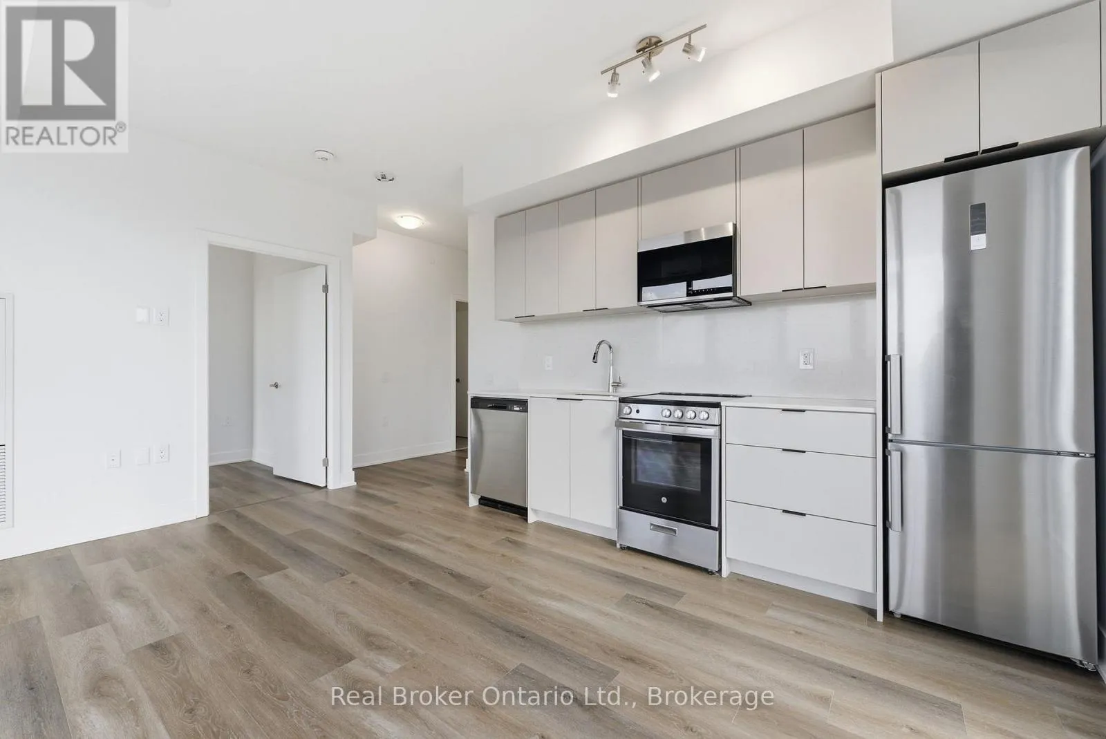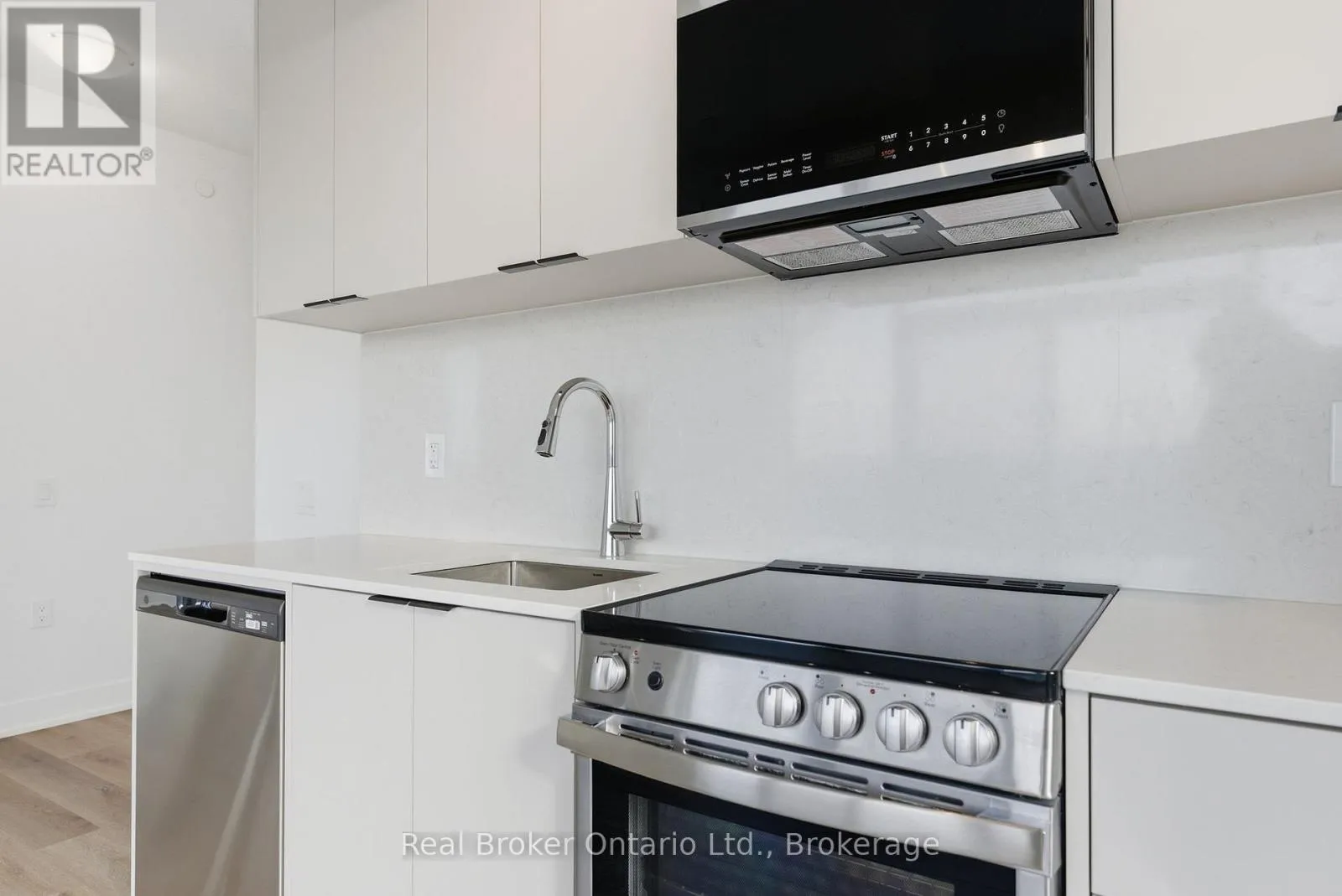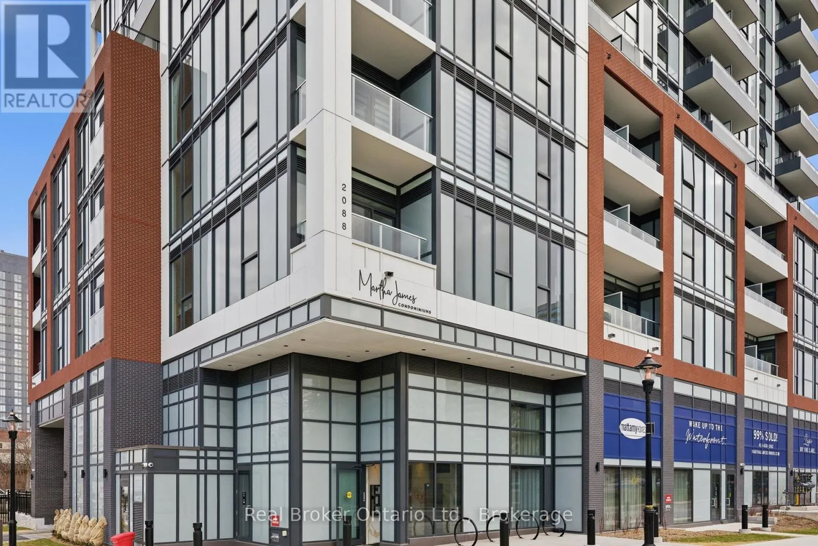 Cross Streets: Martha Street and James Street. ** Directions: Martha Street to James Street. Welcome to this beautifully finished 2 bed, 2 bath corner suite at Martha James Boutique Condos in a prime Downtown Burlington location. This never-before-lived-in unit offers 789 sq ft of bright, open-concept living space and a 78 sq ft patio, complete with high ceilings, large windows, and lovely lake views. The kitchen is both stylish and functional, featuring quartz countertops, stainless steel appliances with a built-in microwave, and a modern backsplash. The building is thoughtfully designed with smart home technology, including facial recognition entry, along with exceptional amenities such as a concierge, parcel lockers, a co-working and social lounge, fitness centre with yoga studio, a dog wash, and a rooftop terrace with BBQs. Conveniently located close to the QEW, GO Transit, shopping, and dining, it's an ideal spot for easy, connected living. In-suite laundry, one parking space with EV charger and one locker are also included. (id:27476)
