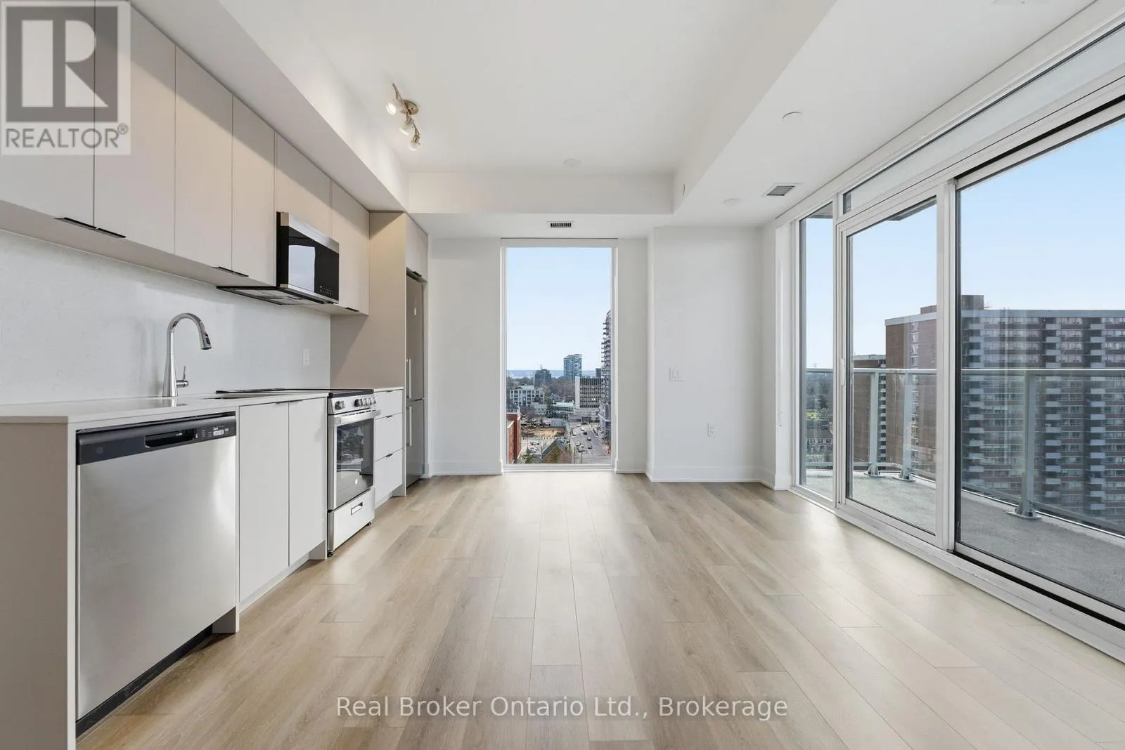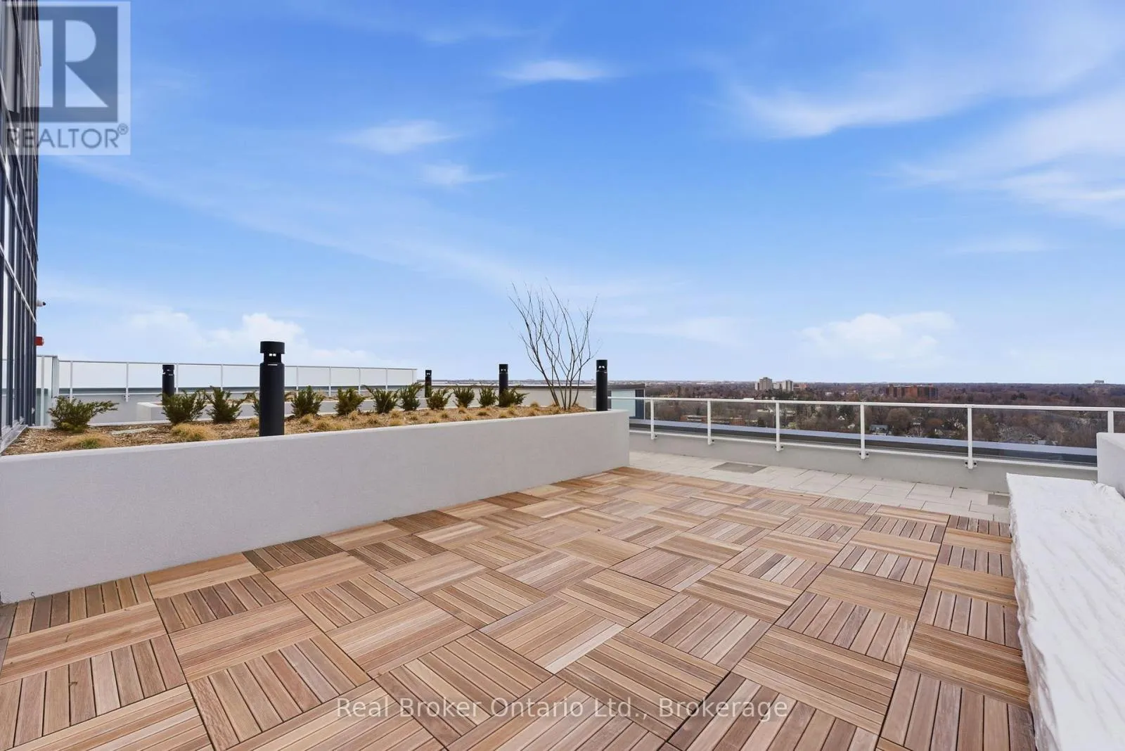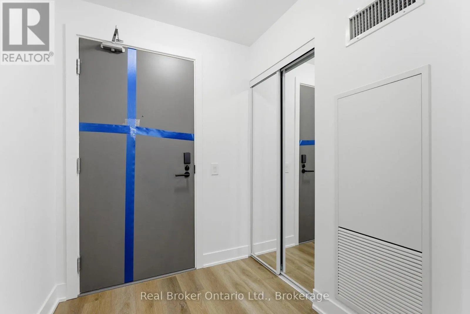 Cross Streets: Martha Street and James Street. ** Directions: Martha Street to James Street. Welcome to this beautifully finished 2 bed, 2 bath corner suite at Martha James Boutique Condos in a prime Downtown Burlington location. This never-before-lived-in unit offers 789 sq ft of bright, open-concept living space and a 78 sq ft patio, complete with high ceilings, large windows, and lovely lake views. The kitchen is both stylish and functional, featuring quartz countertops, stainless steel appliances with a built-in microwave, and a modern backsplash. The building is thoughtfully designed with smart home technology, including facial recognition entry, along with exceptional amenities such as a concierge, parcel lockers, a co-working and social lounge, fitness centre with yoga studio, a dog wash, and a rooftop terrace with BBQs. Conveniently located close to the QEW, GO Transit, shopping, and dining, it's an ideal spot for easy, connected living. In-suite laundry, one parking space with EV charger and one locker are also included. (id:27476)