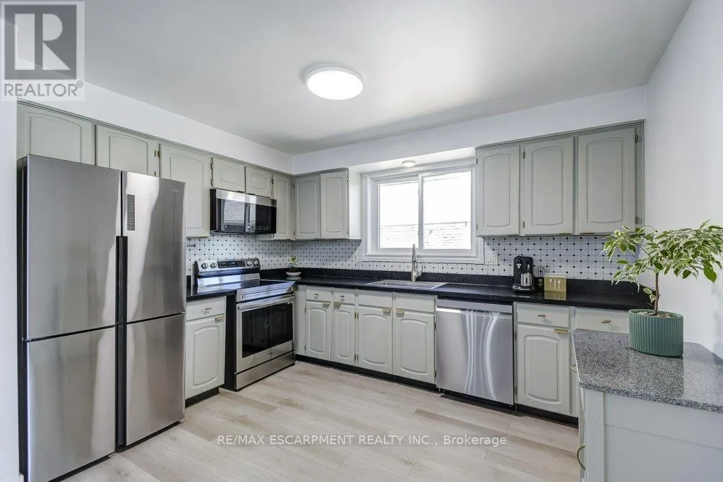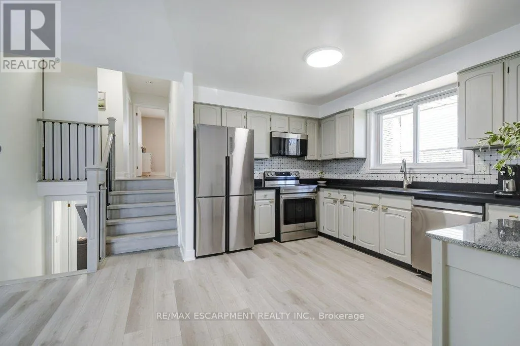 Cross Streets: Blackwood Rd. ** Directions: Dundas St, Blackwood Rd, Malcolm Cres. Gorgeous renovated backsplit backing onto a ravine! The bright open-concept layout features an upgraded kitchen with new appliances and stone countertops, complemented by renovated bathrooms, new hardwood stairs, new flooring, lots of pot lights, and is also carpet-free across all levels. The lower-level family room with gas fireplace walks out to a large backyard with no rear neighbours, perfect for morning coffee, evening unwinding, and everything in between. The finished basement with kitchenette and rec room adds flexible space for guests, hobbies or extended family living. Enjoy a walkable lifestyle with parks, schools, everyday amenities and Brant Hills Community Centre just minutes away. Nature lovers will appreciate nearby conservation areas and golf courses, while commuters benefit from quick access to Highway 407, 403 & QEW and a short drive to the Burlington GO Station. Ravine views, stylish updates, and a location that keeps everything within reach; this home truly has it all! ** This is a linked property.** (id:27476)