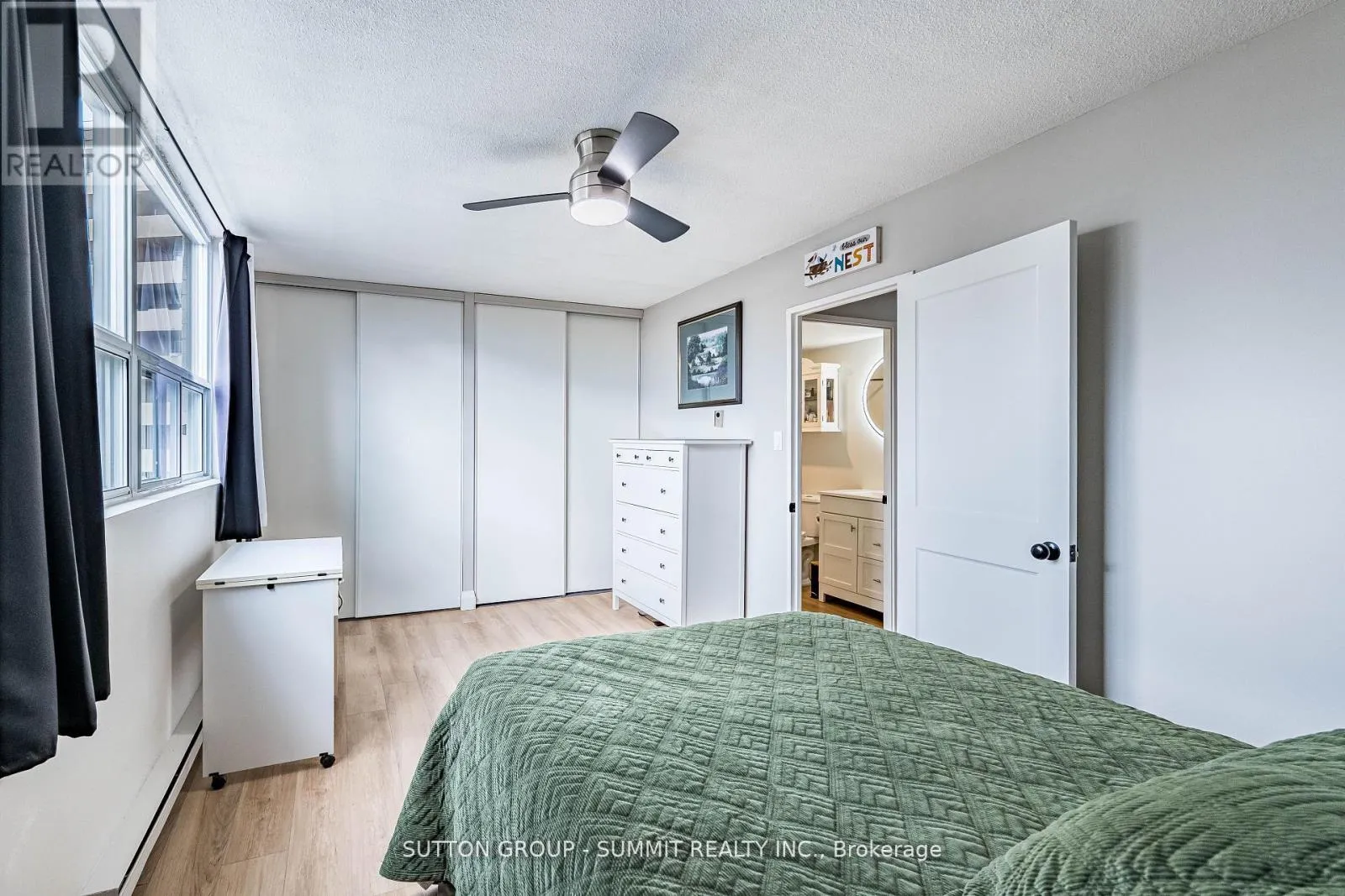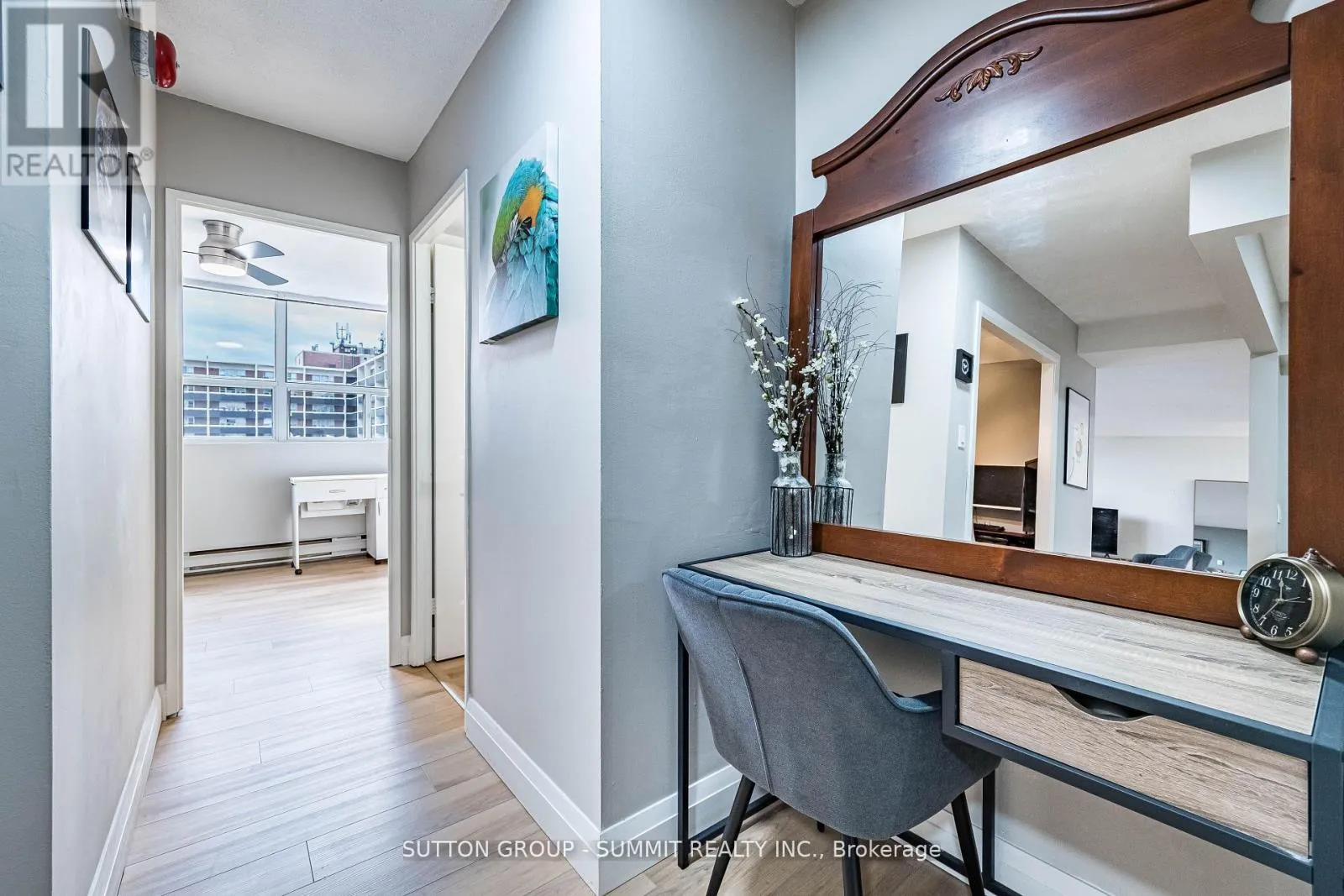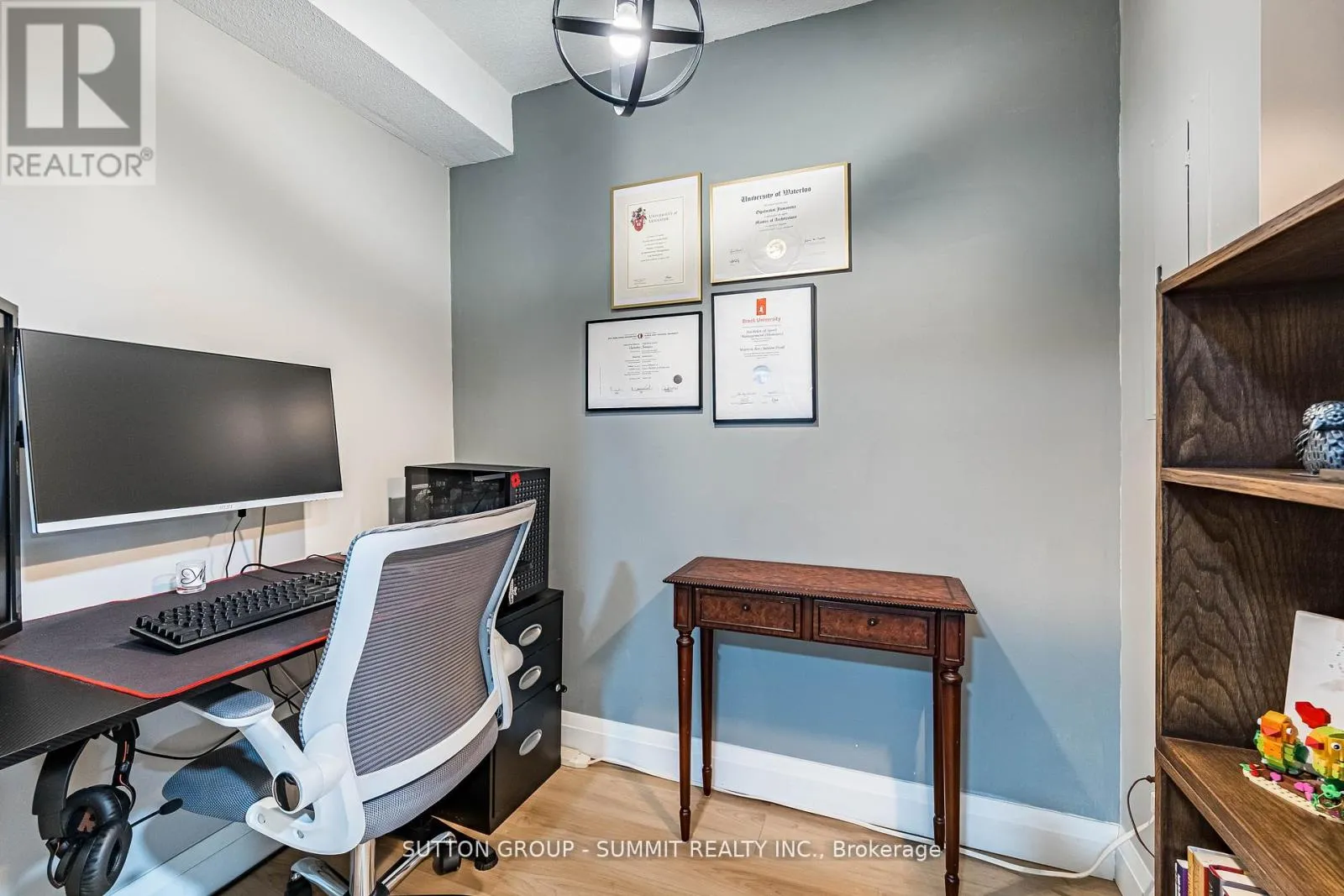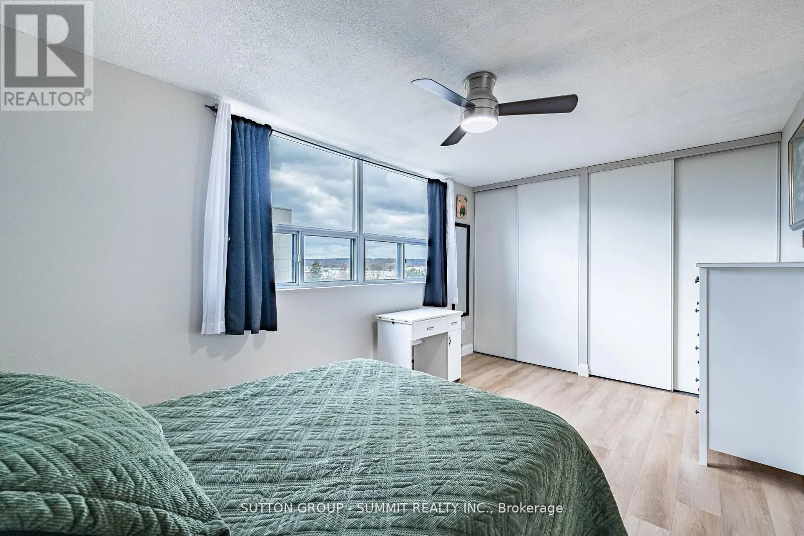 DYNES/PROSPECT Beautifully Renovated & Move-In Ready! Located in The Empress, one of Burlington's most sought-after condominium communities. This oversized 1-bedroom + den suite is the largestone-bedroom layout in the building, offering over 1,000 sq. ft. of bright, open living space with east and west exposures - perfect for enjoying both sunrise and sunset views. Completely renovated in 2023-2024, this suite features new flooring and baseboards throughout, freshly painted walls and ceilings, new doors, modern light fixtures, and ceiling fans. The custom kitchen shines with sleek cabinetry, extended counter space, and stainless steel appliances -ideal for cooking and entertaining. The updated bathroom offers a new tub, toilet, vanity, and elegant touch-light mirror for a spa-like feel. The bright living and dining area opens to a large private balcony, perfect for relaxing outdoors. The spacious bedroom includes two large double closets, while the versatile den is ideal for a home office. In-suite laundry and one underground parking space complete this exceptional home. Building Amenities include: 24-hour concierge, outdoor pool, fitness centre, sauna, party room, library, car wash bay, workshop, barbecues, EV charging station, and ample visitor parking. Enjoy comfort, security, and convenience just steps from shopping, dining, transit, and the Burlington Centre Mall. (id:27476)