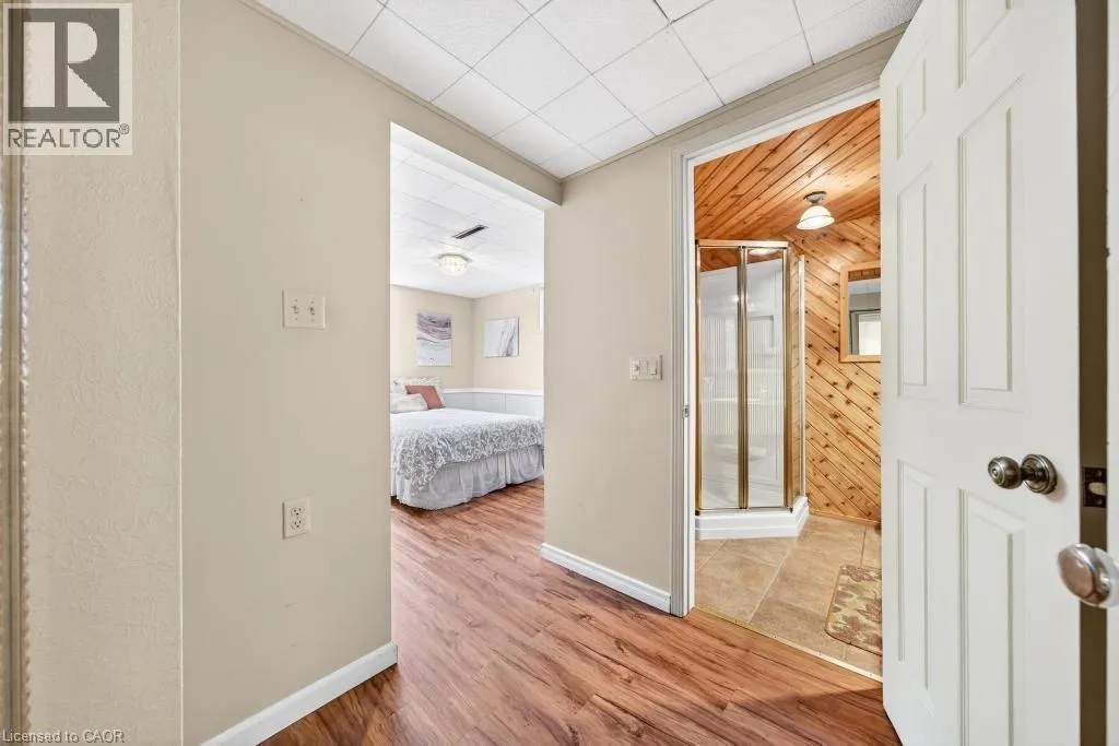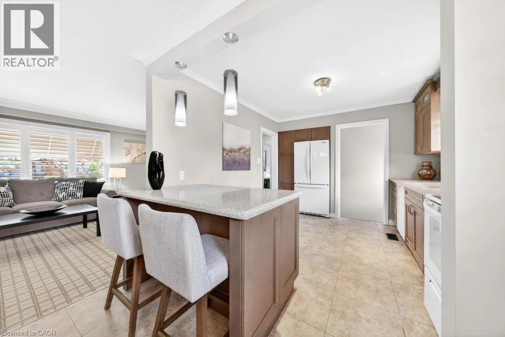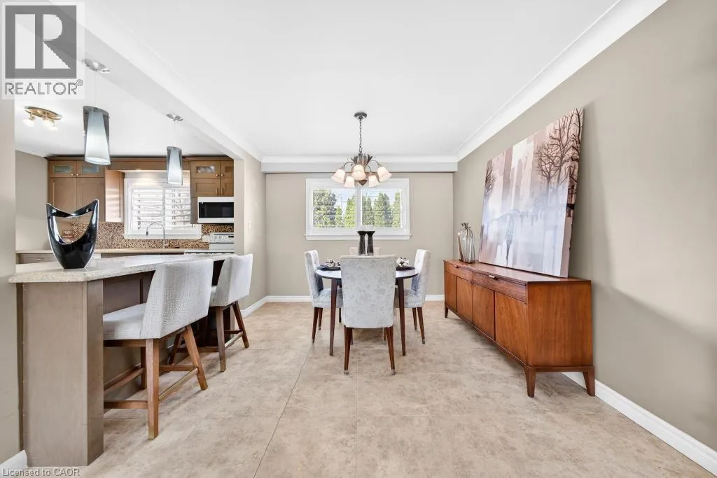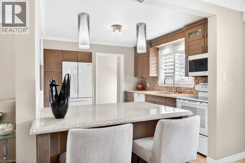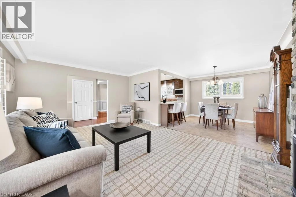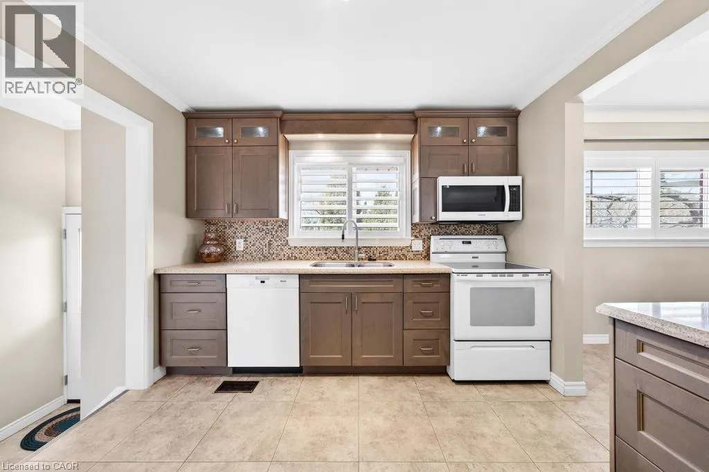 Prospect to Joyce St Solid, all brick bungalow with a Mid Century Modern vibe in the heart of downtown Burlington, offering timeless charm with thoughtful updates throughout. This well-maintained home features 3+1 bedrooms and 2 full bathrooms, ideal for families or those seeking flexible living space. The spacious living room has character and charm with a floor to ceiling stone fireplace and large updated windows. The renovated custom kitchen is a standout, complete with quartz countertops and separate dining area. A second living space is found in the lower level along with a 4th bedroom, 3 pc bath, and a huge laundry/storage/utility area to make your own. Major updates provide peace of mind, including a newer roof, washer and dryer, eavestroughs, gutter guards, irrigation system and a sump pump with weeping tile. This private and spacious corner lot is 63.64 x 144 deep, a unique gem offering tons of potential. Steps to Tom Thompson French Immersion Pubilc School and short walk to BCHS and the Burlington Go Station - perfect for commuters and families alike. Enjoy a highly walkable lifestyle on this very quiet street with easy access to downtown shopping, community events, parks, restaurants, waterfront, shops and more. A perfect blend of character, quality, and modern convenience in a prime location. (id:27476)