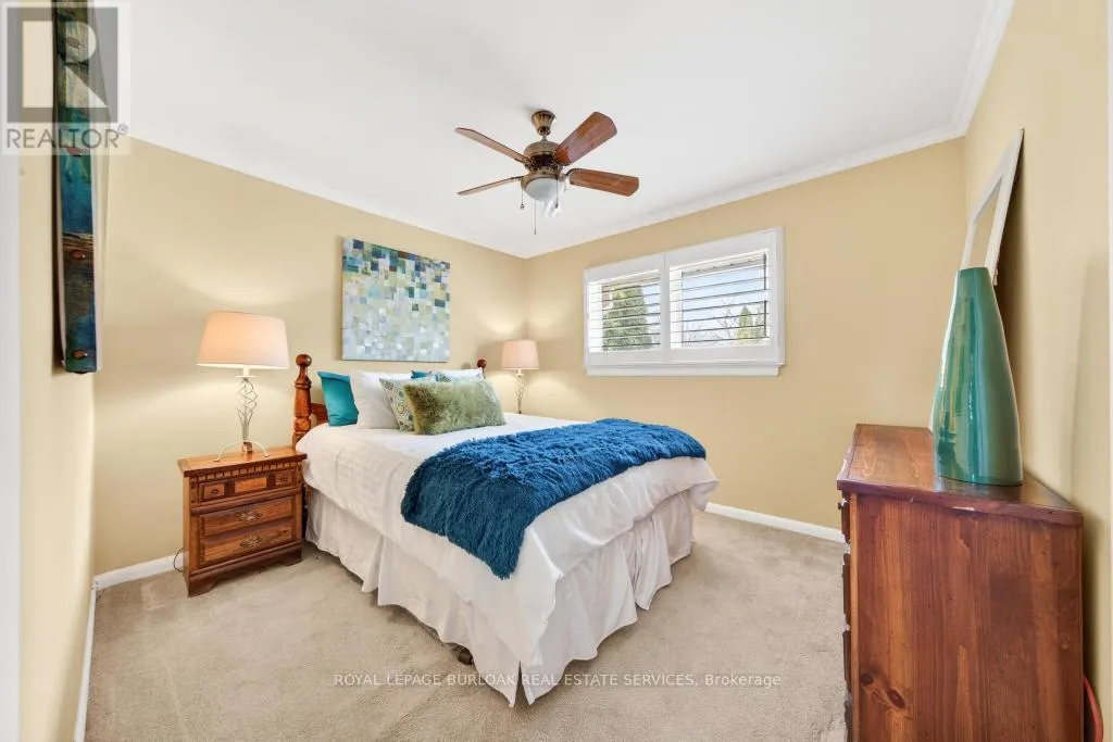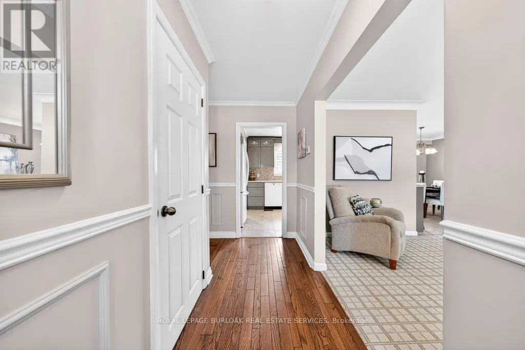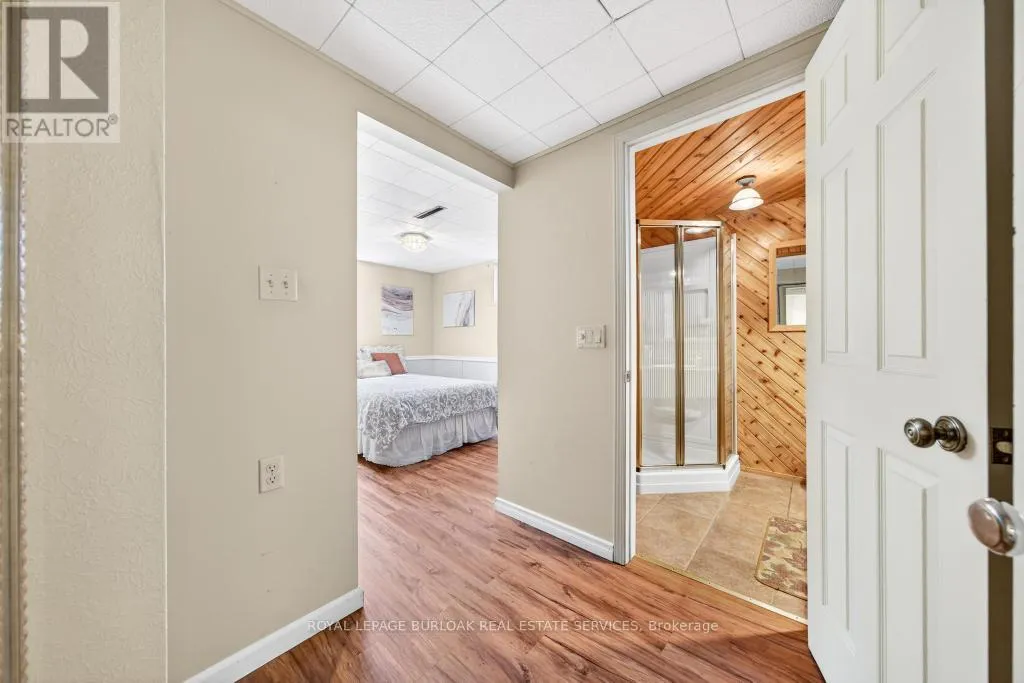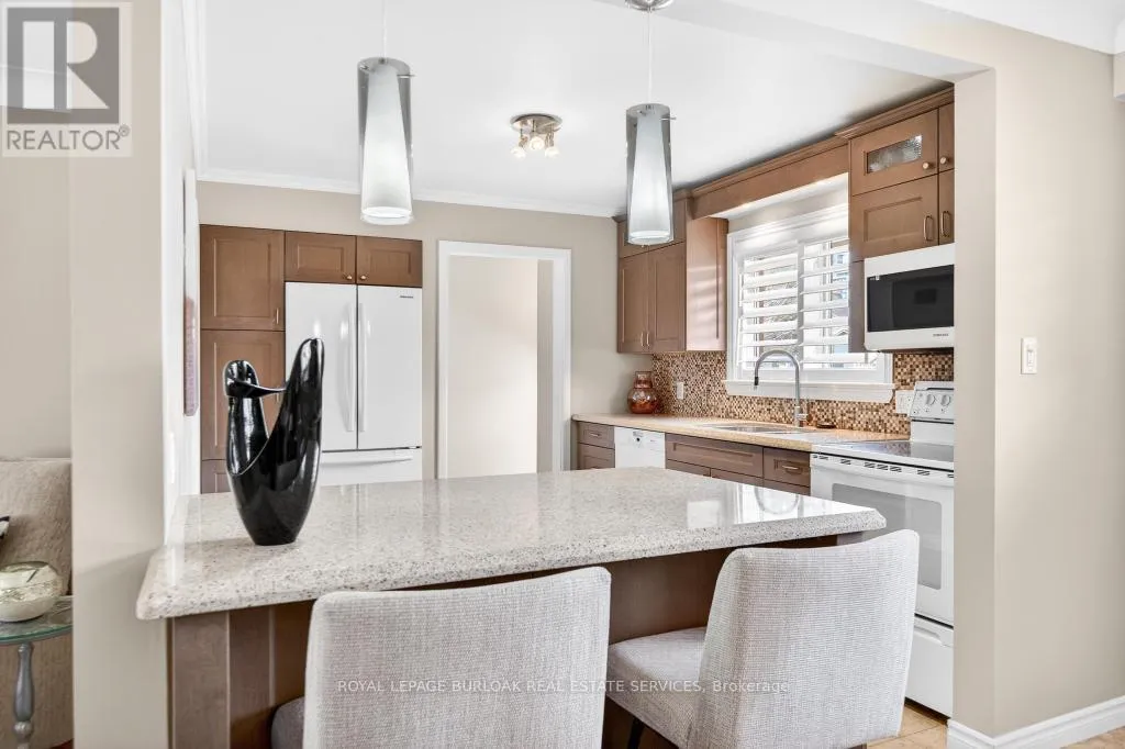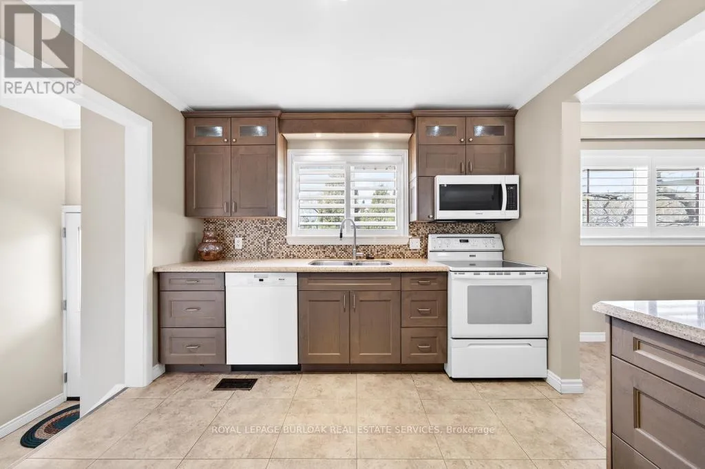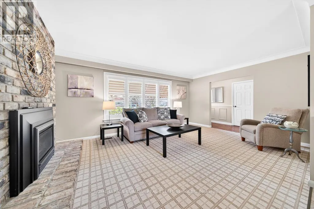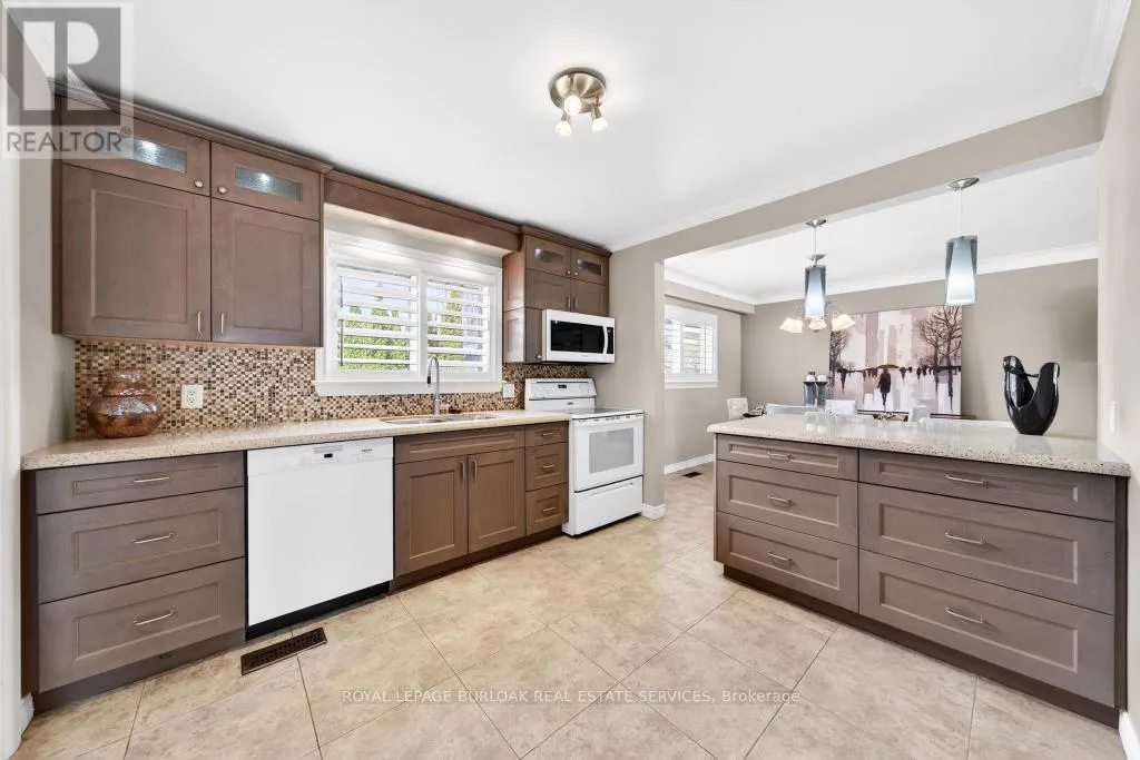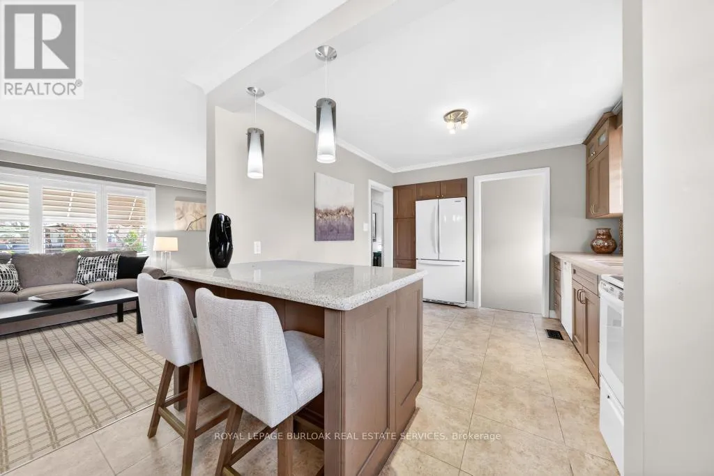 Prospect and Joyce St Solid, all-brick bungalow with a Mid Century Modern vibe in the heart of downtown Burlington, offering timeless charm with thoughtful updates throughout. This well-maintained home features 3+1 bedrooms and 2 full bathrooms, ideal for families or those seeking flexible living space. The spacious living room has character and charm with a floor-to-ceiling stone fireplace and large updated windows. The renovated custom kitchen is a standout, complete with quartz countertops and a separate dining area. A second living space is found in the lower level along with a 4th bedroom, 3 pc bath, and a huge laundry/storage/utility area to make your own. Major updates provide peace of mind, including a newer roof, washer and dryer, eavestroughs, gutter guards, irrigation system and a sump pump with weeping tile. This private and spacious corner lot is 63.64 x 144 deep, a unique gem offering tons of potential. Steps to Tom Thompson French Immersion Public School and short walk to BCHS and the Burlington Go Station - perfect for commuters and families alike. Enjoy a highly walkable lifestyle on this very quiet street with easy access to downtown shopping, community events, parks, restaurants, waterfront, shops and more. A perfect blend of character, quality, and modern convenience in a prime location. (id:27476)