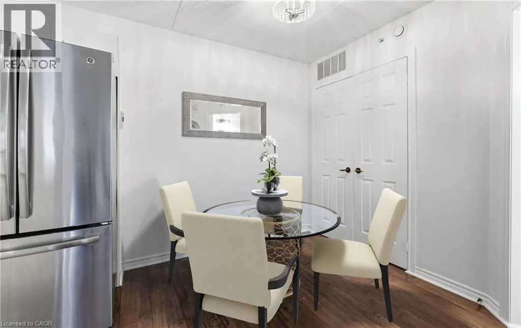 QEW to Walkers Line to Kilmer Drive Welcome to Tansley Gardens! This beautifully maintained, carpet-free 1-bedroom condo offers the perfect blend of comfort, convenience, and lifestyle. Featuring an updated kitchen with modern finishes, open-concept living and dining area, and a walk-out to your private balcony with sunny southern exposure â BBQs allowed, perfect for entertaining or relaxing outdoors. The spacious primary bedroom, ensuite laundry, owned underground parking, and locker for extra storage provide everyday ease. Located in a well-managed building with visitor parking and great amenities, all just minutes to parks, shopping, community centres, transit, and quick highway access to the QEW, 407, and GO. An excellent opportunity for first-time buyers, downsizers, or investors alike! (id:27476)