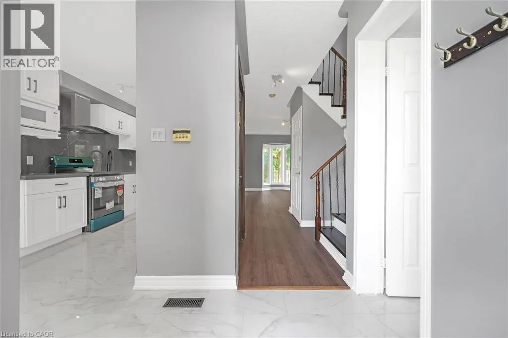 Welcome to this upgraded, move-in-ready, Bright And Renovated 3beds, 2.5 baths, End-Unit Townhouse Feels Like Detached as it is attached only by the garage; All Brick, Backing Onto Burlington's Paved Pathway. Recent upgrades include, New Fully Upgraded Kitchen With S/S Appliances, New Flooring , New Bathrooms , New Lighting. Ensuite Primary Bedroom & Two Semi Ensuite Bedroom's this unit comes with in-unit laundry & is walking distance to shops, restaurants, banks, libraries, places of worship, fitness, daycare facilities, Appleby Go-Station, QEW hwy, great schools and parks and more. 2 Parking Spots included. Backyard exclusive use for you. Basement and Garage not included. 2 Car Parking in Driveway, Backyard Exclusive Access for you. Basement and Garage Not Included. Photos are Stock Photos (id:27476)