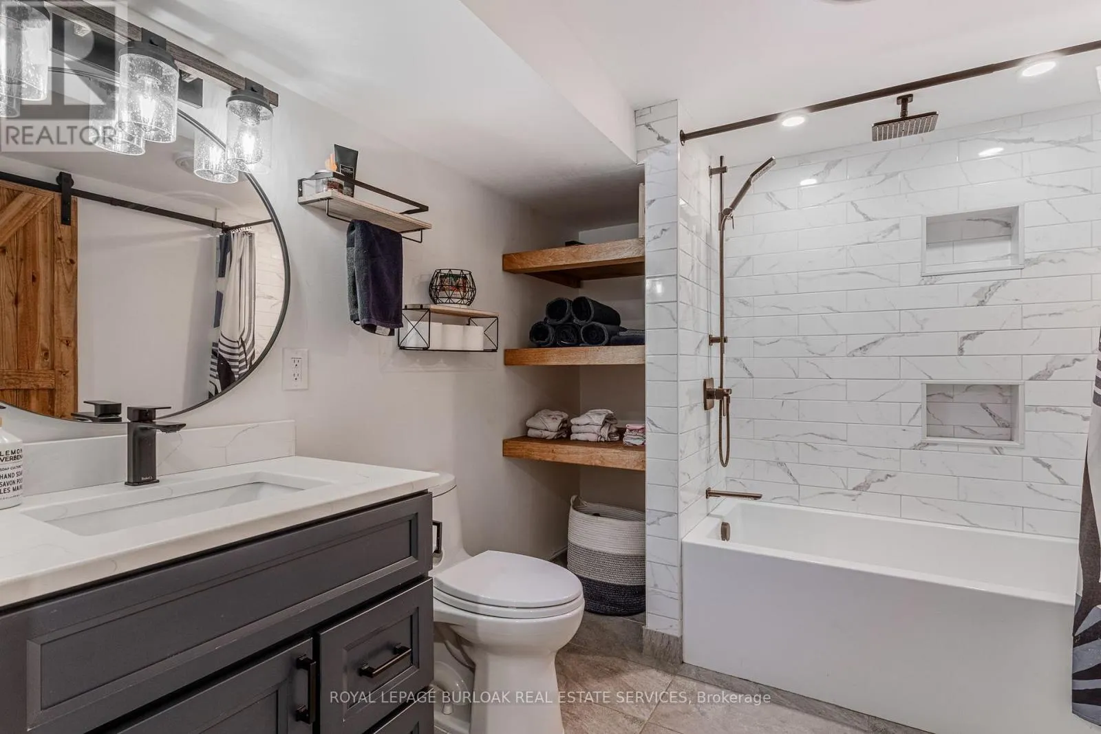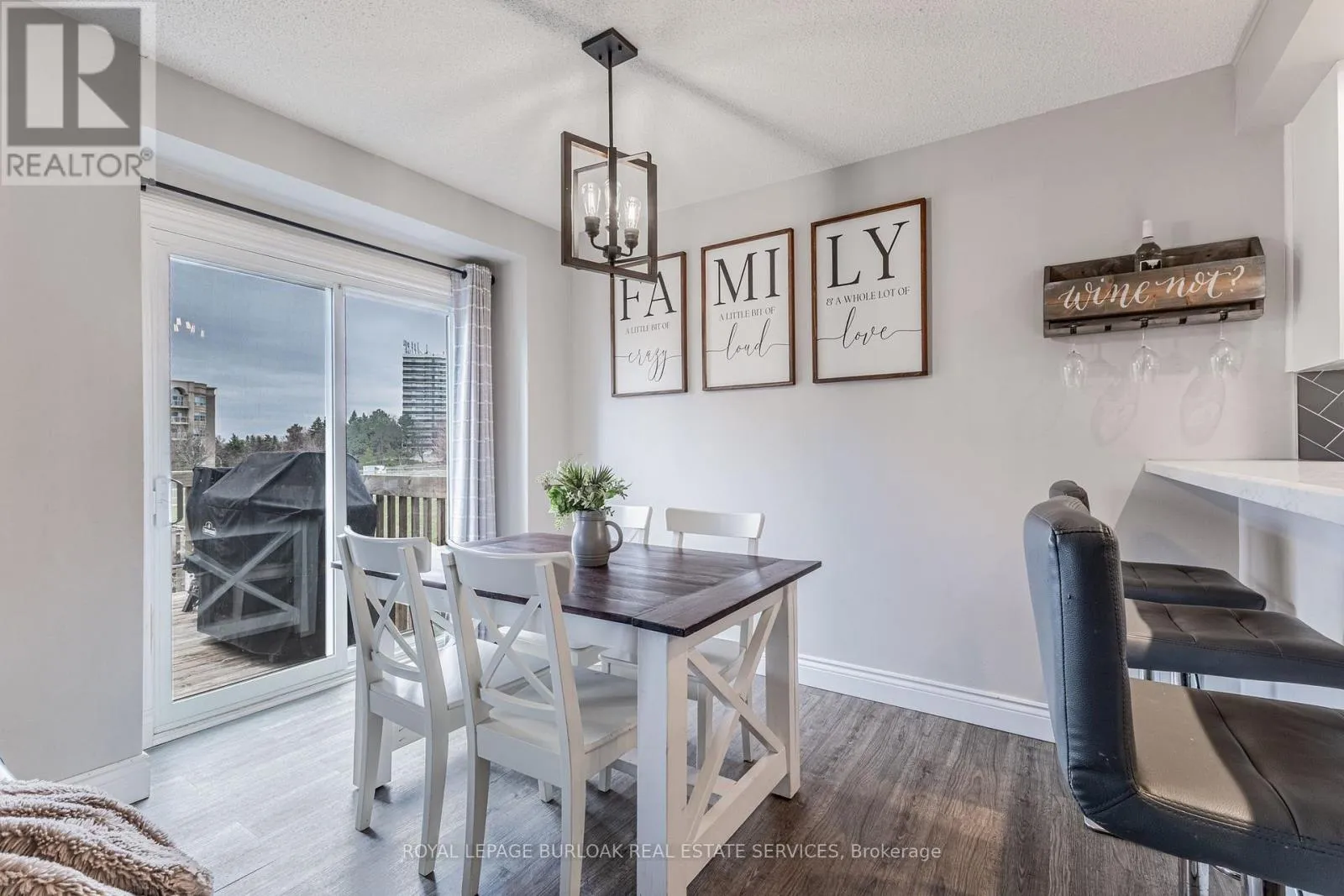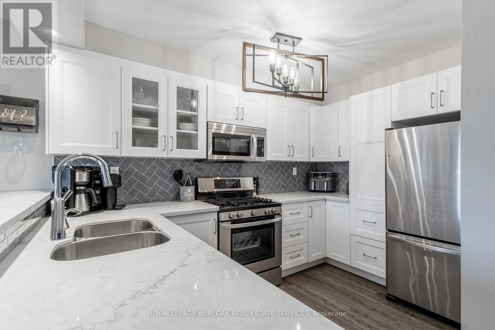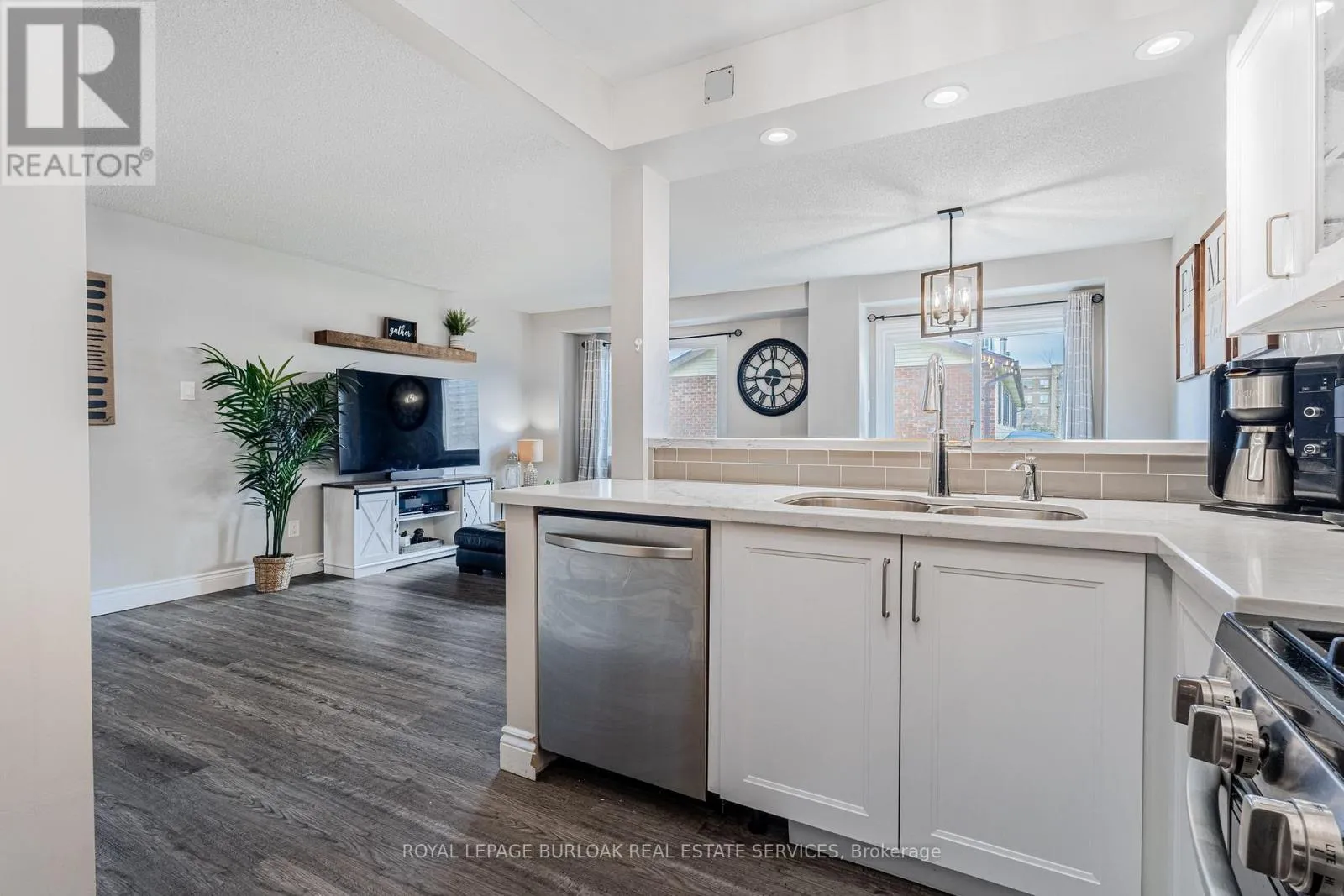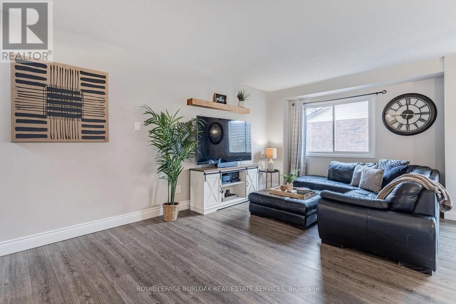 Cross Streets: Brant St. ** Directions: BRANT ST TO AMHERST HEIGHTS DRIVE TO AMHERST HEIGHTS CRT. Welcome to this fully renovated, sun-filled 2-storey townhome tucked into a quiet court. Bright, airy, and thoughtfully updated throughout, this home offers a seamless open-concept main level with spacious living and dining areas and a walkout to a private upper deck, perfect for entertaining or unwinding. Featuring 3 bedrooms and 2.5 bathrooms, including a convenient main-floor powder room, a full bath on the second level, and an additional full bath in the finished lower level. The basement expands your living space with a cozy recreation area, a wood-burning fireplace, and a walkout to a private patio and fenced yard. Every detail has been elevated with modern finishes, creating a clean, move-in ready space that feels both stylish and effortless. Complete with a single car garage, front sitting area, and ample visitor parking, all set within a family-friendly neighbourhood close to parks, schools, and everyday amenities. Turnkey. Elevated. Ready for its next chapter. (id:27476)