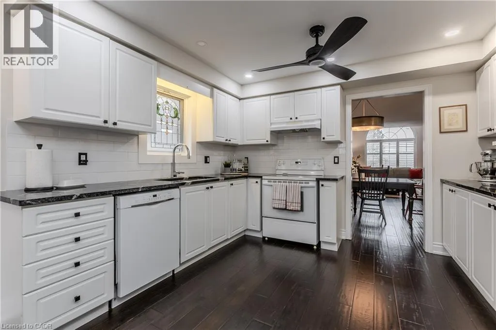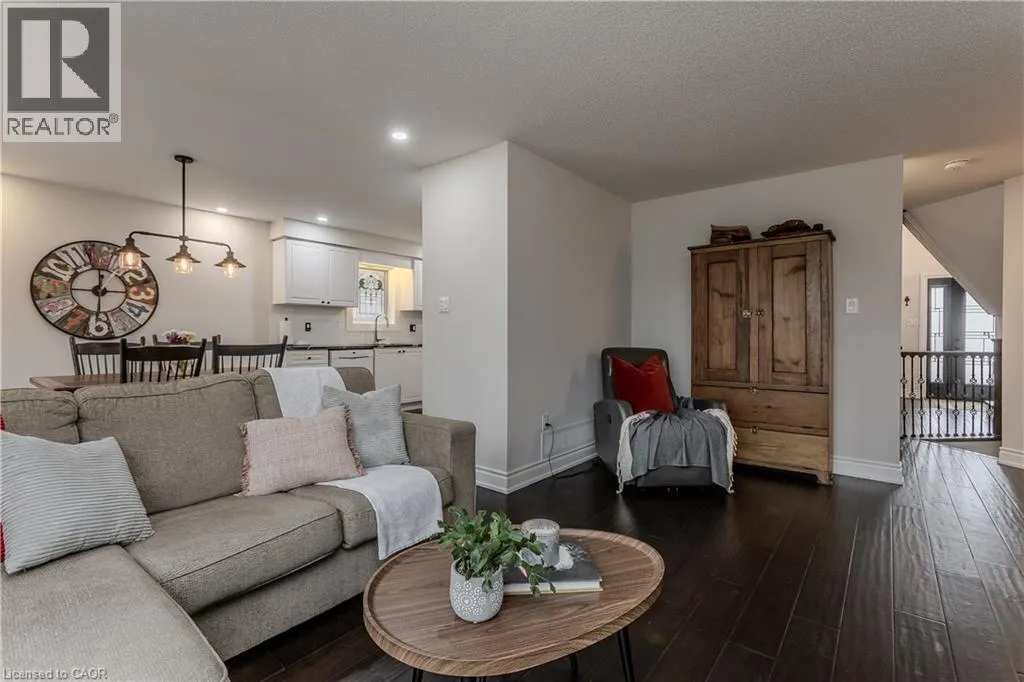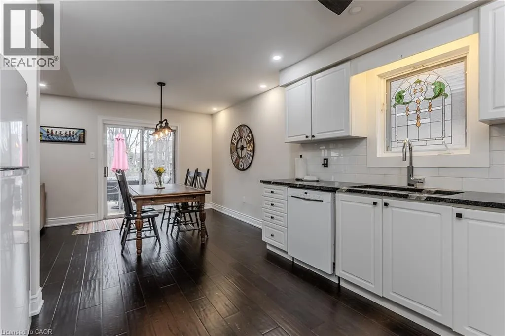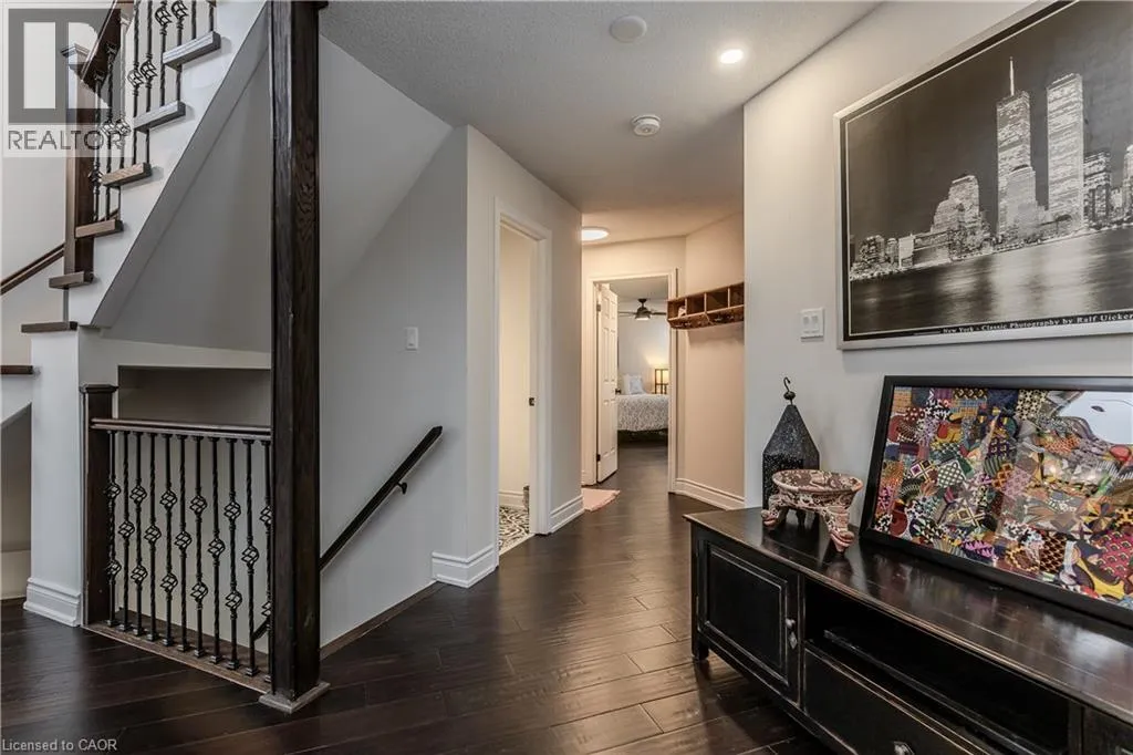 North Service to Skyview Rare find! Welcome to an exquisite bungaloft nestled in the highly sought-after Tyandaga Oaks communityâwhere refined living meets nature. Backing onto a serene ravine with amazing views, this exceptional home offers over 3000 sf of thoughtfully designed living space on a quiet, family-friendly street, just mins from all everyday amenities. From the moment you arrive, the curb appeal sets the tone, with mature trees, arbourstone retaining wall, and an interlock driveway creating an inviting first impression. Step inside to a bright, open-concept main floor where rich hardwood flooring, soaring ceilings, and California shutters elevate every space. The welcoming entry flows seamlessly into a dining area and a spectacular living room featuring a dramatic arch window, vaulted ceilings, and a cozy gas fireplace. The spacious eat-in kitchen is complete with granite countertops, a subway tile backsplash, and a charming breakfast nook with walkout to the backyard. A separate family room offers additional space to relax and unwind. The main level also features a beautifully updated powder room and an expansive primary retreat with a walk-in closet, additional closet, and a luxurious 4-piece ensuite with jetted tub and walk-in shower. Upstairs, the loft-style second level showcases hardwood throughout, a generous bedroom, and a full 4-piece bathroomâperfect for guests or growing families. The fully finished lower level is carpet-free and offers incredible versatility with a large rec room and an additional oversized flex space ideal for a home theatre, gym, or extra bedroom. Step outside to your private backyard oasis, where a dual-tiered wooden deck, hot tub, and lush green space overlook tranquil ravine viewsâan idyllic setting for entertaining or enjoying peaceful moments surrounded by nature. A rare gem that blends luxury, comfort, and natural beautyâthis is a home designed for those who appreciate lifestyle living at its finest. (id:27476)