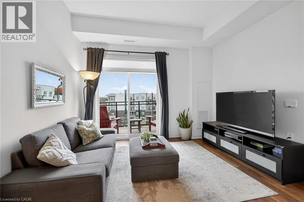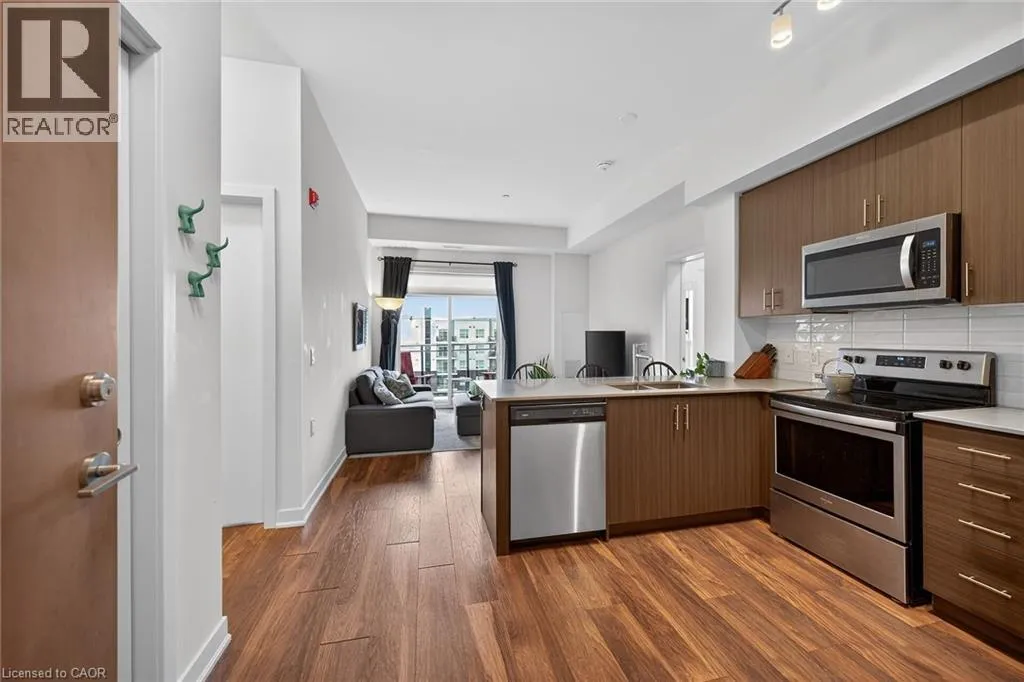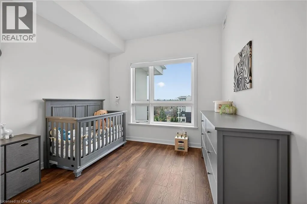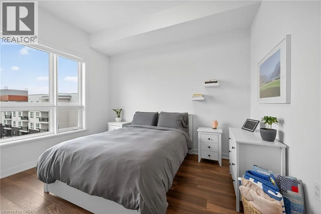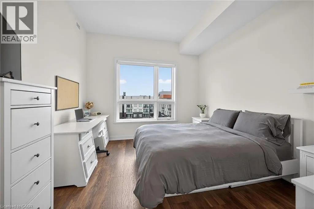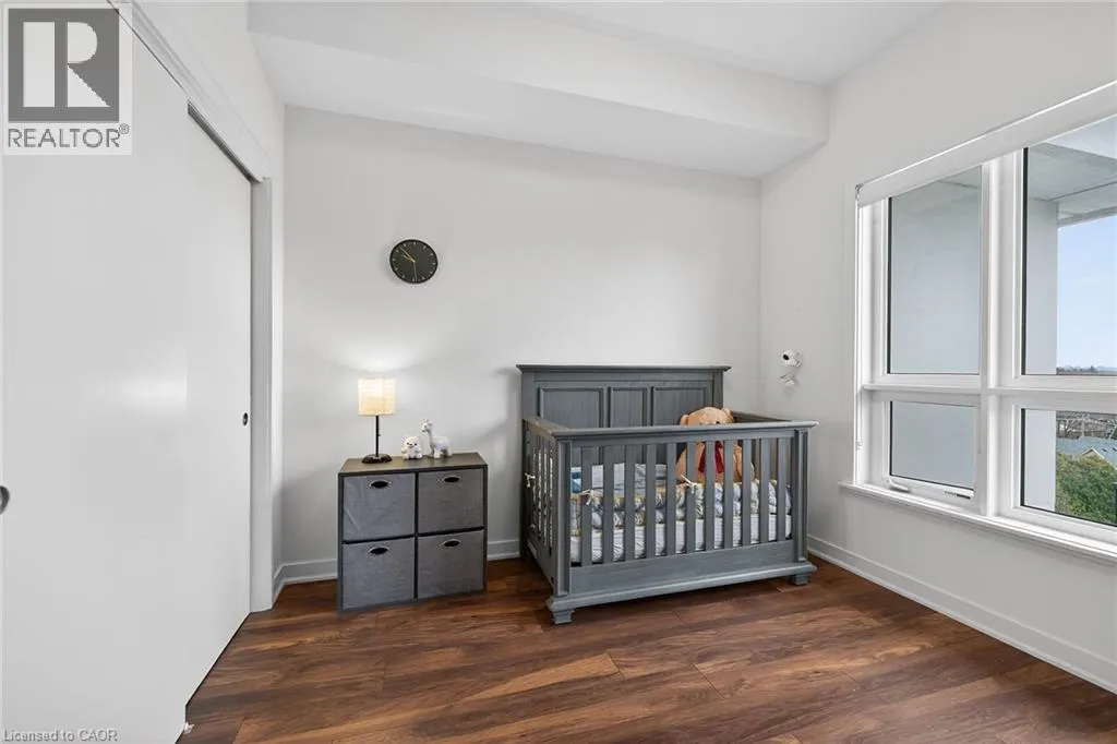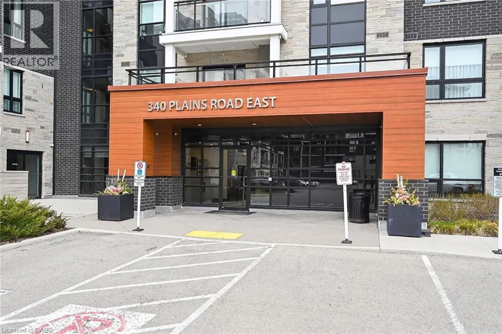 on Plains Road E. Clean, bright, & spacious 2-bedroom, 2 full bathroom, top-floor unit with west-facing, unobstructed views, set away from the hustle & bustle of Plains Rd. Offering 860sqft (just over 900sqft per builder plans), this layout matches other 2-bedroom units that have sold recently for $540,000+. The bright, open-concept design features a kitchen with peninsula overlooking the living area with patio doors leading to the private balcony. The large primary bedroom is thoughtfully positioned on one side of the living space & offers enough room for a work-from-home setup. It includes a walk-in closet & 3-piece ensuite with walk-in shower. On the opposite side, the second bedroom is across from a full 4-piece bathroom. Additional features include large coat closet, a stackable washer/dryer in a separate closet, one owned parking space & locker. A second parking spot can be rented, with potential to purchase. Residents enjoy excellent building amenities, including ample visitor parking, two EV chargers, a rooftop patio with BBQs & lounge areas, a pet relief area, two gyms & two party rooms (one in each building). Located in a highly walkable area close to parks, the marina, tennis courts, schools, shops & restaurants. Just minutes to Aldershot GO Station, HWY 403, & the QEW. (id:27476)