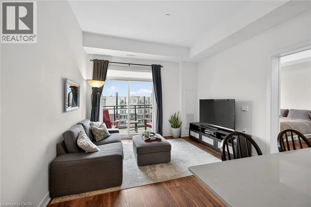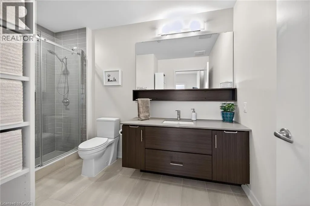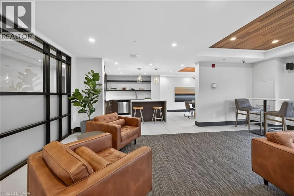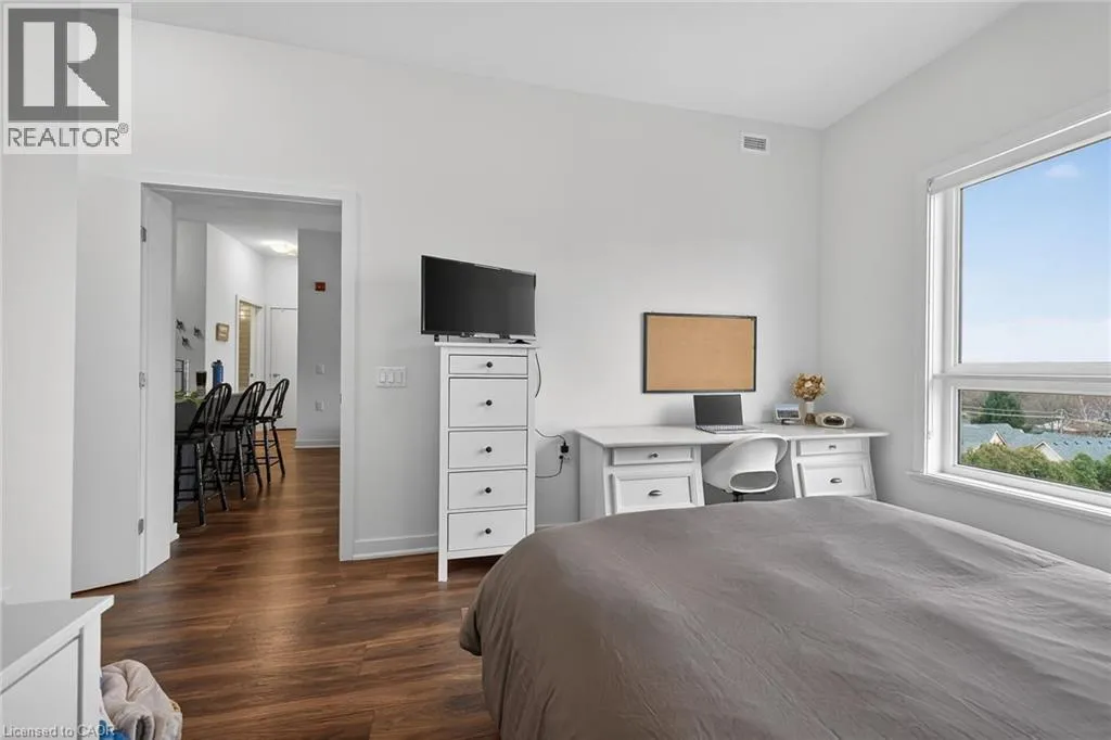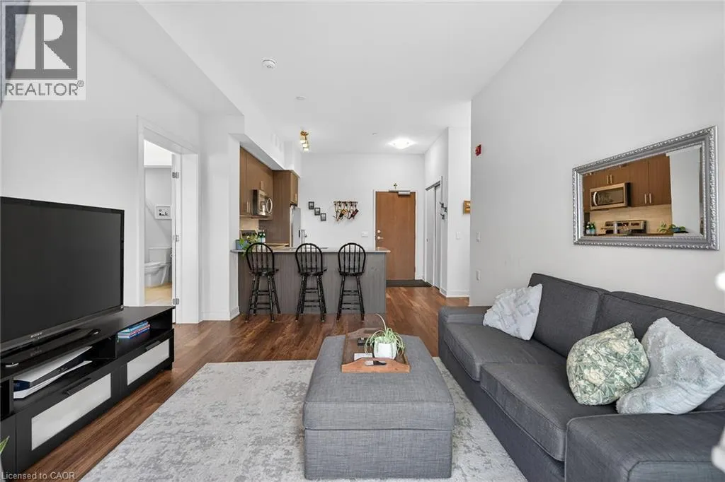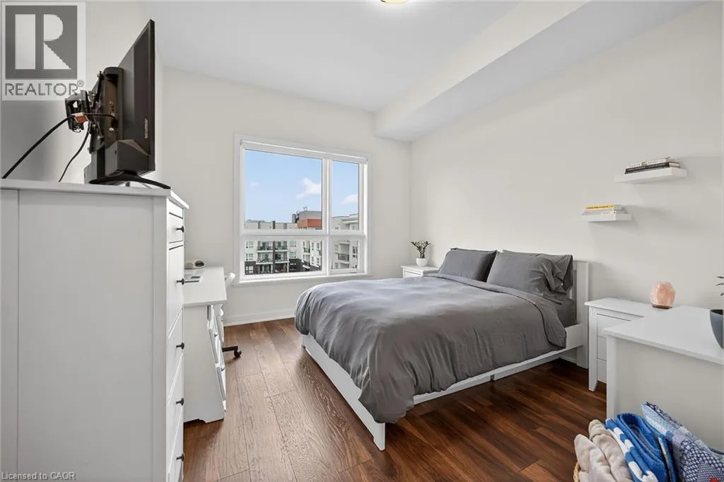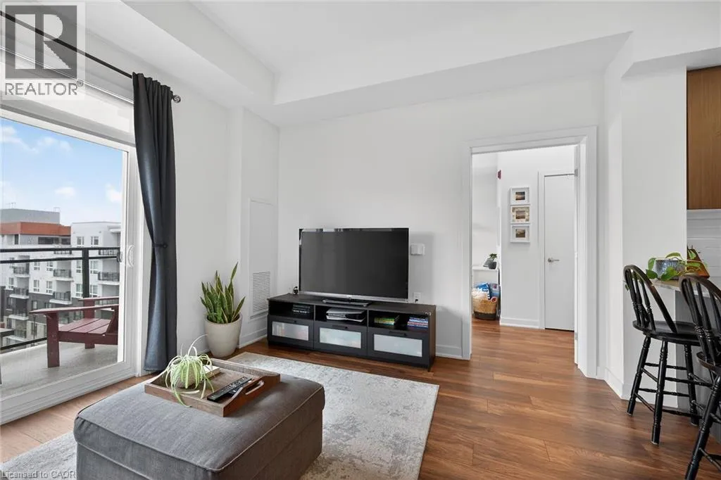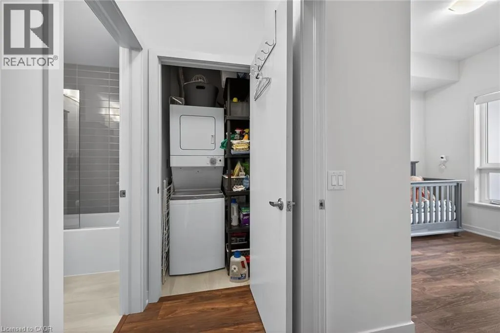 on Plains Road E. Clean, bright, & spacious 2-bedroom, 2 full bathroom, top-floor unit with west-facing, unobstructed views, set away from the hustle & bustle of Plains Rd. Offering 860sqft (just over 900sqft per builder plans), this layout matches other 2-bedroom units that have sold recently for $540,000+. The bright, open-concept design features a kitchen with peninsula overlooking the living area with patio doors leading to the private balcony. The large primary bedroom is thoughtfully positioned on one side of the living space & offers enough room for a work-from-home setup. It includes a walk-in closet & 3-piece ensuite with walk-in shower. On the opposite side, the second bedroom is across from a full 4-piece bathroom. Additional features include large coat closet, a stackable washer/dryer in a separate closet, one owned parking space & locker. A second parking spot can be rented, with potential to purchase. Residents enjoy excellent building amenities, including ample visitor parking, two EV chargers, a rooftop patio with BBQs & lounge areas, a pet relief area, two gyms & two party rooms (one in each building). Located in a highly walkable area close to parks, the marina, tennis courts, schools, shops & restaurants. Just minutes to Aldershot GO Station, HWY 403, & the QEW. (id:27476)