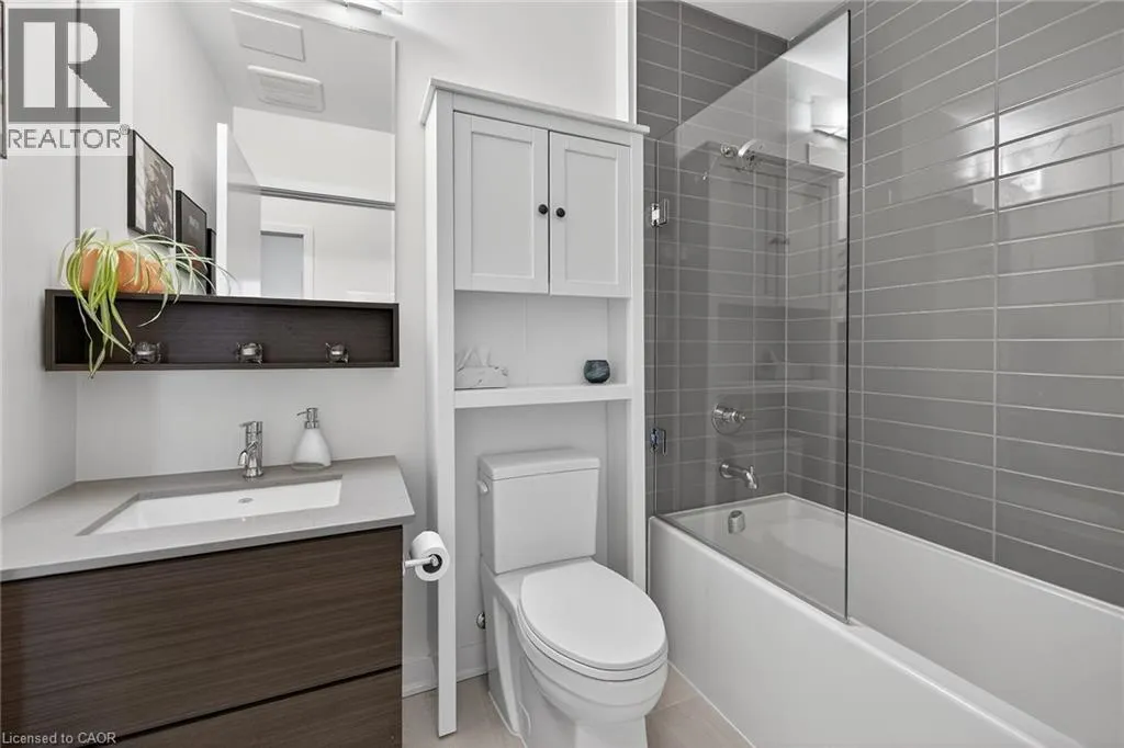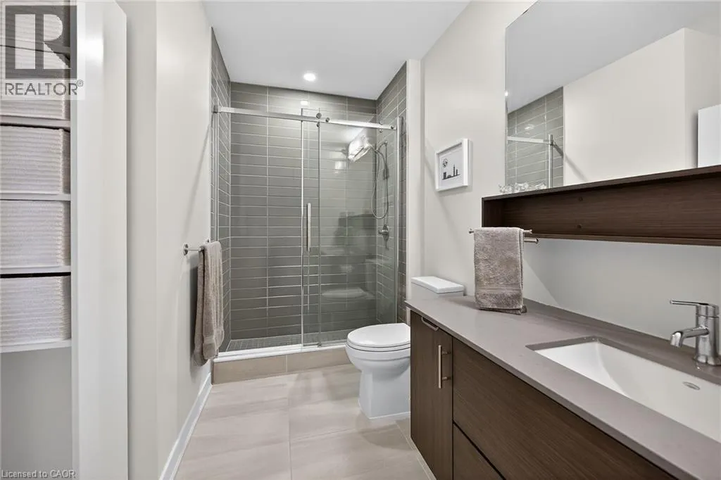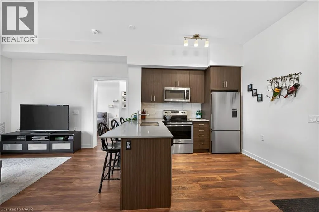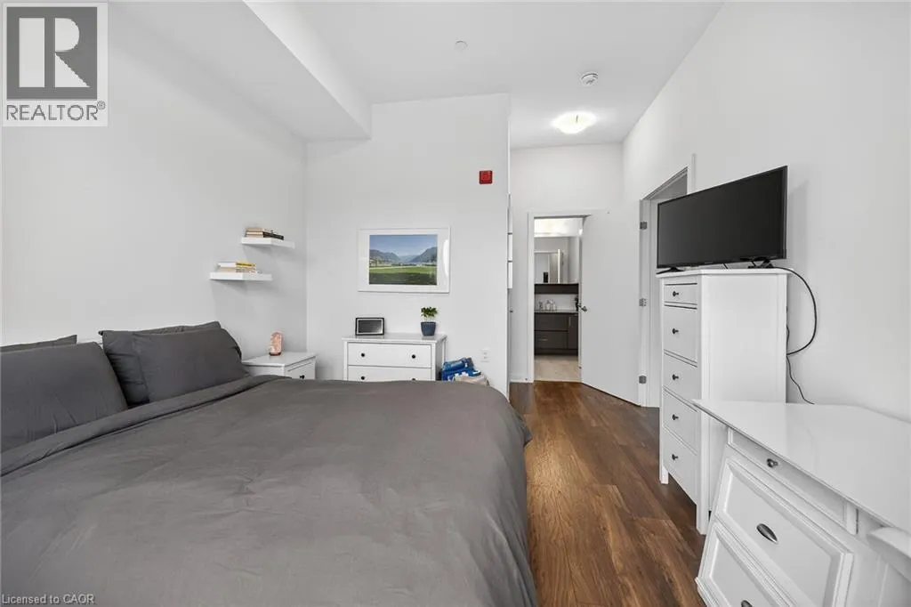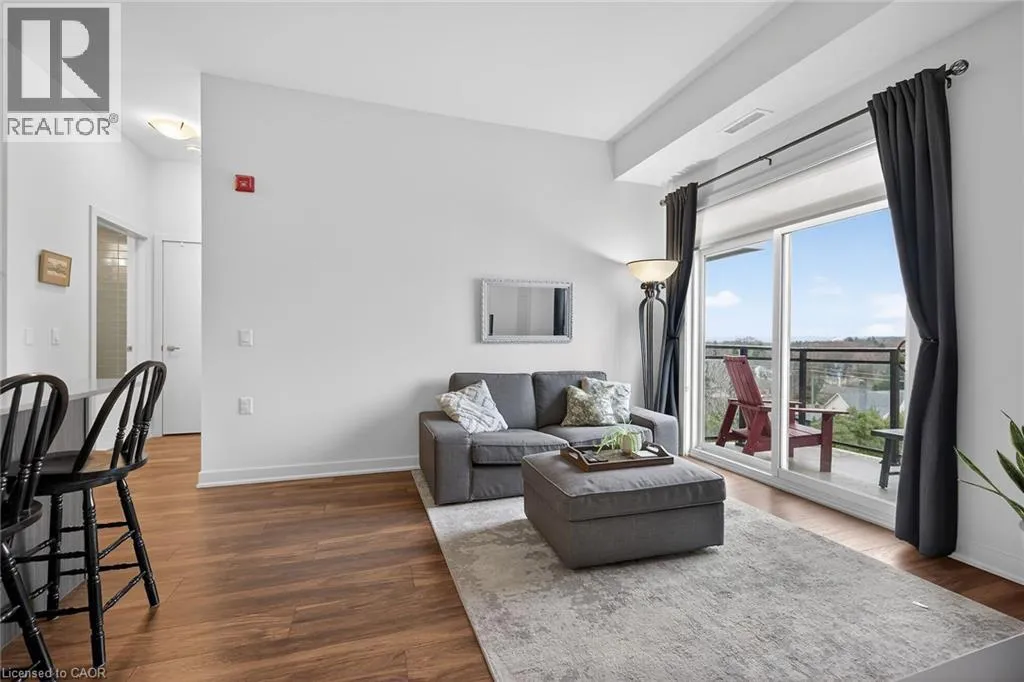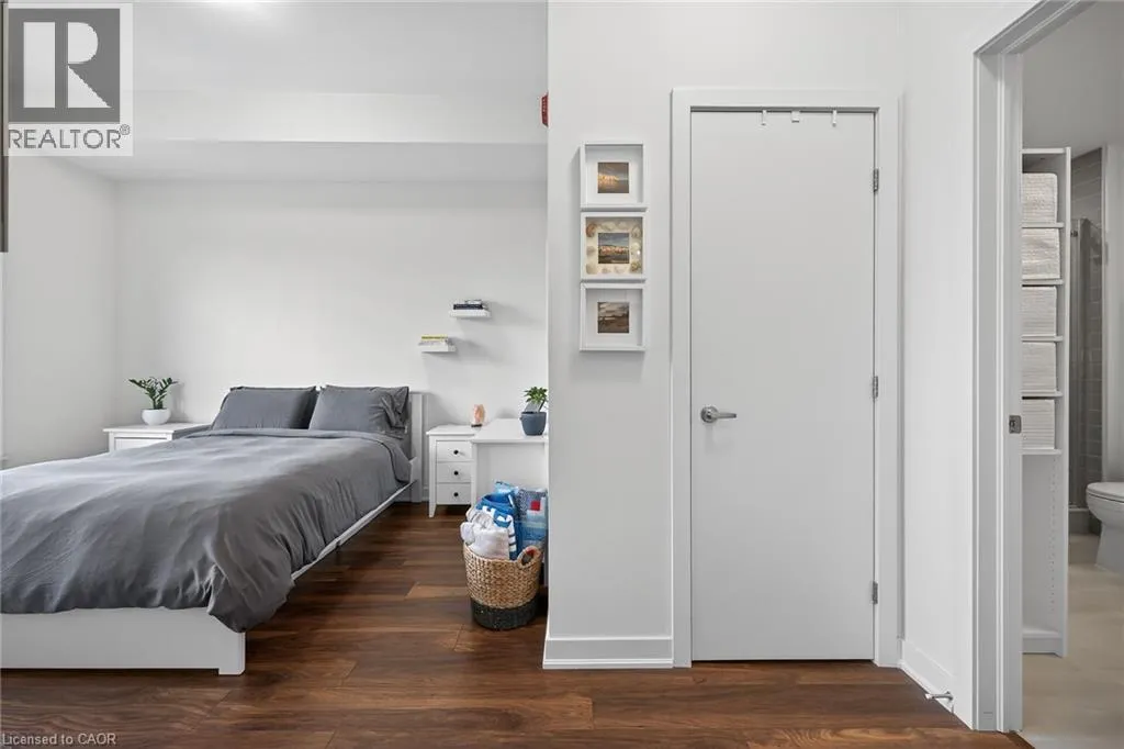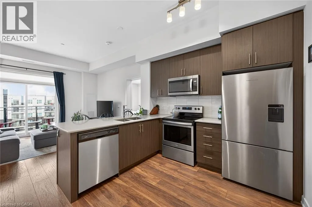 on Plains Road E. Clean, bright, & spacious 2-bedroom, 2 full bathroom, top-floor unit with west-facing, unobstructed views, set away from the hustle & bustle of Plains Rd. Offering 860sqft (just over 900sqft per builder plans), this layout matches other 2-bedroom units that have sold recently for $540,000+. The bright, open-concept design features a kitchen with peninsula overlooking the living area with patio doors leading to the private balcony. The large primary bedroom is thoughtfully positioned on one side of the living space & offers enough room for a work-from-home setup. It includes a walk-in closet & 3-piece ensuite with walk-in shower. On the opposite side, the second bedroom is across from a full 4-piece bathroom. Additional features include large coat closet, a stackable washer/dryer in a separate closet, one owned parking space & locker. A second parking spot can be rented, with potential to purchase. Residents enjoy excellent building amenities, including ample visitor parking, two EV chargers, a rooftop patio with BBQs & lounge areas, a pet relief area, two gyms & two party rooms (one in each building). Located in a highly walkable area close to parks, the marina, tennis courts, schools, shops & restaurants. Just minutes to Aldershot GO Station, HWY 403, & the QEW. (id:27476)