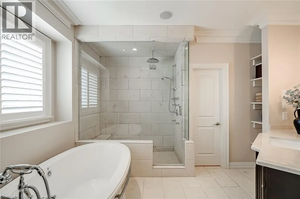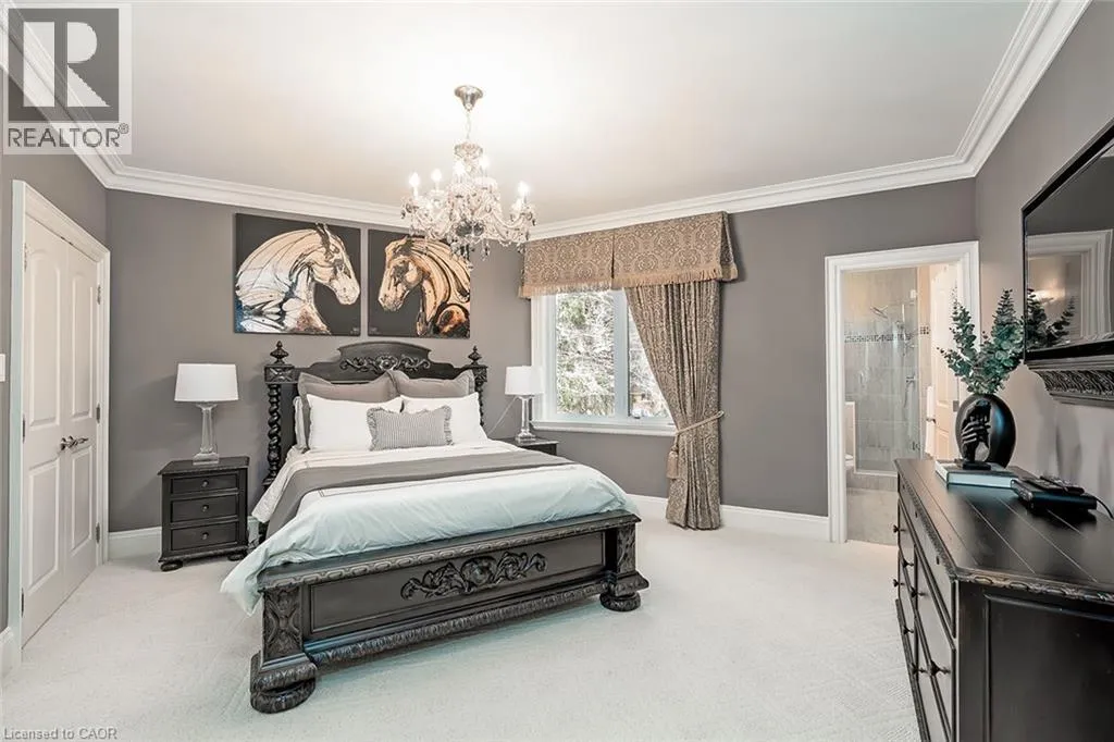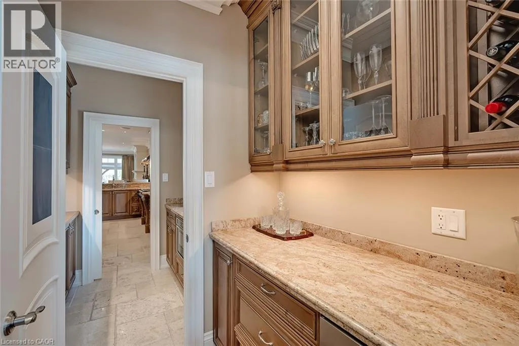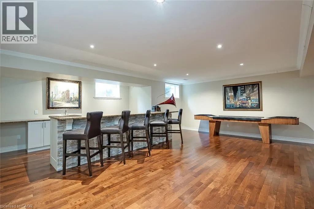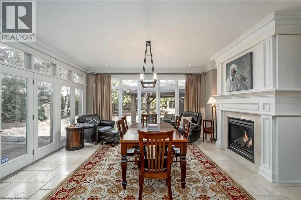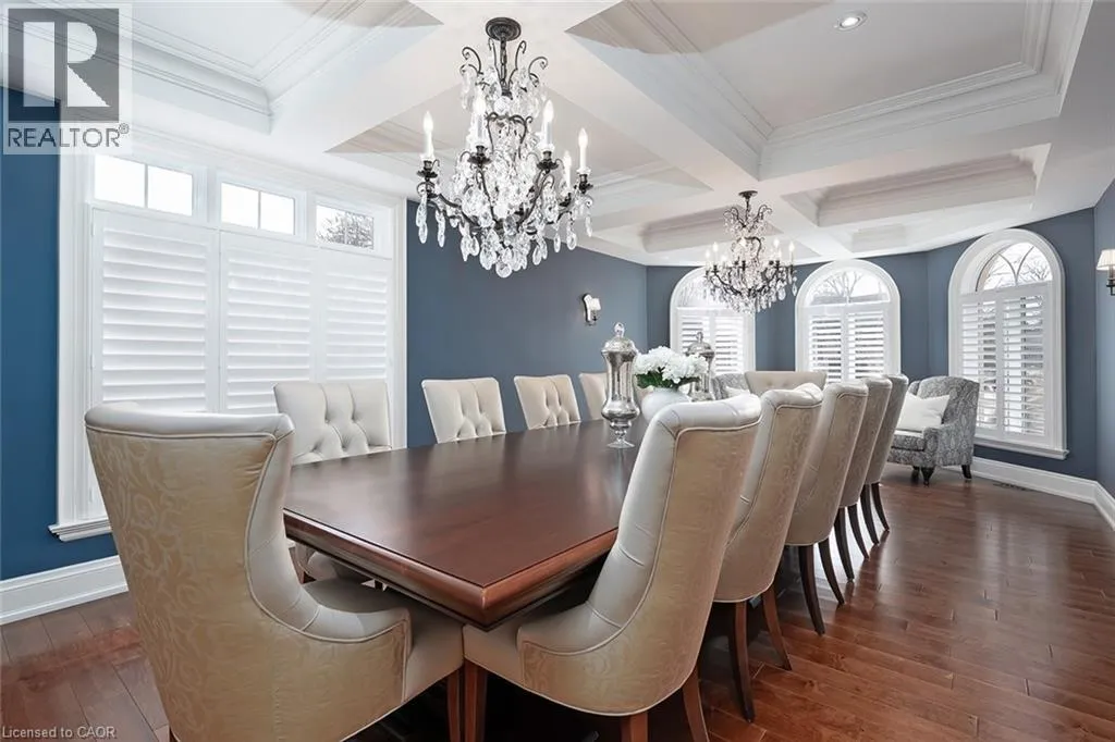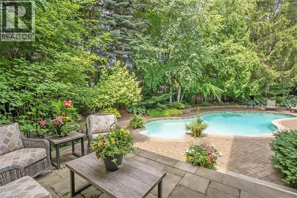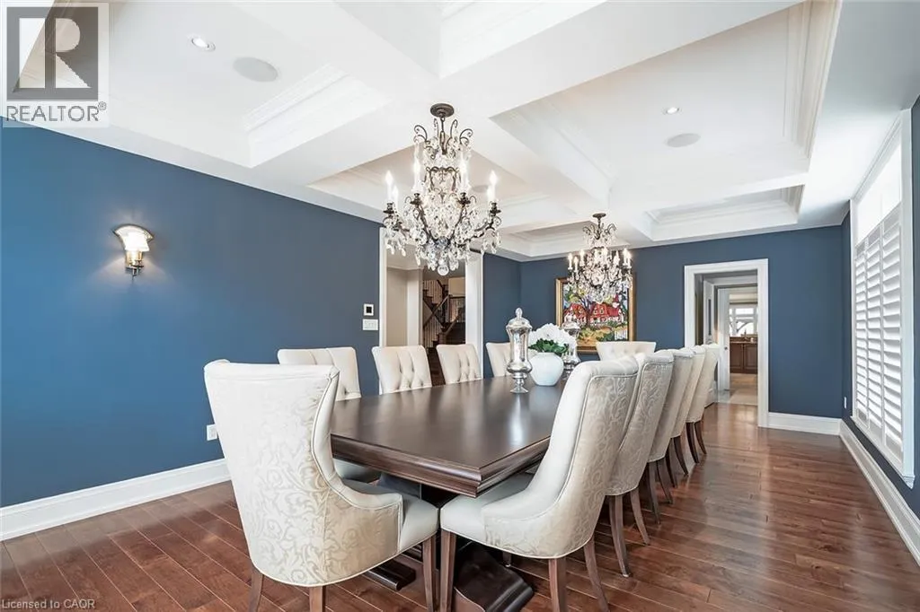 Located in the heart of Burlingtonâs highly sought-after Roseland community, this stunning 6110 square foot, 7+1 bedroom, 6.5 bath home offers exceptional space and luxury for family living. A grand exterior leads into a spacious interior highlighted by a dramatic two-storey entrance and family room, coffered ceilings in the formal living and dining rooms, and a fully finished lower level complete with a recreation room, wet bar, and games area. Designed with both comfort and functionality in mind, the home features an ensuite or ensuite privilege for every bedroom, a dedicated office, and a convenient main-floor bedroom. The show-stopping kitchen is truly the heart of the home, boasting custom cabinetry, granite countertops, a butlerâs pantry, breakfast bar, fireplace, and walkout to the backyard perfect for everyday living and entertaining alike. The primary retreat offers a peaceful escape with cathedral ceilings, his-and-hers closets and a luxurious five-piece ensuite featuring a freestanding jetted tub and double vanities. Equally impressive outdoors, the fully fenced backyard is designed for resort-style enjoyment with an in-ground pool, stone patio, and gazebo, ideal for hosting and family time. Additional premium features include stone countertops throughout, hardwood and stone flooring, high ceilings, plaster moulding on the main and second levels, built-in speakers and dimmers, custom drapery, and a three-car garage equipped with a Tesla charging station. This exceptional Roseland home with 9260 square feet of living space combines elegance and thoughtful design and is an outstanding place to call home and raise a family. (id:27476)