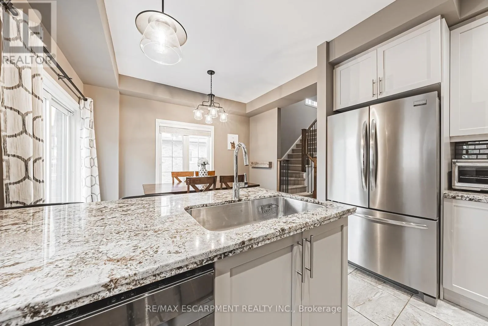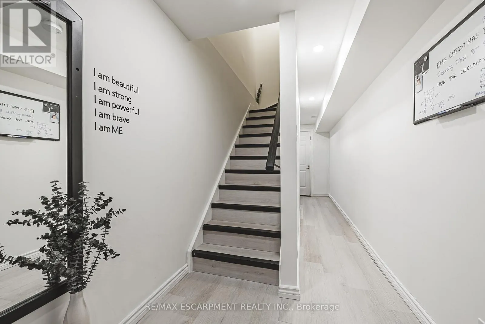 PLAINS RD E TO BRENDA CRES TO QUEENSWAY DR Welcome to 2220 Queensway Drive # 4. This exceptional end-unit townhome is sure to impress! Boasting over 2200 square feet of living space with 3 bedrooms, 2.5 bathrooms and a finished basement. Enter the lower level with a spacious foyer, bonus rec room and inside entry to garage. There is also an extra mud room with entrance to the beautifully landscaped fenced-in yard and updated stone patio. The main level showcases open concept living room and dining room, complimented by gorgeous barn-wood feature wall and upgraded 9 foot ceilings. There is also a 2-piece bathroom and conveniently located laundry room. The fully upgraded eat-in kitchen has stainless steel appliances, quartz countertops and giant slider out to an open balcony - perfect place for BBQing or enjoying your morning coffee. The upper level includes 3 spacious bedrooms, 4-piece bathroom and lots of closet space. The generously sized primary suite has his and hers custom closets and a 4-piece ensuite with double sink vanity and tiled shower. Basement is fully finished as well for an extra living space or home gym. The entire home presents recently upgraded engineered hardwood throughout. The end unit allows extra windows to let in a ton of natural light, and one of the largest yards in the complex. Nest thermostat, natural gas hook-up for BBQ, extraordinary gardens, side gate entrance, and the list goes on! This location is absolutely perfect - walk to the Burlington GO, amenities, green space and has super easy access to the QEW and 407. Only minutes to the downtown core waterfront. Book your showing today and LETS GET MOVING! (id:27476)
