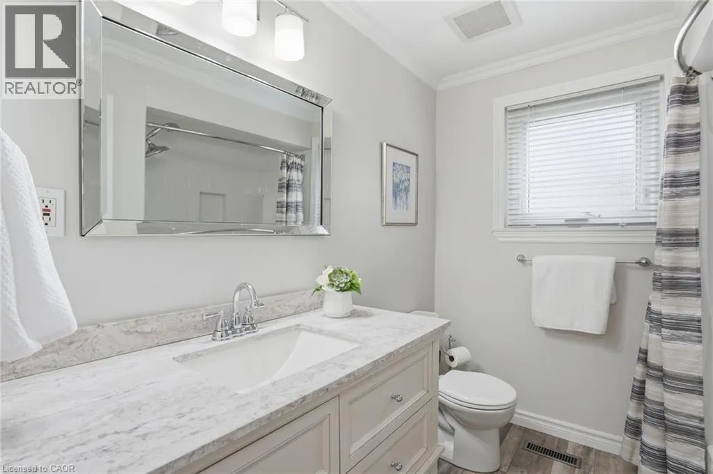 Burloak Dr to Spruce Ave to Erindale Dr Welcome to a home that truly stands out for both its setting and its functionality, backing directly onto a peaceful creek and tucked into a fantastic family friendly neighbourhood. This rare natural backdrop creates a private and serene outdoor experience that is hard to find and even harder to replace. The main level offers a bright and inviting layout with brand new hardwood flooring and fresh paint throughout. Three bedrooms and an updated main bathroom provide comfortable everyday living, while the unique design of this back split sets it apart. Two separate staircases lead to the lower level, one from the main living area and front entrance and the other conveniently located off the kitchen near the backyard door, offering flexibility for family living or entertaining. The lower level features a warm and welcoming recreation room complete with a WETT certified wood burning fireplace, perfect for relaxing evenings. A convenient two-piece bathroom and a large crawl space provide excellent additional storage options. Step outside and you will find a backyard that truly shines. Backing onto the creek, it offers a peaceful retreat with a connection to nature right at your doorstep. The heated workshop adds incredible versatility, ideal for a craftsperson, hobbyist, extra storage, or even a creative play space. Additional highlights include updated windows, a furnace that is four years old, new siding 10 years ago, a carport for covered parking, and a double wide driveway with space for two more vehicles. This is a home that blends comfort, character, and a setting that is simply exceptional. Donât be TOO LATE*! *REG TM. RSA. (id:27476)