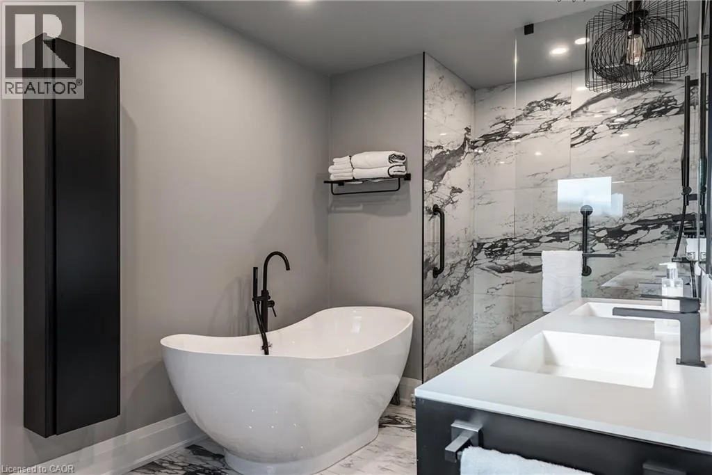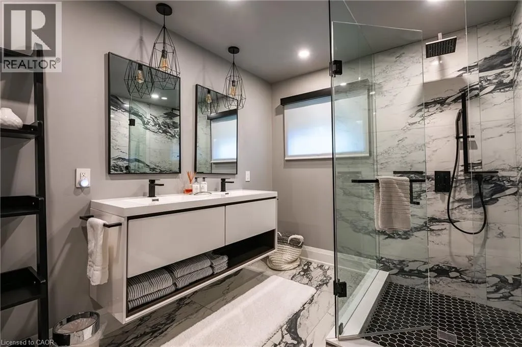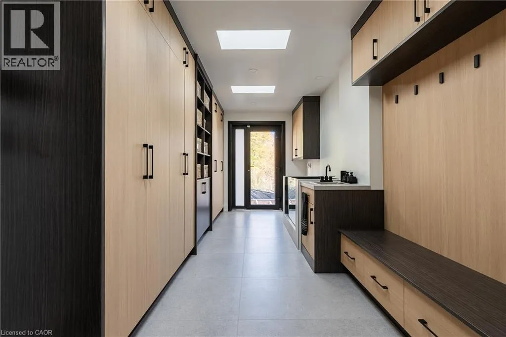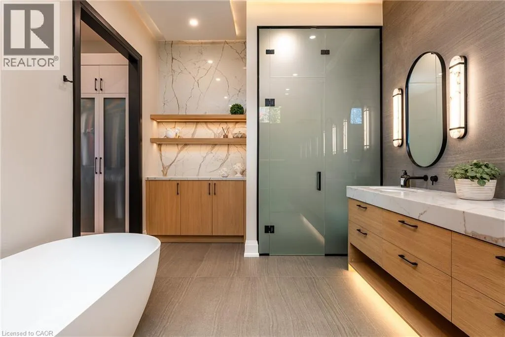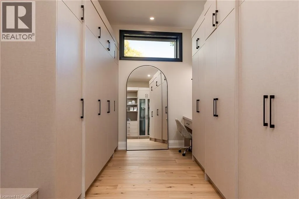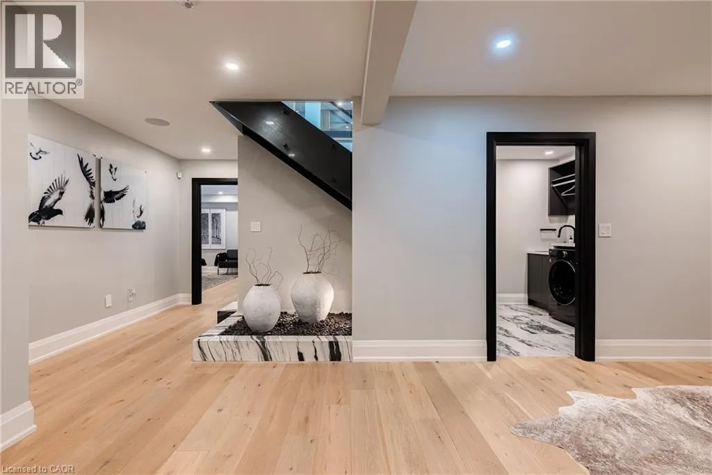 Lakeshore/Edgecliffe Natural serenity meets modern design at 121 Edgecliffe Place. Set on a rare 29,000 sq. ft. pie-shaped lakefront lot where Appleby Creek meets Lake Ontario, this exceptional property offers 105 feet of direct waterfront and 130 feet along the creek with riparian rights, creating an irreplaceable natural setting in the city. This fully renovated home offers over 5,200 sq. ft. of finished living space with floor-to-ceiling windows that draw the lake and landscape into every room. The open-concept main level features 12-foot peaked ceilings, engineered light hardwood, and dark-framed windows that frame panoramic southern views. A chefâs kitchen anchors the space with a large island and top-tier appliances, ideal for entertaining. The walkout lower level accommodates four bedrooms, each with its own ensuite and ductless air conditioning unit. The primary suite opens directly to the lakeside deck, featuring a spa-inspired ensuite with dual rain showers and a massive walk-in closet with custom cabinetry. Radiant in-floor heating extends throughout the home for year-round comfort. Multiple outdoor living spaces blur the line between indoors and out. A covered lower deck and expansive upper terrace with built-in BBQ maximize lakefront enjoyment and capture the homeâs stunning setting. Modern. Peaceful. One of a kind on the water. (id:27476)