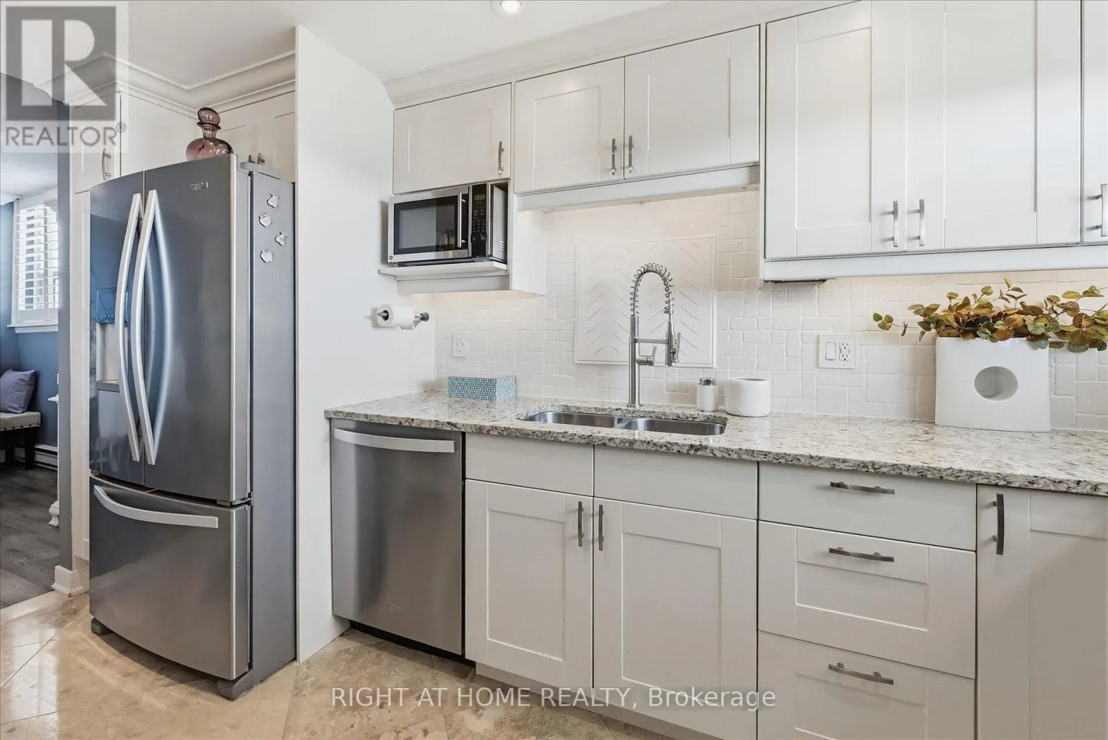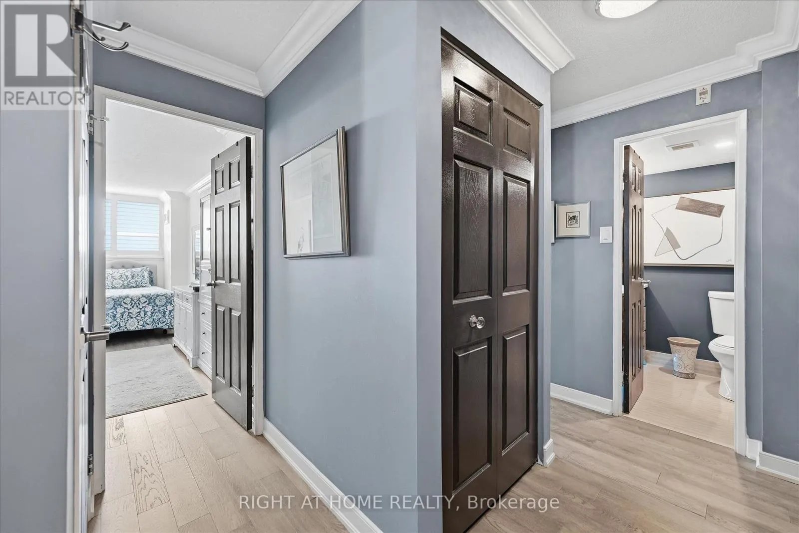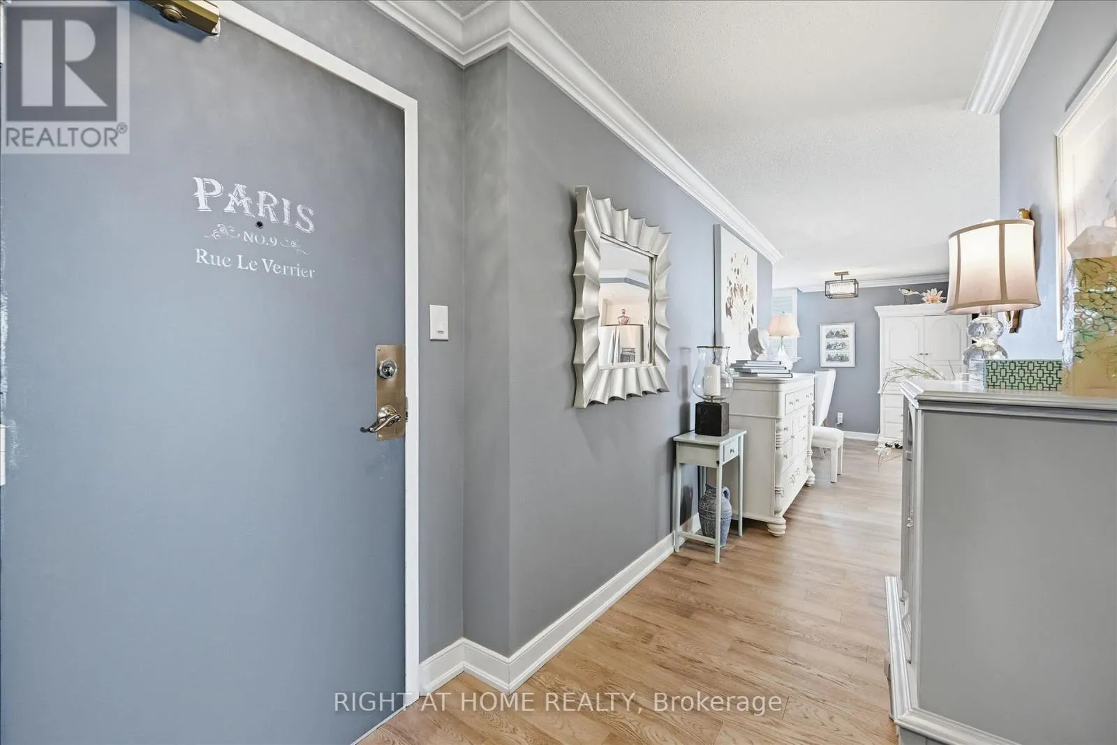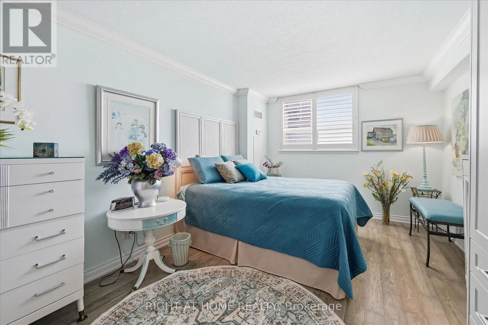 Cross Streets: Brant/Ghent. ** Directions: Brant, east on Ghent. Bright & Stylish 2-Bed, 2-Bath Condo in Prime Downtown Location. Step into modern comfort and timeless elegance with this beautifully updated 2-bedroom, 2-bathroom condo, perfectly situated within walking distance to downtown and the waterfront. Designed with both style and functionality in mind, this condo features: Inviting Interiors, Engineered hardwood floors, crown molding, California shutters, and solid core doors create a sophisticated and welcoming atmosphere. The open updated, spacious, chic kitchen complete with a pantry armoire, perfect for organizing your culinary essentials, and modern appliances. This gorgeous unit also has an abundance of built-in storage areas unlike many other condo units. The open balcony is ideal for morning coffee or evening relaxation, offering a seamless indoor-outdoor lifestyle. Convenience meets comfort with an In-unit 2-in-1 laundry, air conditioning, and underground parking adding unmatched convenience to daily living. The all-Inclusive Condo Fees include heat, hydro, water, high-speed internet & cable (a $250 value !), and parking, simplifying your lifestyle and keeping costs predictable. Whether you're entertaining guests, enjoying a quiet evening at home, or exploring the vibrant nearby downtown and waterfront, this condo delivers the ultimate blend of location, comfort, and modern upgrades. (id:27476)