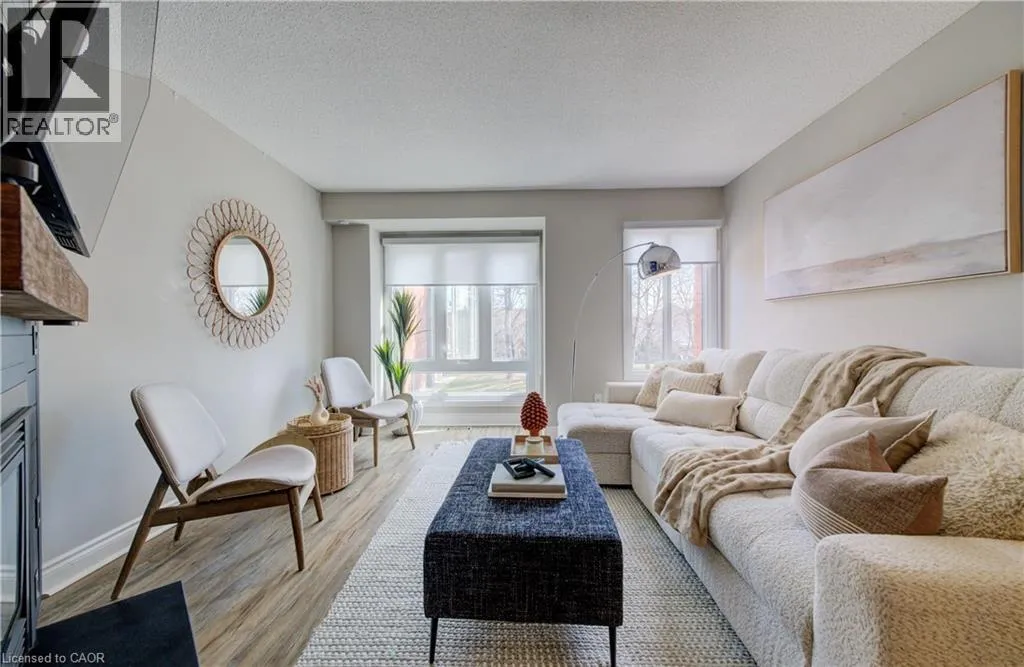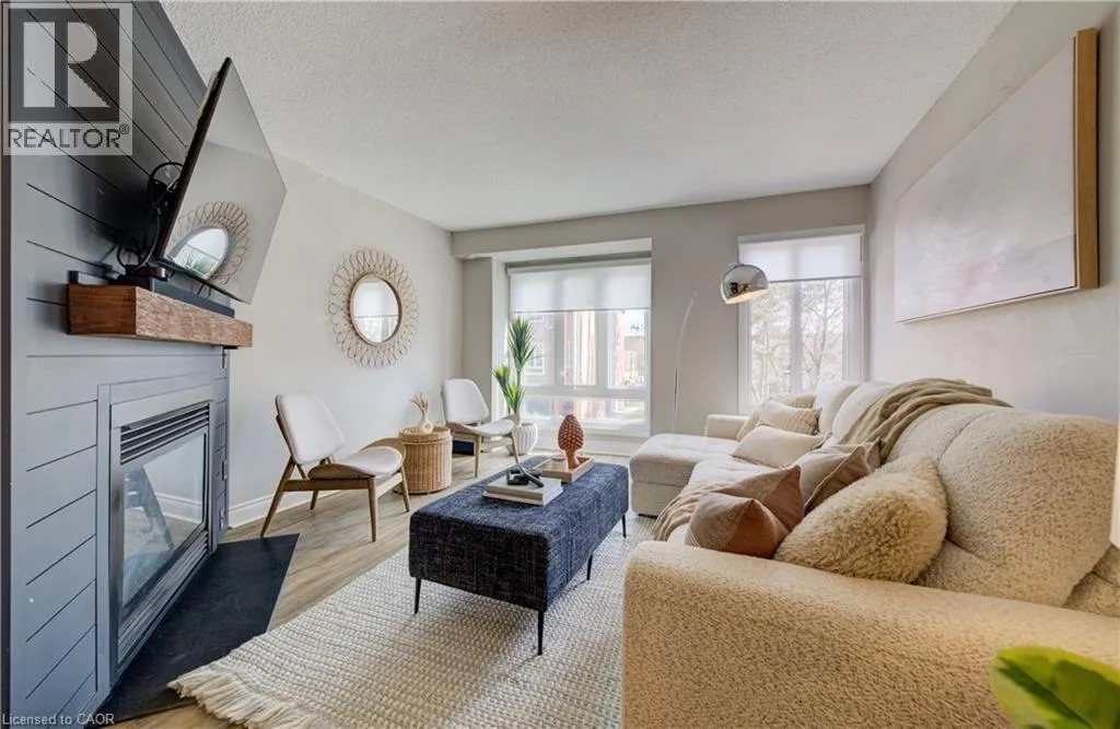 Fairview Street to Maple Ave to Thorpe Road - Tucked quietly at the back of The Brownstones, this executive townhome offers the perfect blend of privacy, function, and location â with 1,446 sq ft of total living space designed to fit your lifestyle. Step inside from your own private driveway and garage into a thoughtfully designed entry level featuring a powder room, laundry, and a versatile flex space - ideal as a home office, guest room, or third bedroom. Upstairs, the main living area is warm and inviting with an open-concept layout, anchored by a cozy gas fireplace and feature wall - the kind of space that just feels good to be in. The updated kitchen is both functional and stylish, with easy access to a bright rear patio for morning coffee or relaxed evenings. The upper level offers two generous bedrooms and a beautifully renovated 5-piece bathroom with double sinks. All of this in one of Burlingtonâs most convenient locations - just steps to shopping, groceries, and everyday essentials, with easy access to downtown Burlington, the GO Train, and major highways, and within walking distance to great schools. A home that truly fits your life - whether youâre starting out, simplifying, or somewhere in between. (id:27476)