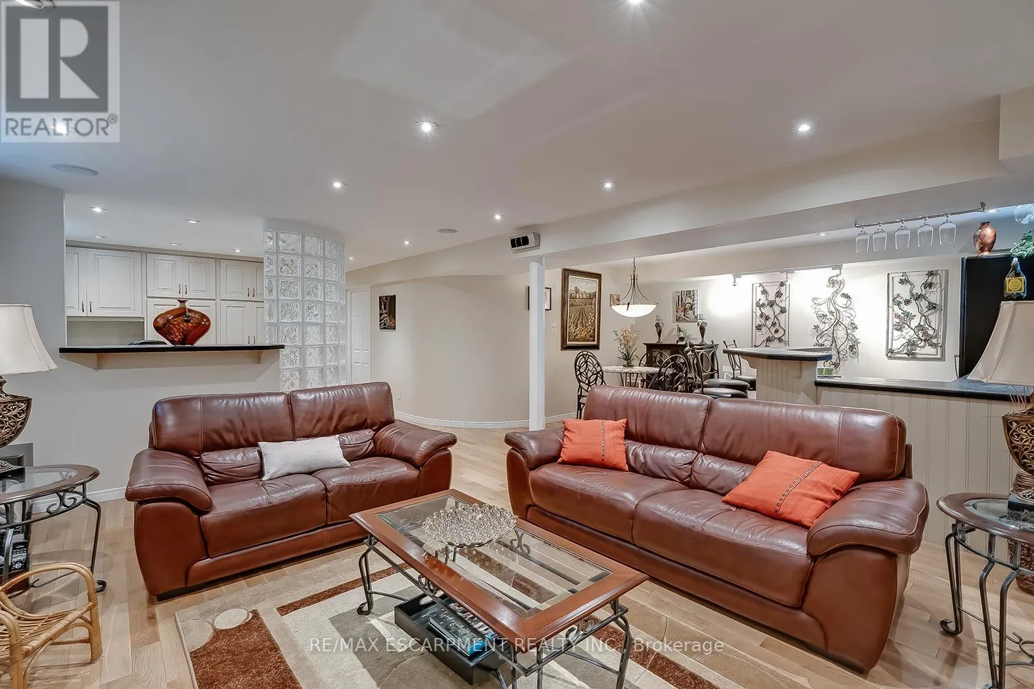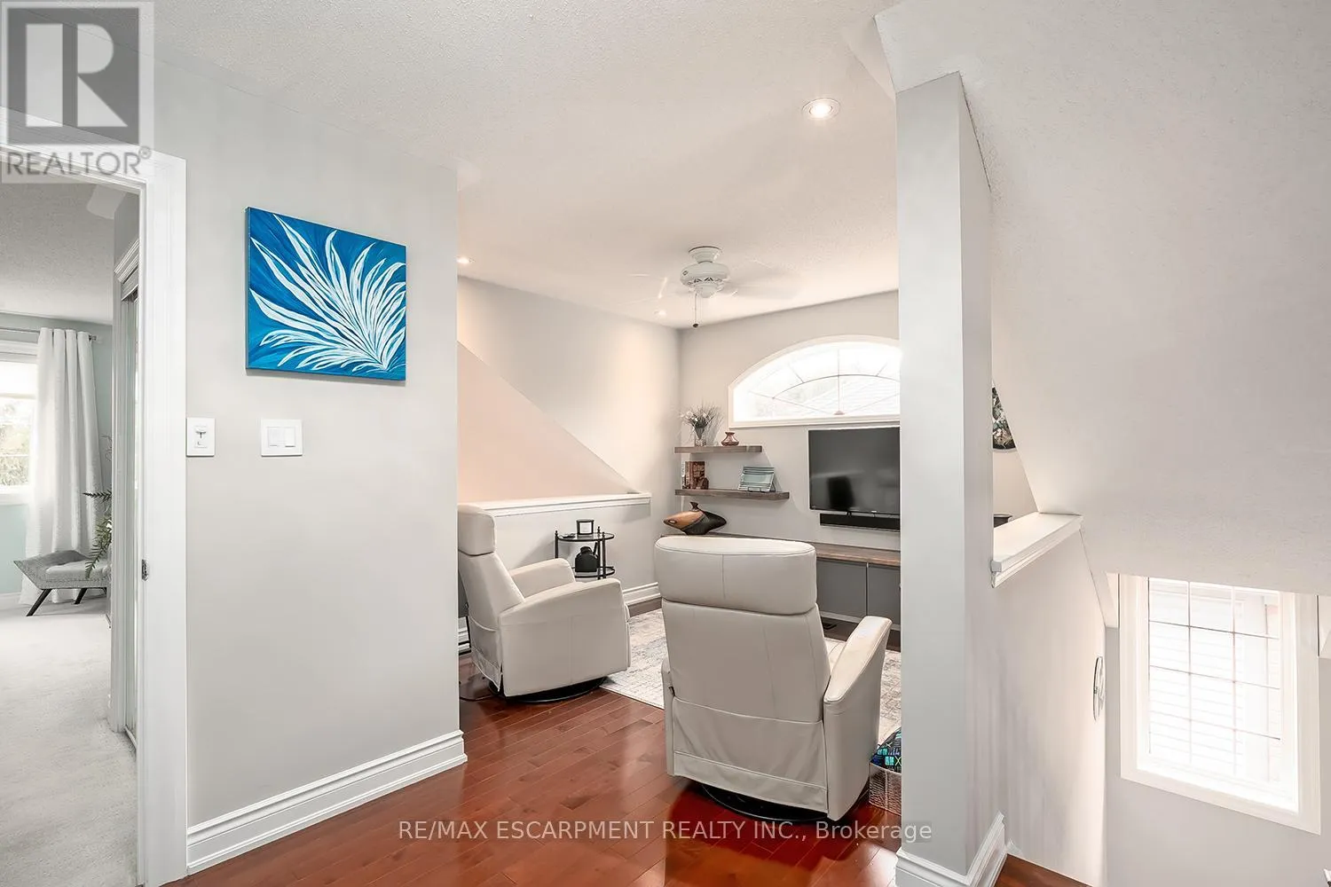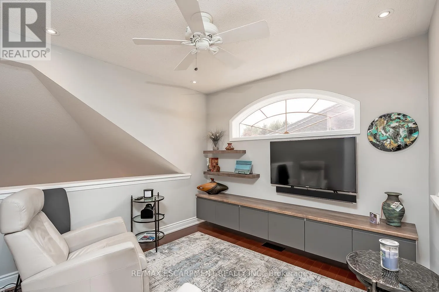 Appleby Line & Taywood Dr This COMPLETELY renovated / redesigned semi-detached BUNGALOFT backs onto the Millcroft Golf Course and has a DOUBLE car garage! Sitting in a quiet, boutique enclave, this home features 2 bedrooms, 3.5 bathrooms and quality designer finishes and fixtures throughout. This unit is approximately 1800 square feet PLUS a fully finished lower level. The open concept floorplan boasts 9-foot ceilings, hardwood flooring and plenty of natural light. The dramatic two-storey entry leads to an oversized dining room. The kitchen features custom white cabinetry, a large peninsula, quartz counters and stainless-steel appliances. The kitchen flows directly to the large family room- which includes vaulted ceilings, a gas fireplace and double doors leading to the low maintenance backyard overlooking the golf course. The large primary bedroom has a stunning 3-piece ensuite and a large walk-in closet. The main level also includes a separate powder room, laundry room and garage access! The 2nd level includes a large bedroom, den / loft and a 4-piece bathroom! The finished lower level features hardwood flooring, a large rec room with a gas fireplace, custom built-ins, wet bar, office, den, 3-piece bathroom and a cedar closet! The exterior of the home has been extensively landscaped and features a 2-tier composite deck, motorized awning and large stone patio. There is a PRIVATE double car driveway with parking for 4 vehicles plus a double car garage. (id:27476)
