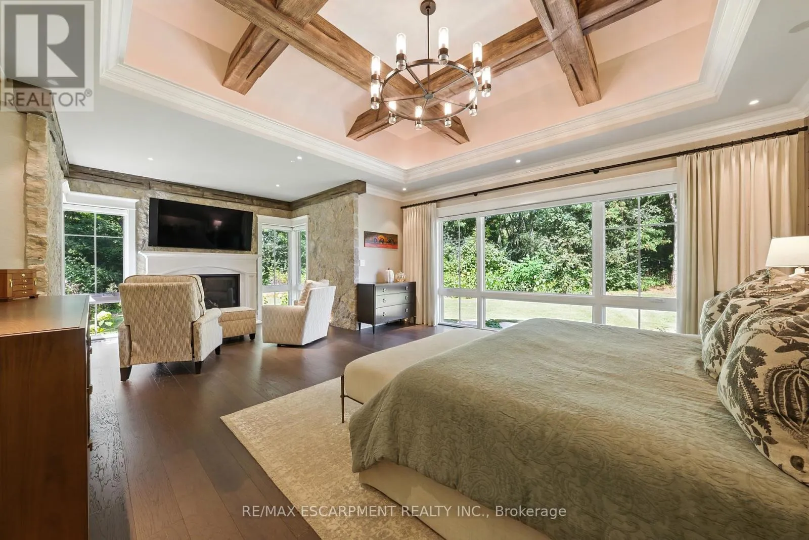 York Rd & Old York Rd AMAZING! Custom Bungaloft nestled on a spectacular 12-acre property in Burlington. Featuring 5+1 bedrooms, 6 full bathrooms and 2 half baths with an attached triple car garage AND detached double car garage with storage loft! Boasting over 5,400 square feet PLUS an additional 4,300 square feet in the finished lower level. Resort-style exterior with a pool, hot tub, pond, cabana, outdoor kitchen, full bar, built in BBQ area, golf green, two firepits, a fireplace and 5+ forested acres! The main floor offers DUAL primary bedrooms- each with ensuite baths and large walk-in closets. There is also a main floor office and oversized dining room. The kitchen features a large island, stainless steel appliances and a walk-in pantry. The kitchen is open to the living room- which features 12' ceilings and a stunning wood burning fireplace. There is also an oversized mudroom / laundry room with garage access and two powder rooms. The 2nd level of the home includes 3 large bedrooms and a 5-piece bathroom. The lower level (accessible by stairs OR elevator) features an amazing rec/family room, 6th bedroom, second kitchen, 2 full bathrooms, a wine cellar, gym, sauna, wet bar and plenty of storage! This home was custom built by Glen Oak Homes in 2016 and a main floor addition with full basement was added in 2024. The entire property was fully landscaped in 2023/2024. Interior and exterior 'smart' features throughout, highly efficient and fully private- a true paradise. Luxury Certified (id:27476)