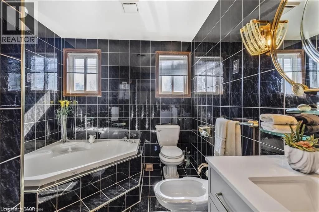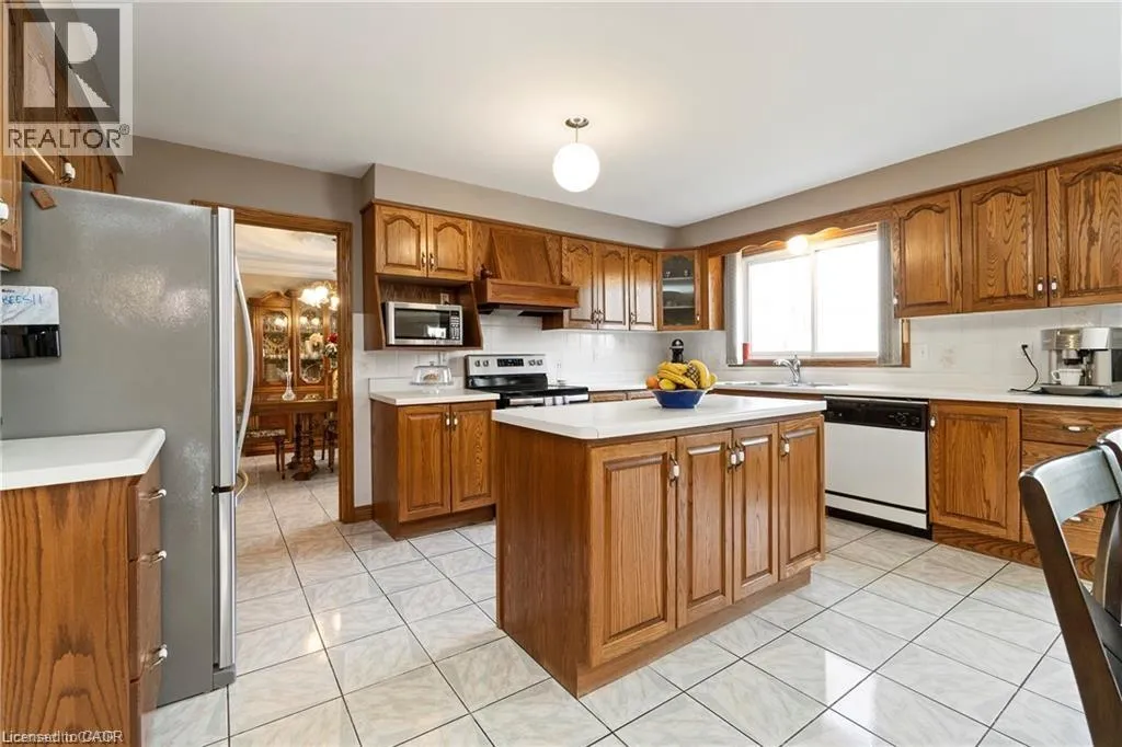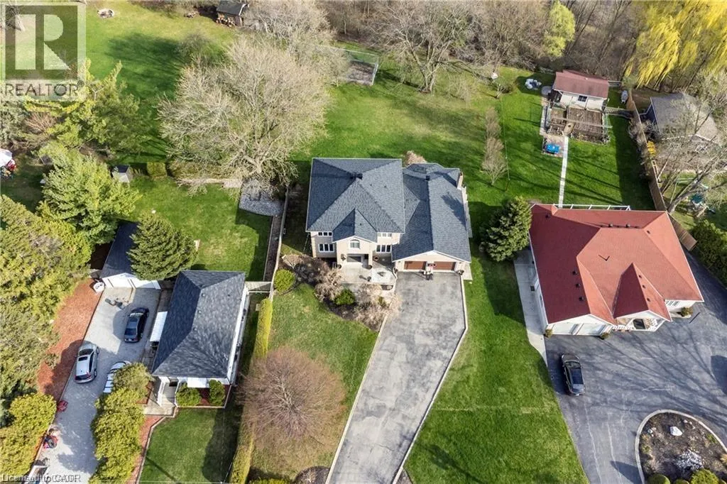Lemonville Rd to Sumach Dr Located in the heart of mature Aldershot, this 1 owner all-brick two-storey home is set on a rare 1.88-acre lot backing onto peaceful, treed green space, offering excellent privacy and connection to nature. Offering approximately 5000 sq ft of total living space, this home is ideally suited for large or multi-generational families, offering a versatile layout with five bedrooms, four full bathrooms, and two full kitchens. The main level features spacious principal rooms, including a formal dining area, private office/den, and a welcoming family room with fireplace. The bright eat-in kitchen includes a large island, stainless steel appliances, and deck overlooking the expansive backyard. Upstairs, youâll find four generously sized bedrooms, including a primary bathroom with walk-in closet and a 5-piece ensuite. The finished walkout basement adds incredible flexibility, complete with a second kitchen, additional bedroom, full bath, and a large recreation space with fireplace ideal for in-law living, extended family, or potential income support. The property also offers ample parking with a double car garage and an impressive driveway accommodating up to 8 vehicles. This solid, well-maintained home offers tremendous potential to update or customize Just minutes to Hidden Valley Park, LaSalle Park, Aldershot GO Station, major highways, schools, and amenities this is a rare opportunity to own a property of this size and setting within the city. (id:27476)