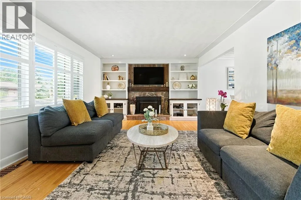 George to Ghent Updated bungalow in the downtown core. Main floor with oversized windows in living room, gas fireplace and built ins. Kitchen with wood cabinetry, stainless appliances and open to dining room space. 3 bedrooms with updated 4 piece bath. Fully finished lower level with 2 additional bedrooms, updated 3 piece bath and additional family room. New 2026 stove & dishwasher included. Private, deep yard with mature trees, above ground pool and patio. Move in and enjoy. Walk to downtown shops, lake and Go train. (id:27476)