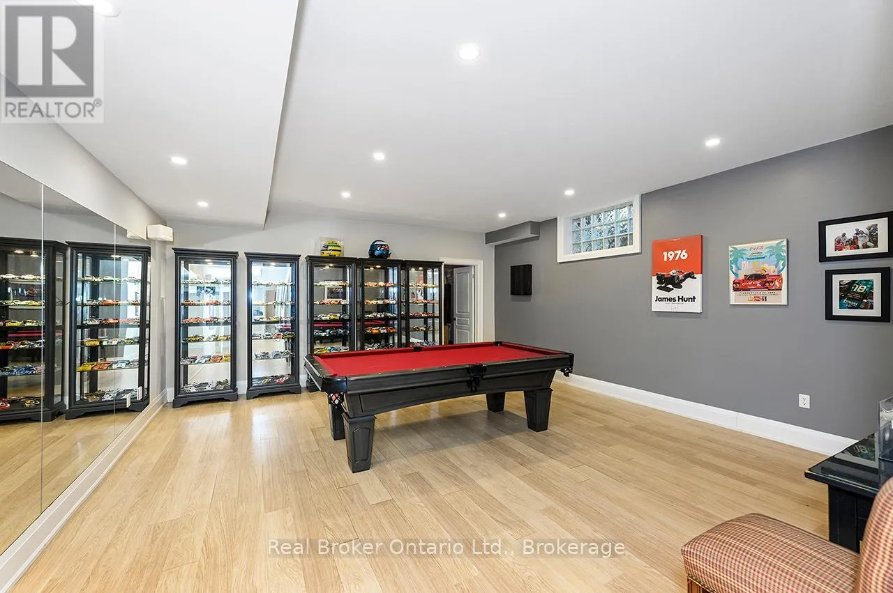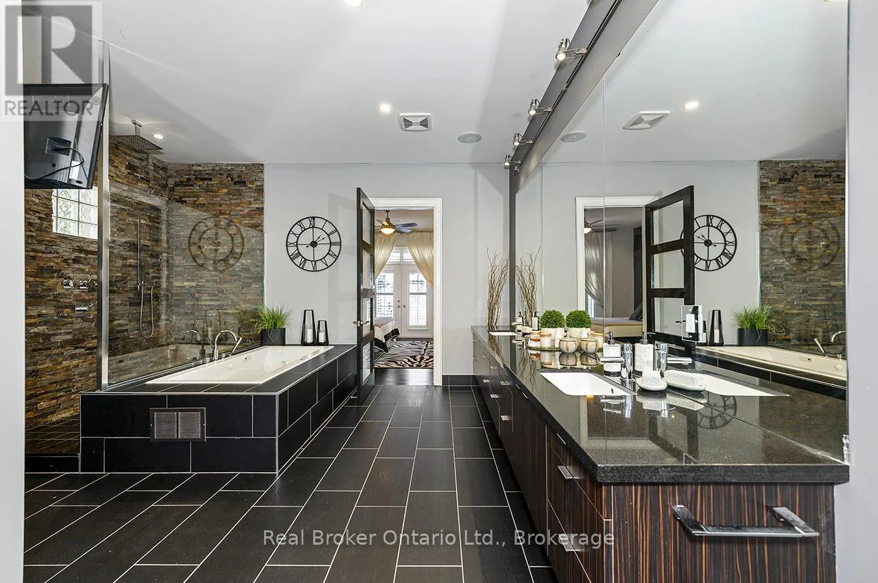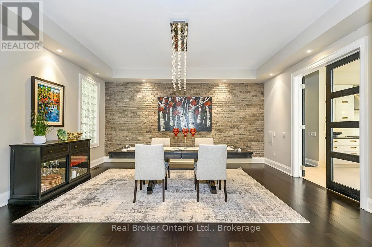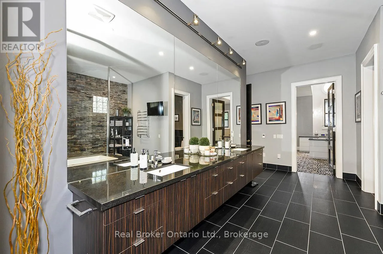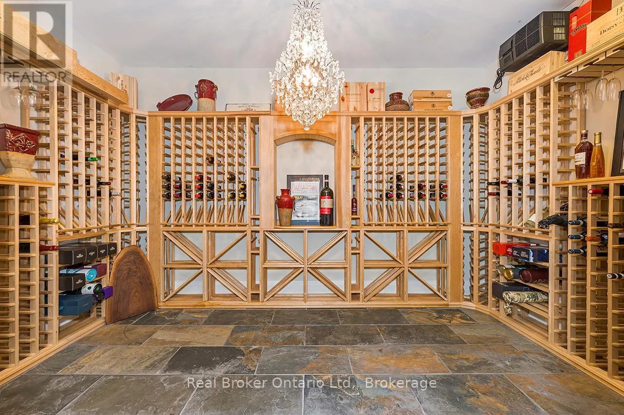 Cross Streets: Lakeshore Rd. and Appleby Line. ** Directions: Appleby line south to Lakeshore rd. Stunning modern elegance in this custom-built home offering over 7,300 sq. ft. of impeccable quality. The designer kitchen features top-of-theline Viking stainless steel appliances, white high-gloss cabinetry, and a 14-ft granite island with S.S. sink and custom faucet, flowing into a bright breakfast area with a massive skylight, multiple windows, and walkout to a covered porch with built-in BBQ and grill. A separate dining room with a light brick accent wall opens to the living/family room with gas fireplace, wall-mounted TV, pot lights, and built-in speakers. The main floor primary retreat offers access to an outdoor hot tub, a spa-like 6-piece ensuite with heated floors, jacuzzi tub, oversized shower, separate water closet, a dedicated dressing room, and convenient main floor laundry. Upstairs, two large bedrooms each feature their own 3-piece ensuites and ample closet storage, plus a barrel-vault family room perfect for kids or guests, with a rough-in for laundry. The lower level includes two additional bedrooms, a washroom, large gym, temperature-controlled wine cellar, recreation room with bar and tasting area, gas fireplace, and a dedicated games room. The epoxy-finished oversized 2-car garage is ideal for car enthusiasts! Complete with a security system (including exterior security cameras), a private fenced yard with mature gardens and in-ground sprinkler system, ample parking, and perfectly located just steps to the lake, close to schools, shopping, and minutes to the GO. Estates like this don't hit the market often in the prestigious Shoreacres neighbourhood! (id:27476)