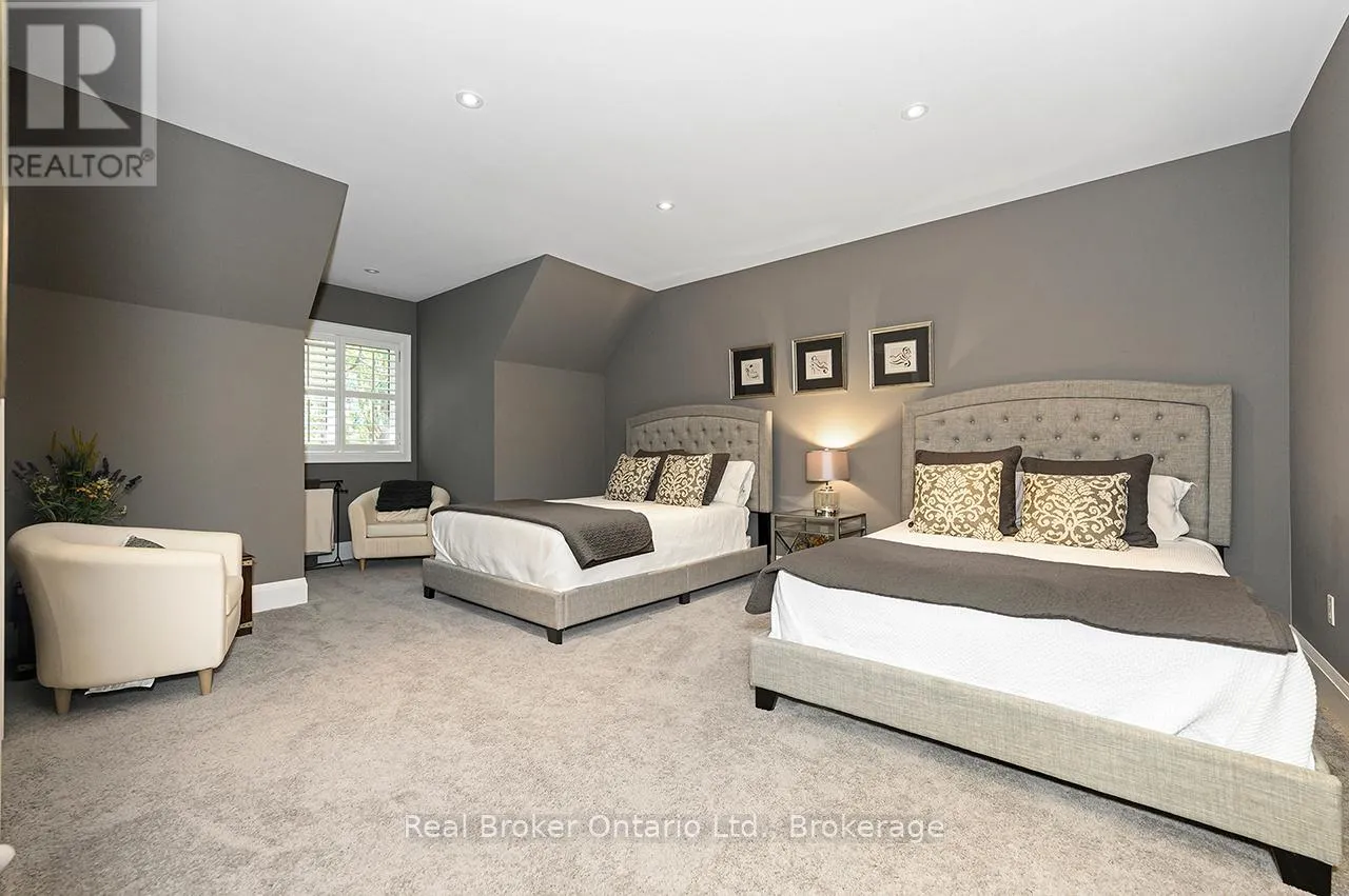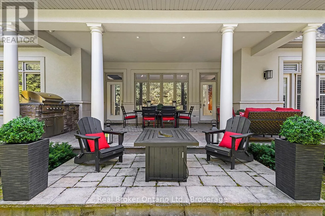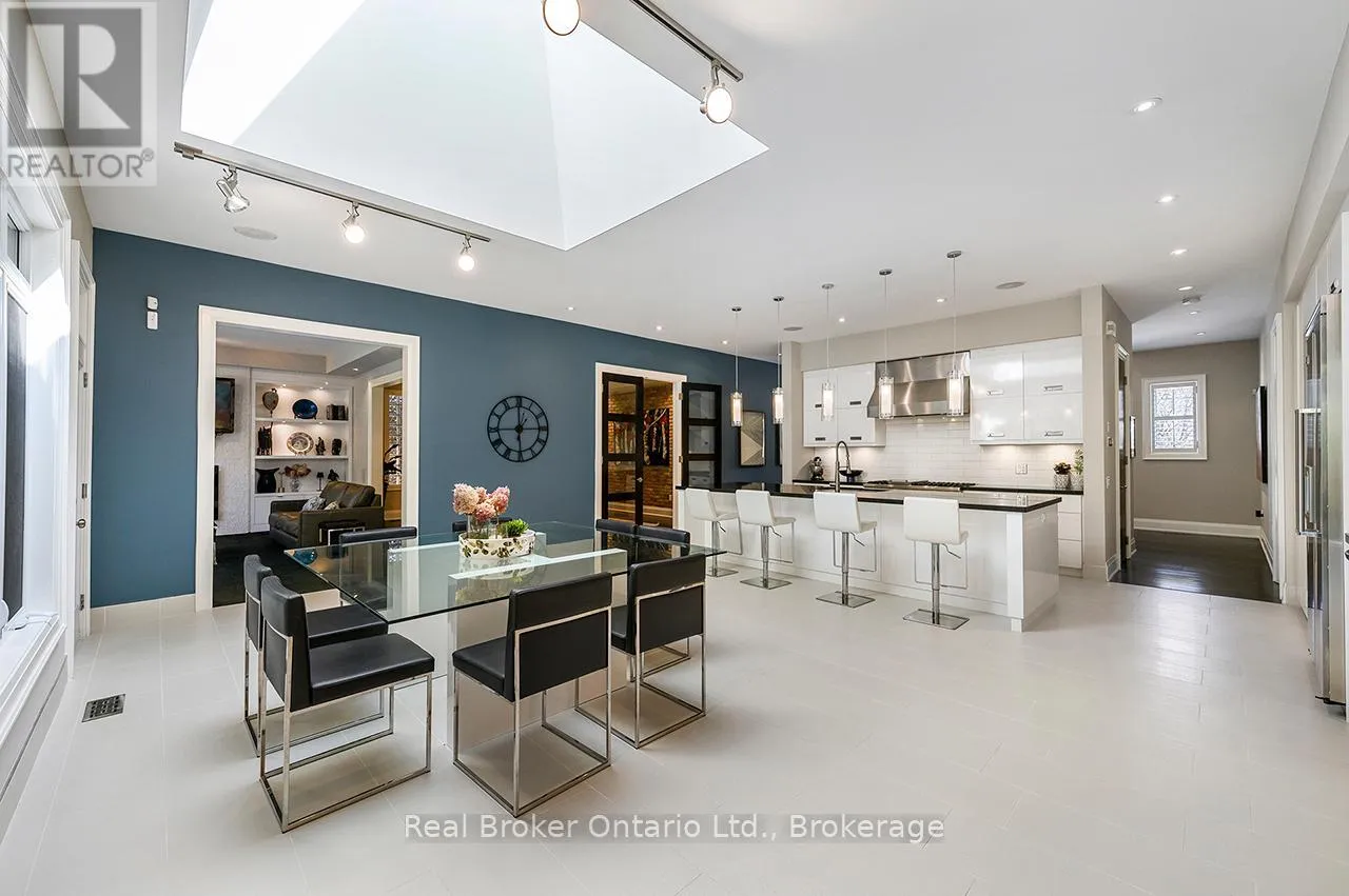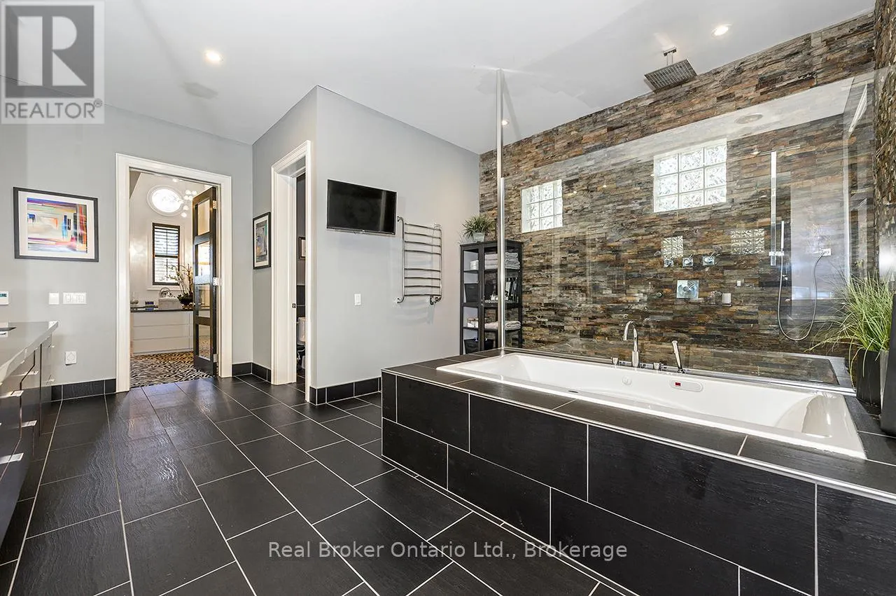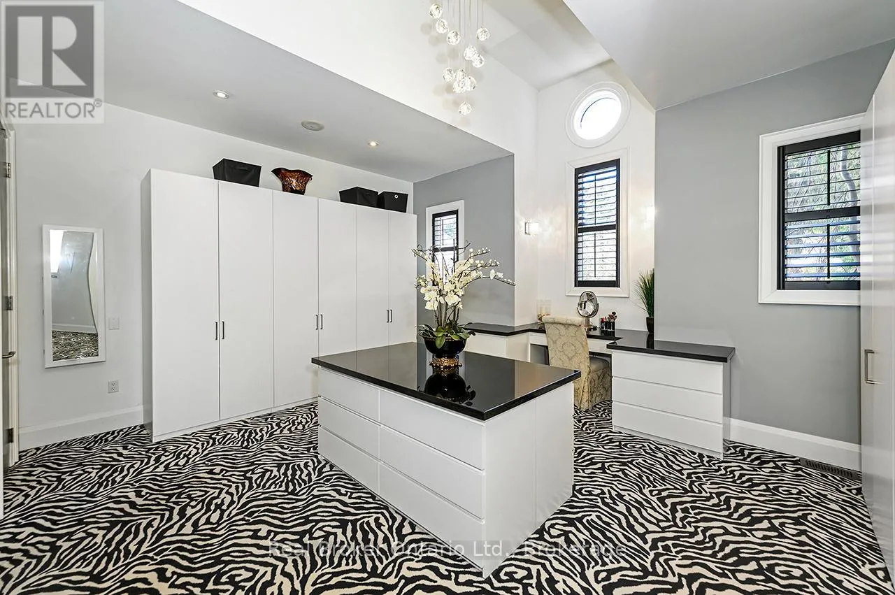 Cross Streets: Lakeshore Rd. and Appleby Line. ** Directions: Appleby line south to Lakeshore rd. Stunning modern elegance in this custom-built home offering over 7,300 sq. ft. of impeccable quality. The designer kitchen features top-of-theline Viking stainless steel appliances, white high-gloss cabinetry, and a 14-ft granite island with S.S. sink and custom faucet, flowing into a bright breakfast area with a massive skylight, multiple windows, and walkout to a covered porch with built-in BBQ and grill. A separate dining room with a light brick accent wall opens to the living/family room with gas fireplace, wall-mounted TV, pot lights, and built-in speakers. The main floor primary retreat offers access to an outdoor hot tub, a spa-like 6-piece ensuite with heated floors, jacuzzi tub, oversized shower, separate water closet, a dedicated dressing room, and convenient main floor laundry. Upstairs, two large bedrooms each feature their own 3-piece ensuites and ample closet storage, plus a barrel-vault family room perfect for kids or guests, with a rough-in for laundry. The lower level includes two additional bedrooms, a washroom, large gym, temperature-controlled wine cellar, recreation room with bar and tasting area, gas fireplace, and a dedicated games room. The epoxy-finished oversized 2-car garage is ideal for car enthusiasts! Complete with a security system (including exterior security cameras), a private fenced yard with mature gardens and in-ground sprinkler system, ample parking, and perfectly located just steps to the lake, close to schools, shopping, and minutes to the GO. Estates like this don't hit the market often in the prestigious Shoreacres neighbourhood! (id:27476)