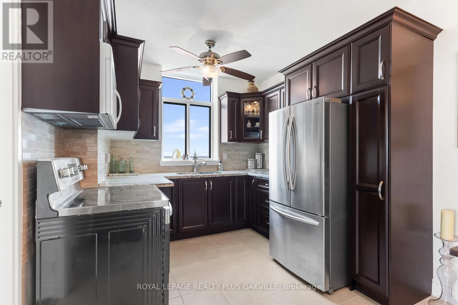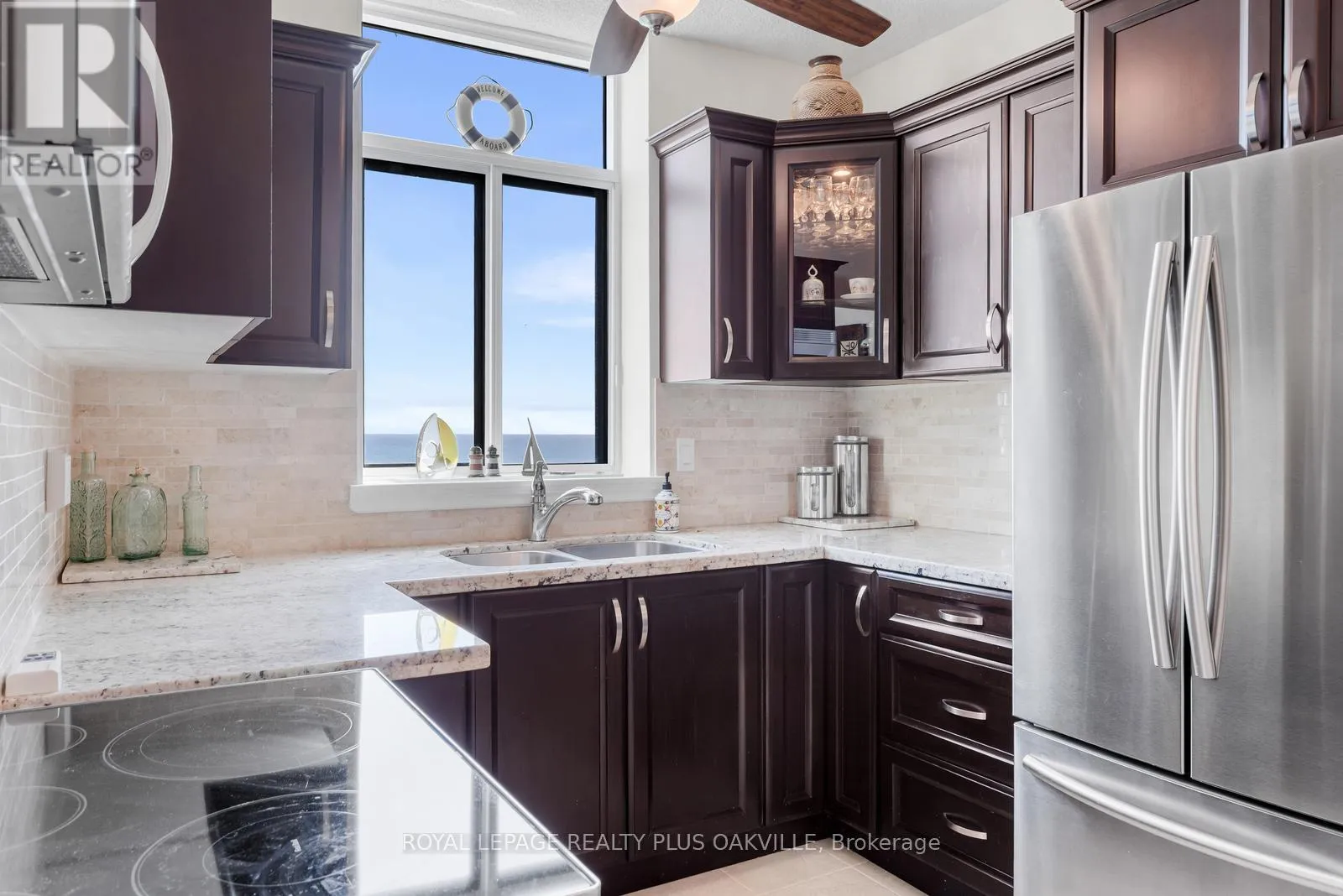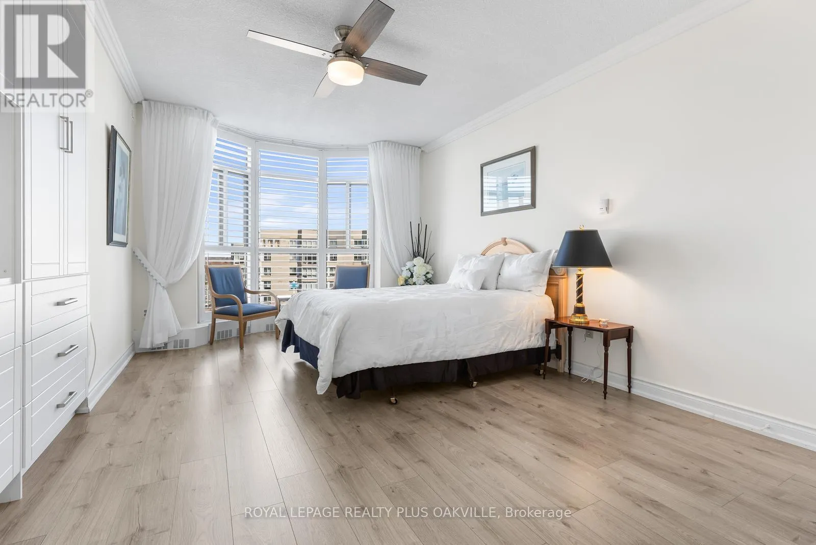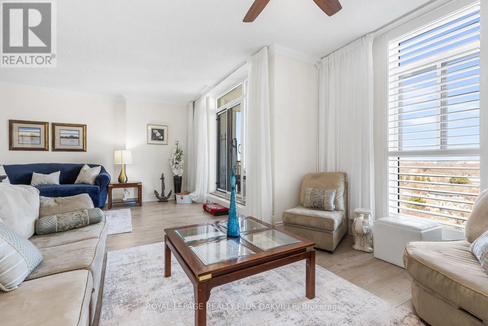 Cross Streets: Burloak and Lakeshore. ** Directions: Lakeshore Road between Appleby Line and Burloak Drive. Admiral's Walk is a stunning lakefront condominium in highly sought-after southeast Burlington. From the moment you step into this beautifully appointed corner suite, you'll be captivated by the thoughtfully designed layout and breathtaking water views.Recent, tasteful updates include easy-care wide plank laminate flooring, modern lighting and ceiling fan, custom bedroom built-ins, and refreshed bathrooms-creating a truly move-in ready home. The spacious living area is perfect for both everyday relaxation and entertaining.Take in the spectacular lake views from the kitchen, dining room, and private balcony-an ideal setting for morning coffee or evening unwinding.Residents enjoy an exceptional lifestyle with an impressive array of amenities, including an outdoor pool, fitness centre, sauna, party room, games room, car wash, BBQ area, and a unique workshop featuring woodworking and pottery spaces.Ample visitor parking is available, with surface spaces and 40 underground spots. This well-managed building also offers the convenience of on-site property management.An incredible opportunity to enjoy affordable waterfront living in a vibrant, welcoming community. (id:27476)
