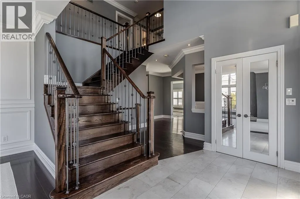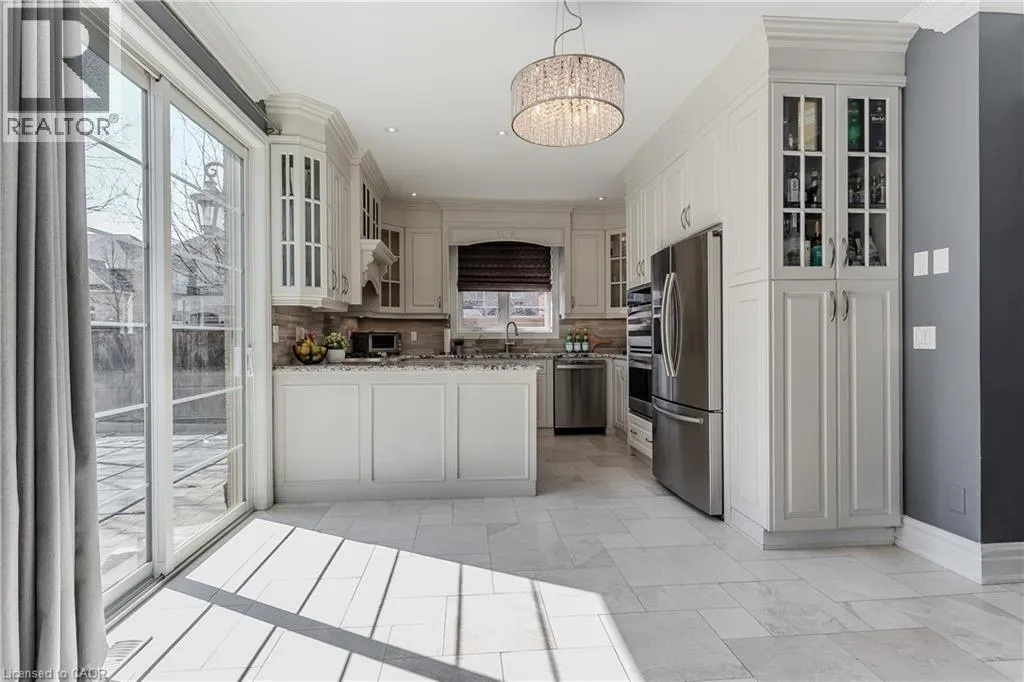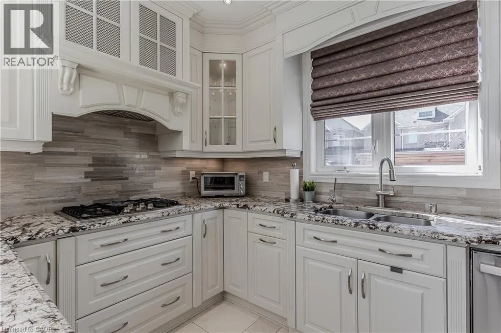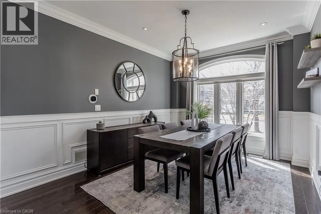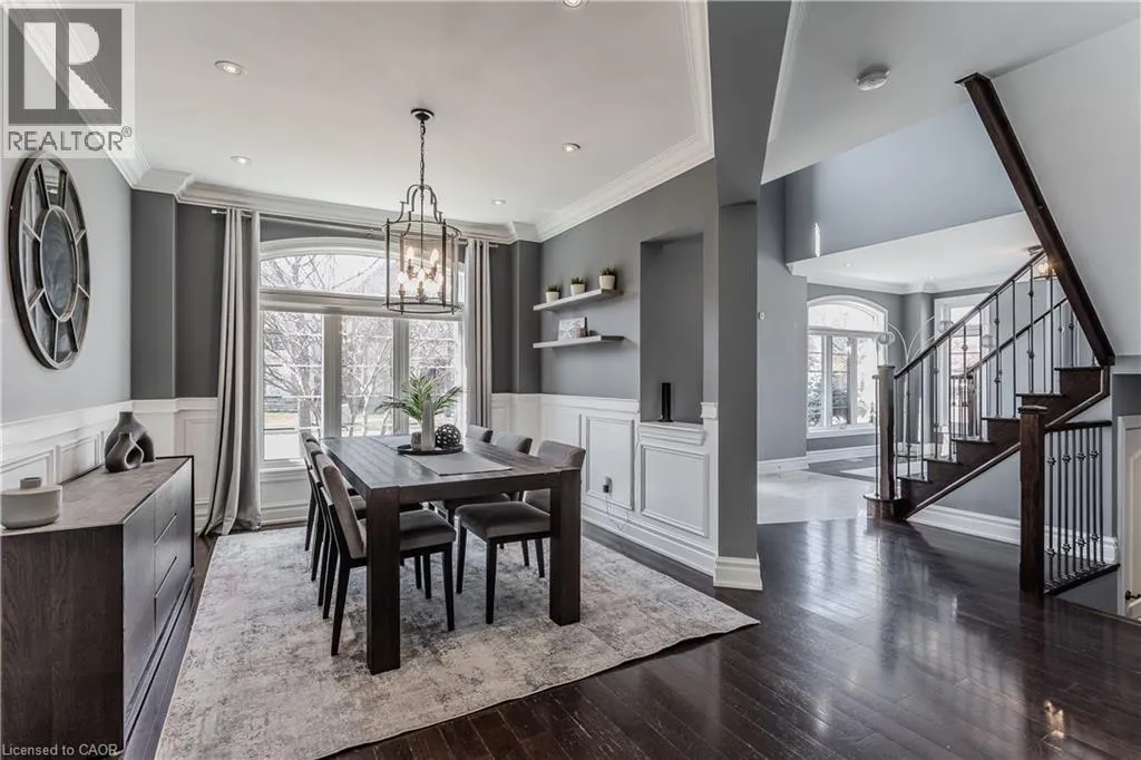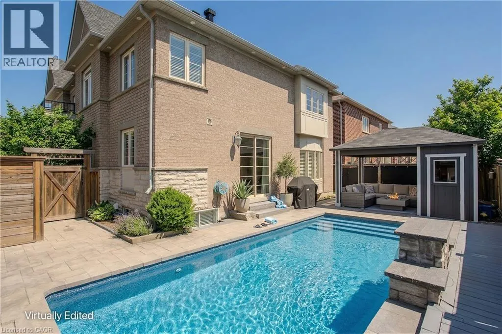 Thomas Alton Blvd to Tim Dobbie Drive to Prudham Ave to Cotter Road Welcome to this stunning family home in Burlingtonâs prestigious Alton Village, set on a premium corner lot that fills the home with natural light. Designed for modern family living, this home blends elegance, comfort, and functionalityâhighlighted by a truly exceptional backyard oasis. From the moment you arrive, the curb appeal stands out with a stone walkway, stone and brick façade, manicured gardens, and landscaping. Inside, the main floor offers 9ft ceilings and an open-concept layout with hardwood floors, pot lights, crown mouldings, and wainscotting throughout. The bright living room features oversized windows, while the upgraded chefâs kitchen is the heart of the homeâcomplete with granite countertops, tile backsplash, custom cabinetry, SS appliances, gas stove, wall oven, and a breakfast nook with walkout to the backyard. The inviting family room showcases a gas fireplace and built-in media wall, complemented by a formal dining room, convenient laundry, and powder room. Upstairs, hardwood continues throughout, leading to a spacious primary retreat featuring a window bench and a luxurious 5pc ensuite with dual sinks, a soaker tub, and a walk-in glass shower. Three additional generously sized bedrooms and two full bathrooms provide ample space for growing families. The fully finished lower level offers incredible versatility with a complete in-law setup, including a full kitchen, large rec room, additional bedroom, and a spa-like 3pc bathroom with a walk-in glass steam shower. Step outside to your private backyard paradiseâperfect for entertaining and making lasting family memories. Enjoy a fully fenced yard with an interlock stone patio, a stunning inground pool with a waterfall feature, and a fantastic cabana complete with a bar. This outdoor space is truly a showstopper. Ideally located close to top-rated schools, parks, shopping, and all everyday amenities, this is a rare opportunity to own a home that checks every box for family livingâinside and out. (id:27476)