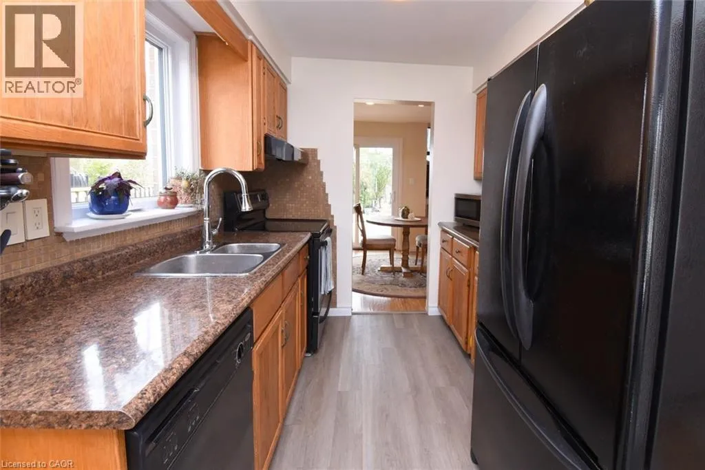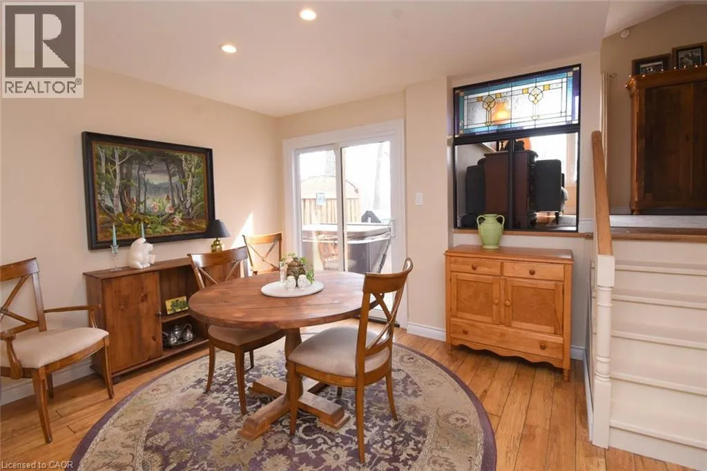 UPLAND Spacious 5-level backsplit offering room to grow, relax, and truly enjoy everyday living. From the inviting front porch, perfect for unwinding with an evening coffee, to the beautifully maintained interior with stylish, upbeat decor, this home is full of warmth and appeal. Gorgeous hardwood like flooring flows throughout the four levels, creating a seamless and welcoming feel. The spacious family room is the perfect place to gather, featuring a wett-certified wood-burning fireplace that sets the stage for cozy, romantic evenings. The formal living room, with a cathedral ceiling, offers an elegant yet comfortable space to sit, chat, and relax. The kitchen includes all appliances with an eat-in kitchen that features a lovely bay window that fills the space with natural light. A separate dining room that is ideal for entertaining also invites one to step through the patio doors into a private, fully fenced backyard with a large multi-level deck and lot but, there are no neighbours directly behind, as the property backs onto the hydro corridor. There is plenty of space for a future pool, a swing set, and lots of room for kids and pets to play. Ideally located close to public transit, shopping, schools, restaurants, parks, playgrounds, and walking and biking paths, this is a home that offers both comfort and convenience in a family friendly setting. The generously sized main floor laundry room offers extra storage along with convenient inside entry to the garage. Upstairs, you will find 3 spacious bedrooms, all with hardwood-like flooring, including a primary bedroom with ensuite privileges and a walk-in closet. The basement has been left ready for your personal touch, with a large open area for future finishing, plus a separate storage cupboard, workshop space, and furnace room. (id:27476)