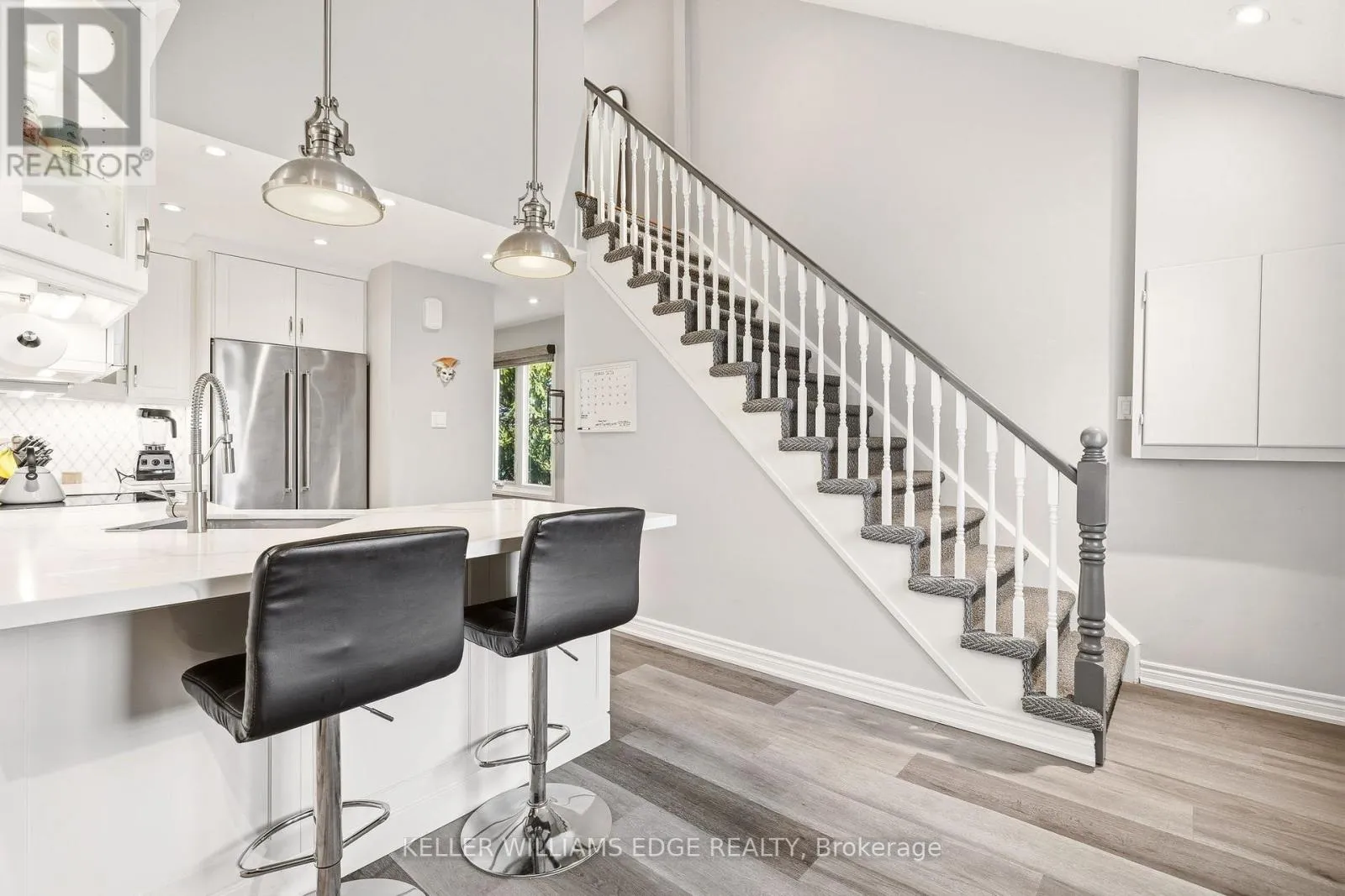 Cross Streets: Upper Middle Road. ** Directions: QEW- Walker-UpperMiddle- Cleaver. Welcome to this beautifully updated 3-bedroom, 2-bathroom end-unit townhouse in the highly sought-after HeadonForest neighbourhood of Burlington! This bright and stylish home features a newly renovated eat-in kitchen completewith quartz countertops and stainless steel appliances, offering both modern elegance and everyday functionality. Theopen-concept living and dining area boasts soaring vaulted ceilings and sliding door access to a private deck - perfectfor BBQing and entertaining. You will enjoy upgraded LED pot lights throughout the home, integrated with anautomated smart lighting system controllable via mobile app and customizable settings. Enjoy the convenience of mainfloor laundry, along with two generously sized, sun-filled bedrooms and a well-appointed 4-piece bathroom on the mainlevel. Upstairs, retreat to your own private primary suite, featuring a massive walk-in closet, juliette balcony, and a fullyrenovated ensuite with a luxurious soaker tub, heated floors and separate walk-in shower. Enjoy both a single cargarage, as well a 1 outdoor parking space. As an end unit, this home offers added privacy and direct access to adjacentlawn space - ideal for kids to play - while backing onto Cleaver Park with playground and walking trails. Located juststeps from shopping and restaurants, and easy access to highway access, this home combines comfort, style, andconvenience. Don't miss this incredible opportunity! (id:27476)