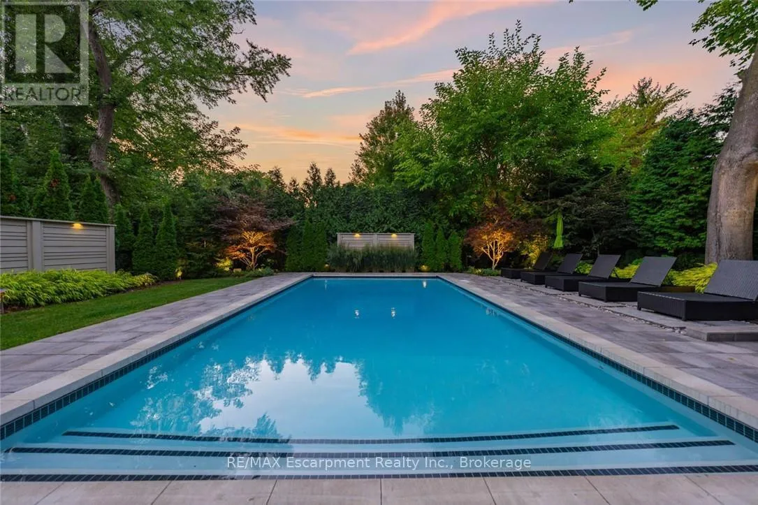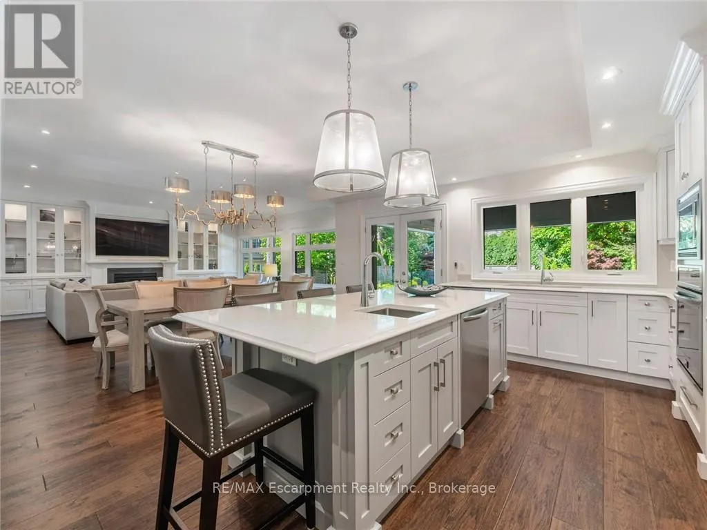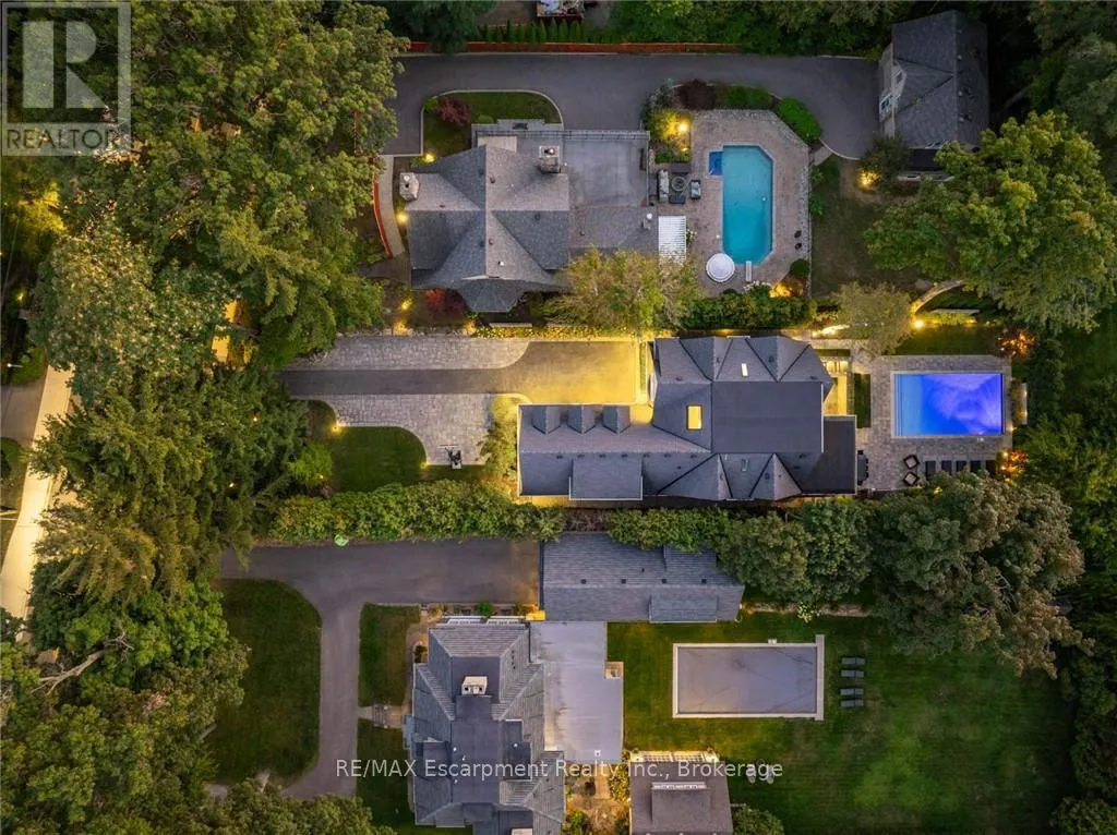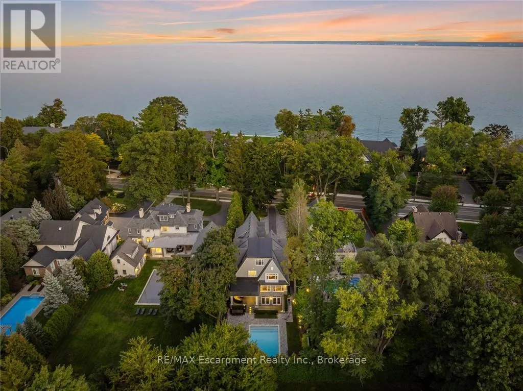Rossmore and Lakeshore Set on prestigious Lakeshore Road in Roseland one of Burlington's most sought-after neighbourhoods this custom-built residence offers over6,000 square feet of finely finished living space on a rare217-ft-deep property. Located within the Tuck/ Nelson school district, just steps from the lake, it combines an exceptional address with remarkable scale and design. The main level is anchored by an elegant great room with a gas fireplace, custom built-ins with glass accents & expansive windows overlooking the rear gardens. A private home office, formal dining area with a wet bar, & a chef's kitchen designed for both daily living & entertaining set the tone for the home. The kitchen features a large quartz island with seating, dual dishwashers, dual Frigidaire Professional wall ovens, a gas range with decorative hood, warming drawer, microwave, & a Kitchen Aid S/S refrigerator with ice & water. Custom soft-close cabinetry, a walk-in pantry, & a walkout to the covered patio complete this well appointed space. A separate main floor laundry room with custom cabinetry, quartz counters & washer/ dryer adds convenience. Upstairs, four bedrooms each feature their own private ensuite baths & custom closet organizers, including a self-contained in law suite with a separate entrance featuring a living area, bedroom, and full bath, ideal for extended family or guests. The third-floor loft, currently used as a gym, offers flexibility as an additional bedroom or creative studio. The fully finished lower level extends the living space with a large recreation room with a wet bar, sitting area with gas fireplace, sixth bedroom with ensuite, music/media room,& a walk-up to the backyard. Set on a 200ft-deep lot, the property offers rare privacy & scale, with a resort-style backyard featuring a heated saltwater pool, stone patio, covered terrace, &outdoor kitchen. A three-car garage & additional parking complete this home, just minutes from downtown Burlington & the lake. Luxury Certified (id:27476)