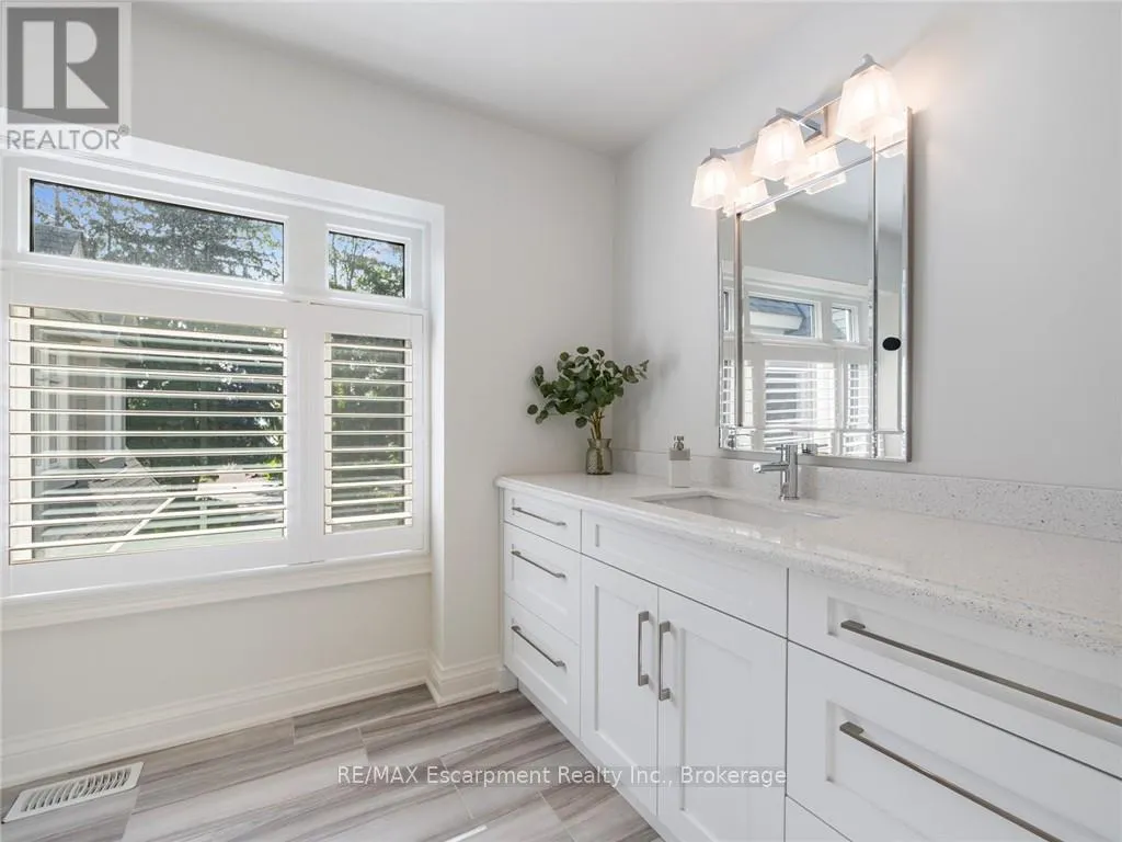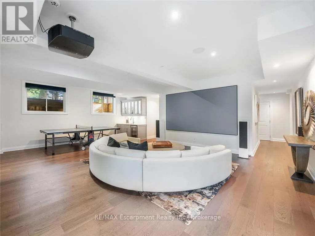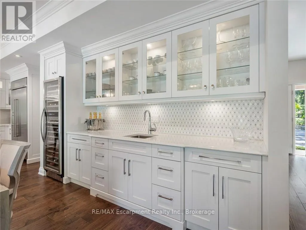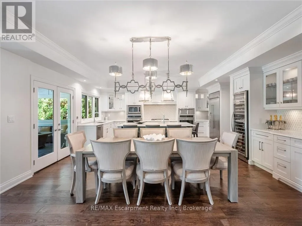 Rossmore and Lakeshore Set on prestigious Lakeshore Road in Roseland one of Burlington's most sought-after neighbourhoods this custom-built residence offers over6,000 square feet of finely finished living space on a rare217-ft-deep property. Located within the Tuck/ Nelson school district, just steps from the lake, it combines an exceptional address with remarkable scale and design. The main level is anchored by an elegant great room with a gas fireplace, custom built-ins with glass accents & expansive windows overlooking the rear gardens. A private home office, formal dining area with a wet bar, & a chef's kitchen designed for both daily living & entertaining set the tone for the home. The kitchen features a large quartz island with seating, dual dishwashers, dual Frigidaire Professional wall ovens, a gas range with decorative hood, warming drawer, microwave, & a Kitchen Aid S/S refrigerator with ice & water. Custom soft-close cabinetry, a walk-in pantry, & a walkout to the covered patio complete this well appointed space. A separate main floor laundry room with custom cabinetry, quartz counters & washer/ dryer adds convenience. Upstairs, four bedrooms each feature their own private ensuite baths & custom closet organizers, including a self-contained in law suite with a separate entrance featuring a living area, bedroom, and full bath, ideal for extended family or guests. The third-floor loft, currently used as a gym, offers flexibility as an additional bedroom or creative studio. The fully finished lower level extends the living space with a large recreation room with a wet bar, sitting area with gas fireplace, sixth bedroom with ensuite, music/media room,& a walk-up to the backyard. Set on a 200ft-deep lot, the property offers rare privacy & scale, with a resort-style backyard featuring a heated saltwater pool, stone patio, covered terrace, &outdoor kitchen. A three-car garage & additional parking complete this home, just minutes from downtown Burlington & the lake. Luxury Certified (id:27476)
