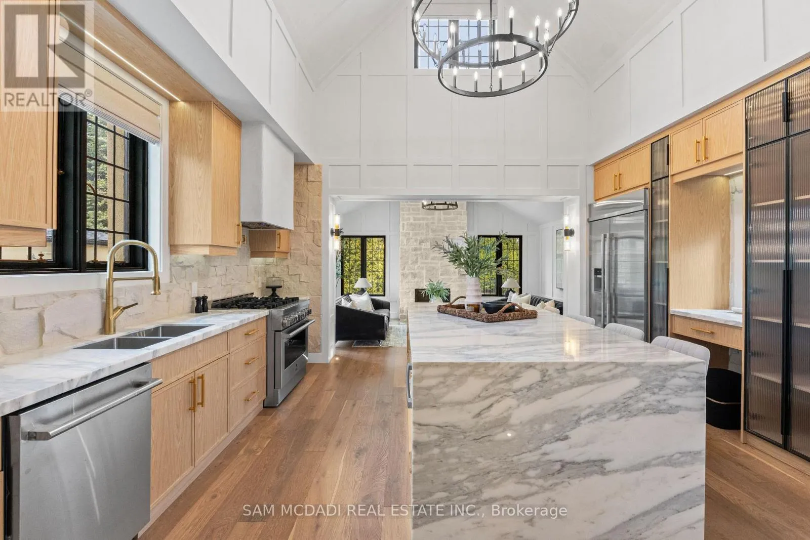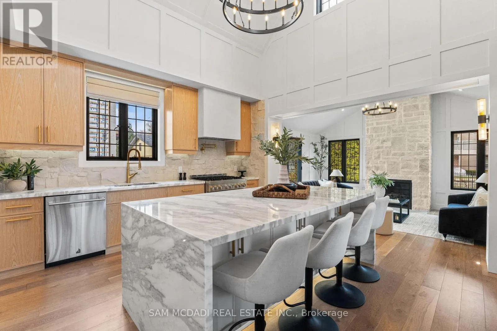 Cross Streets: Rebecca St/Fourth Line. ** Directions: Heading West from Rebecca St, Turn Right Onto Fourth Line, Then Right onto Unsworth Ave. Welcome to the famous George Unsworth home, a high quality Neo-Tudor style home constructed with cut & carved stone alongside a textured stucco exterior finish. Redesigned by renowned architect Walter Scott, and located in Aldershot's upscale neighbourhood, this beautiful home w/ approximately 5,000 SF total has been completely reimagined w/ a modern yet charming design. Upon entering, you'll find large principal rooms enhanced with sophisticated hardwood floors, LED pot lights, panelled walls, and more. At the heart of this home is where you'll locate the chef's kitchen elevated w/ a centre island, stone countertops, JennAir appliances, charming stone backsplash and ample cabinetry space. Overlooking the kitchen is the grand family room, which boasts cathedral ceilings, a stone fireplace, and direct access to your covered outdoor patio, perfect for al-fresco dining with loved ones. Also on this level is the formal living room, which features a fireplace, wood beam ceilings, and access to the outdoor patio, as well as a home office perfect for professionals working from home. Ascend to the owner's suite, curated with a boutique inspired walk-in closet, a wet-bar, and an oversized 6-pc ensuite w/ heated floors, a soaker tub, and a rainfall shower. 2 more bedrooms with built-in closets and a shared 3-pc bath with heated floors are down the hall. The loft can easily serve as a nanny or in-law suite, featuring a spacious bedroom w/ a 3-pc ensuite, a seating area, and a separate laundry room. The basement completes this home with perfect entertainment spaces incl: a wet bar, a large recreation room, a 5th bedroom, a 3-pc bath w/ heated floors, and a den that can serve as a gym, play room, spa, or theatre - the possibilities are endless. Beautifully situated in a highly rated family oriented neighbourhood nearby top rated schools, grocery stores, shopping malls, lakeside parks and trails & more. A piece of history with a modern twist! (id:27476)