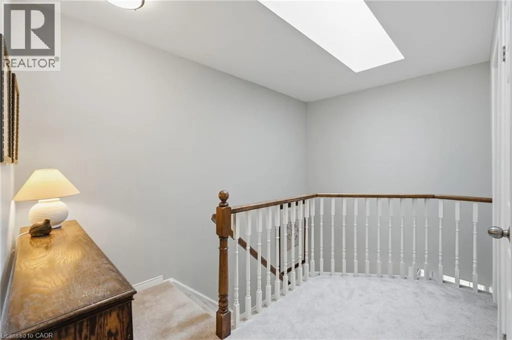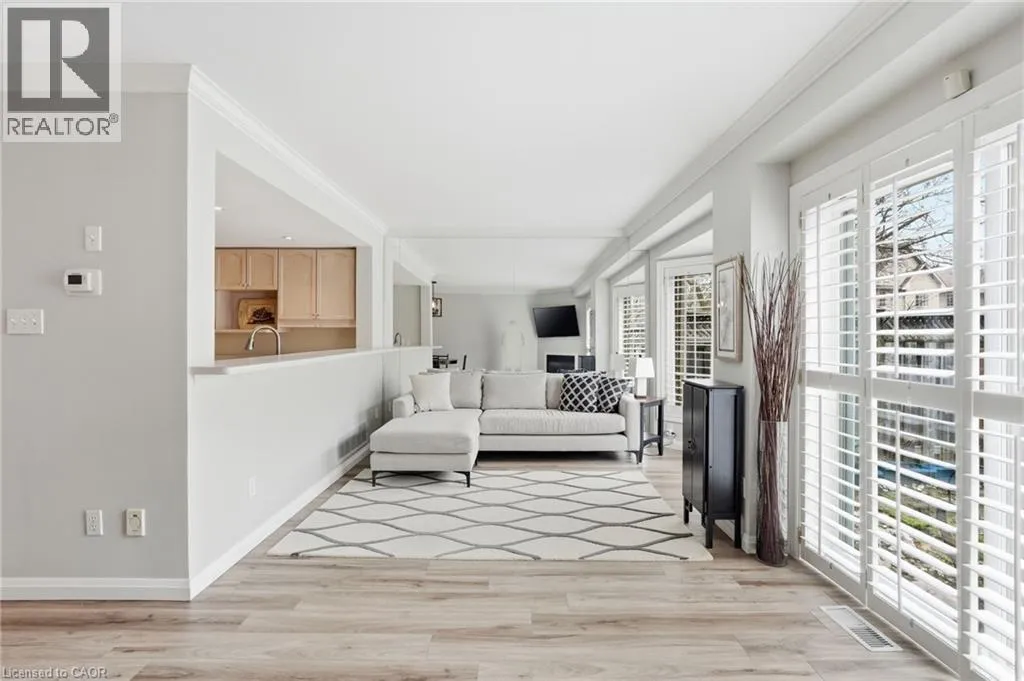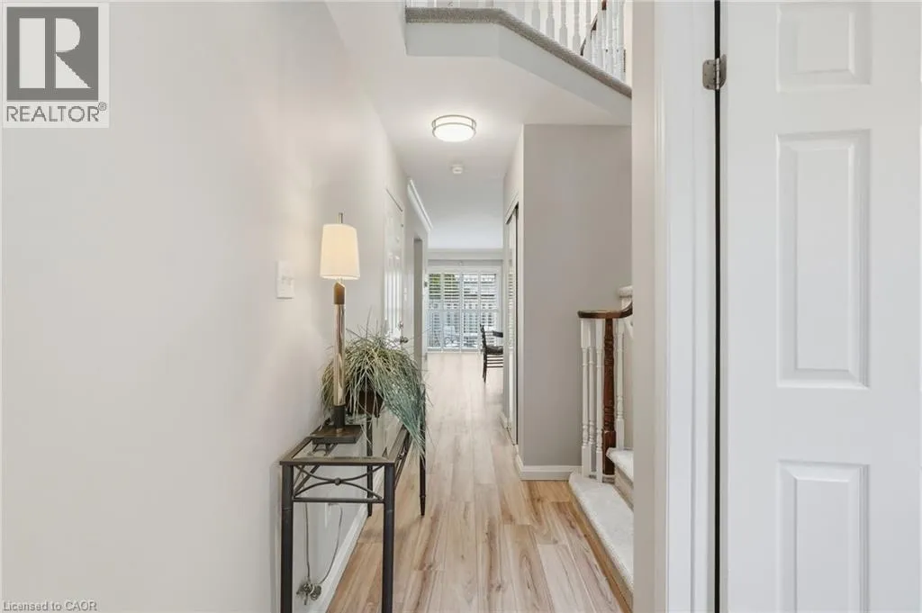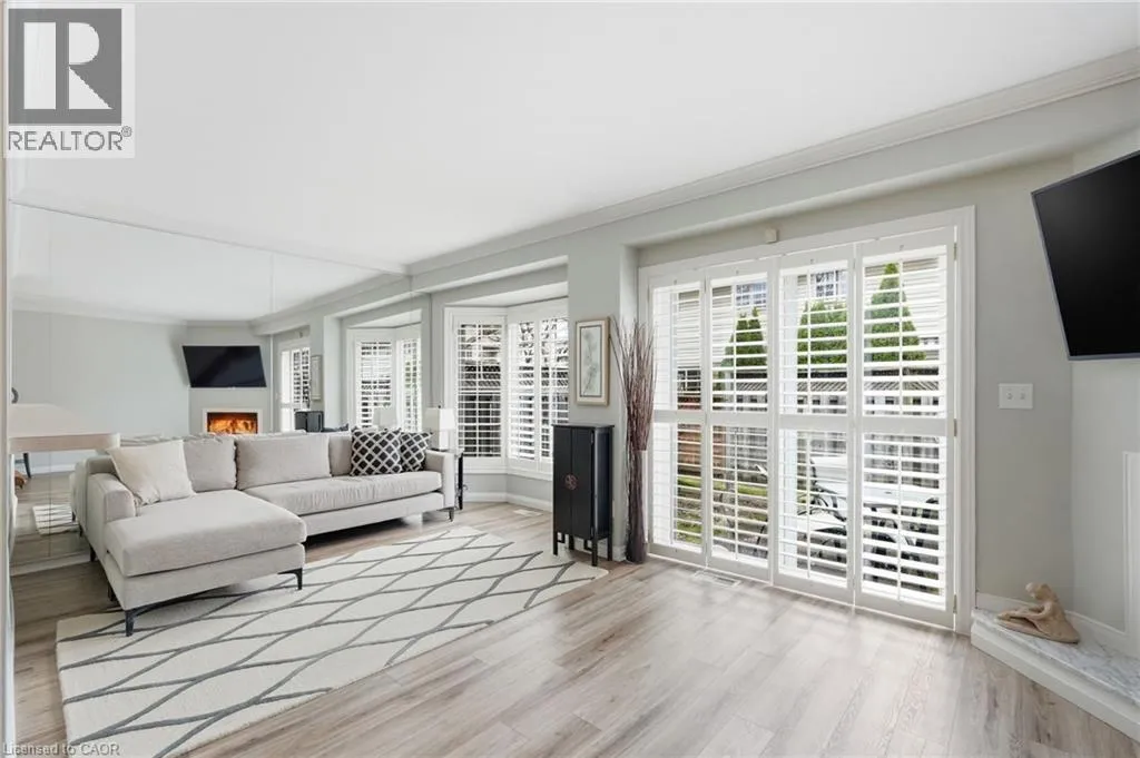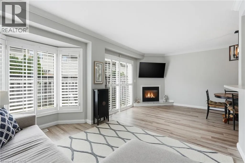 Walkers Line to New St Welcome to this beautifully maintained townhouse offering over 1,700 square feet of finished living space in a highly sought-after south Burlington community just minutes from the lake. This bright and spacious home showcases updated flooring professionally done, California shutters throughout, and large windows that fill the home with natural light. The main level offers a welcoming open-concept layout highlighted by a cozy gas fireplace and comfortable living and dining areas ideal for everyday living and entertaining. The kitchen features recently updated appliances, generous counter space, and a practical layout that flows seamlessly into the main living space. Upstairs, the home offers three generously sized bedrooms and two full bathrooms, providing excellent space for families or those working from home. A skylight above the staircase fills the upper hallway with natural light, creating an airy and inviting second level. The finished basement extends the living space even further and is perfect for a recreation room, media area, home gym, or guest retreat. Enjoy the low-maintenance backyard, ideal for relaxing or entertaining with minimal upkeep required. This home is within walking distance to parks, schools, shopping, restaurants, and everyday amenities along New Street. Enjoy quick access to Appleby GO Station, public transit, and major highways, making commuting simple while still being surrounded by mature neighbourhood streets, scenic walking trails, and beautiful lakeside parks that make this area one of Burlingtonâs most desirable places to live. (id:27476)
