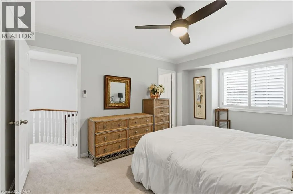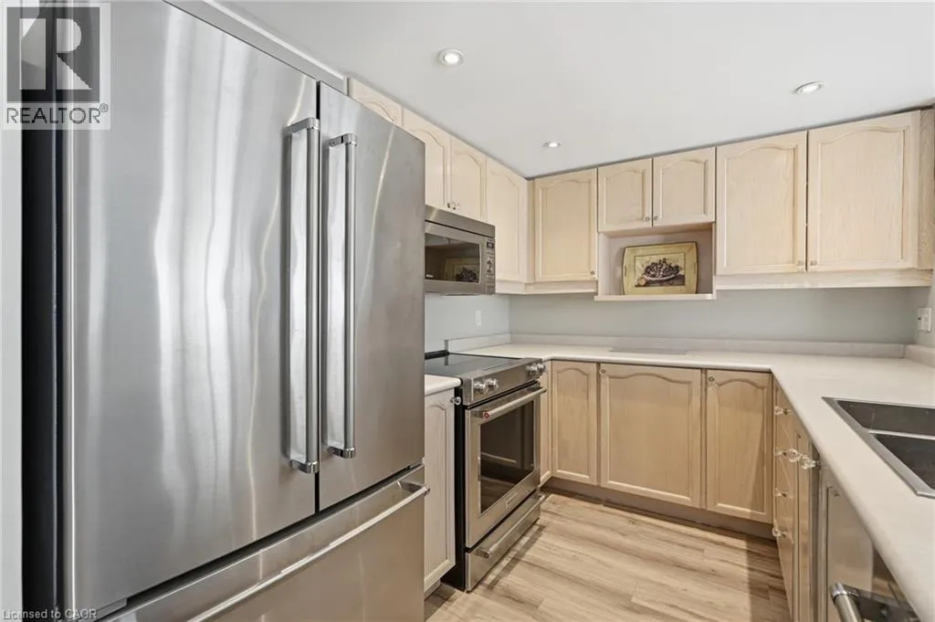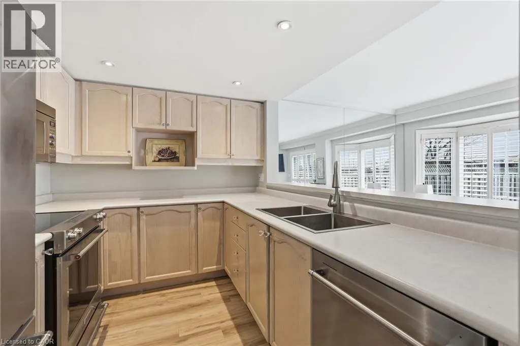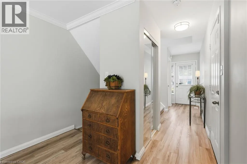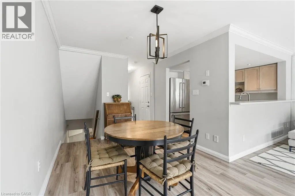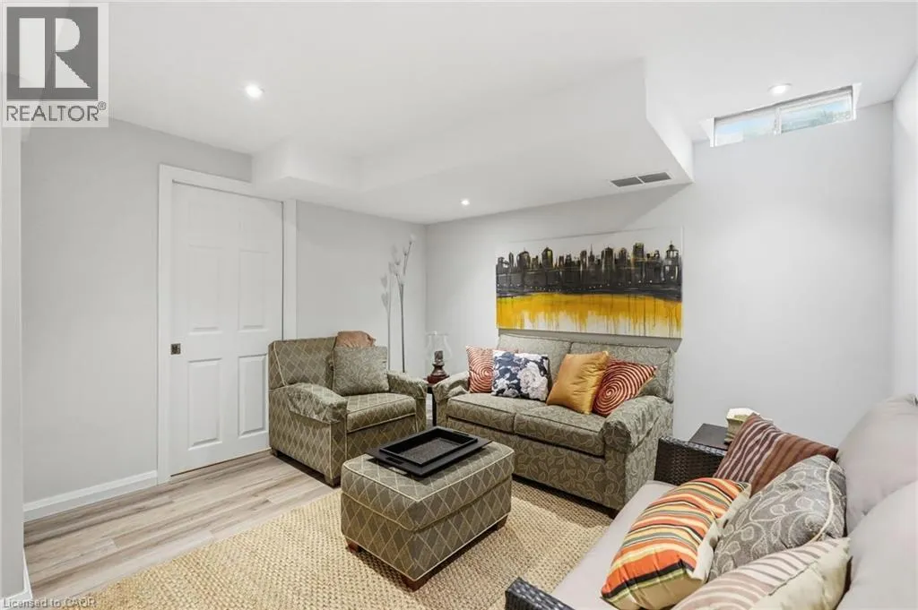 Walkers Line to New St Welcome to this beautifully maintained townhouse offering over 1,700 square feet of finished living space in a highly sought-after south Burlington community just minutes from the lake. This bright and spacious home showcases updated flooring professionally done, California shutters throughout, and large windows that fill the home with natural light. The main level offers a welcoming open-concept layout highlighted by a cozy gas fireplace and comfortable living and dining areas ideal for everyday living and entertaining. The kitchen features recently updated appliances, generous counter space, and a practical layout that flows seamlessly into the main living space. Upstairs, the home offers three generously sized bedrooms and two full bathrooms, providing excellent space for families or those working from home. A skylight above the staircase fills the upper hallway with natural light, creating an airy and inviting second level. The finished basement extends the living space even further and is perfect for a recreation room, media area, home gym, or guest retreat. Enjoy the low-maintenance backyard, ideal for relaxing or entertaining with minimal upkeep required. This home is within walking distance to parks, schools, shopping, restaurants, and everyday amenities along New Street. Enjoy quick access to Appleby GO Station, public transit, and major highways, making commuting simple while still being surrounded by mature neighbourhood streets, scenic walking trails, and beautiful lakeside parks that make this area one of Burlingtonâs most desirable places to live. (id:27476)