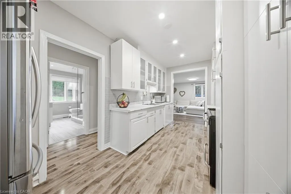 Britannia Rd to Cedar Springs Rd An extraordinary opportunity to secure a stunning creekside property spanning nearly 2 acres across a rare double lot, offering ultimate privacy with just one neighbouring home. Enveloped by mature trees and natural forest, this peaceful setting feels like a private retreat while still being conveniently close to everyday essentials. Perfectly positioned near the sought-after community of Kilbride and the amenities along Brant Street, with quick access to Highway 401, this location offers the best of both worldsâseclusion and convenience. Significant value lies in the extensive due diligence already completed by the current owner, including a full permit approval process for a custom-built dream home. A complete package of engineering drawings, detailed plans, and impressive 3D renderings is available, providing a streamlined path for the next owner to build with confidence. The existing residence is meticulously cared for and features two beautifully updated bathrooms, along with key improvements such as a furnace (2016), UV water system, and reverse osmosis. Whether you envision enjoying the home as-is, or creating a custom estate, this is a rare offering with incredible potential in a truly serene setting. (id:27476)