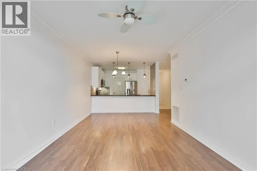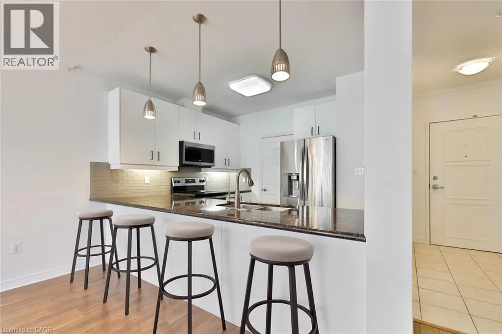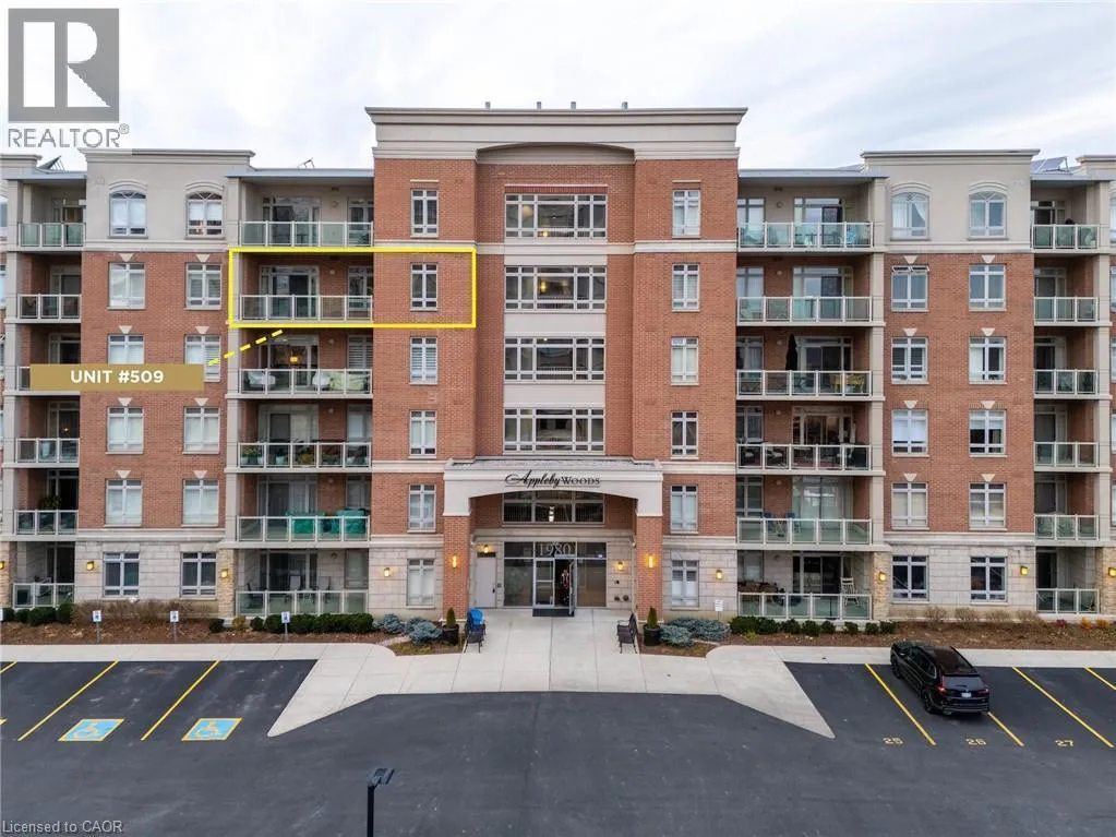 Appleby Line to Ironstone to Imperial Way Welcome to highly sought-after Appleby Woods, where comfort, convenience, and modern style come together. This beautifully upgraded 1,272 sq. ft. condo offers an exceptional layout with 2 bedrooms, 2 bathrooms, and a versatile den/office that can easily serve as a third bedroom. Perfectly positioned just steps to shopping, dining, and everyday necessities, this home delivers both lifestyle and convenience. Freshly painted and filled with natural light, the suite features a bright open-concept design, high ceilings, and elegant crown moulding. The updated kitchen impresses with new white cabinetry, granite counters, counter seating, stylish glass tile backsplash and accent wall, ample storage, and stainless steel appliances, including a new stove. The spacious primary bedroom includes a walk-in closet, a private 3-piece ensuite, and direct access to the large south-facing balconyâan ideal space for relaxing or entertaining. The second bedroom features brand-new carpeting, while the generous den offers flexible use options. A well-appointed 4-piece main bath and a convenient in-suite laundry room add to the homeâs appeal. This condo also includes 1 underground parking space and 1 locker for added convenience. Residents enjoy exceptional amenities: a party room, fitness center, residentsâ lounge, and games room. Appleby Woods is proudly energy-efficient, featuring solar panels and geothermal heating/cooling, offering comfort and sustainability. Experience elevated condo living in a vibrant, well-maintained communityâwelcome home to Appleby Woods. (id:27476)